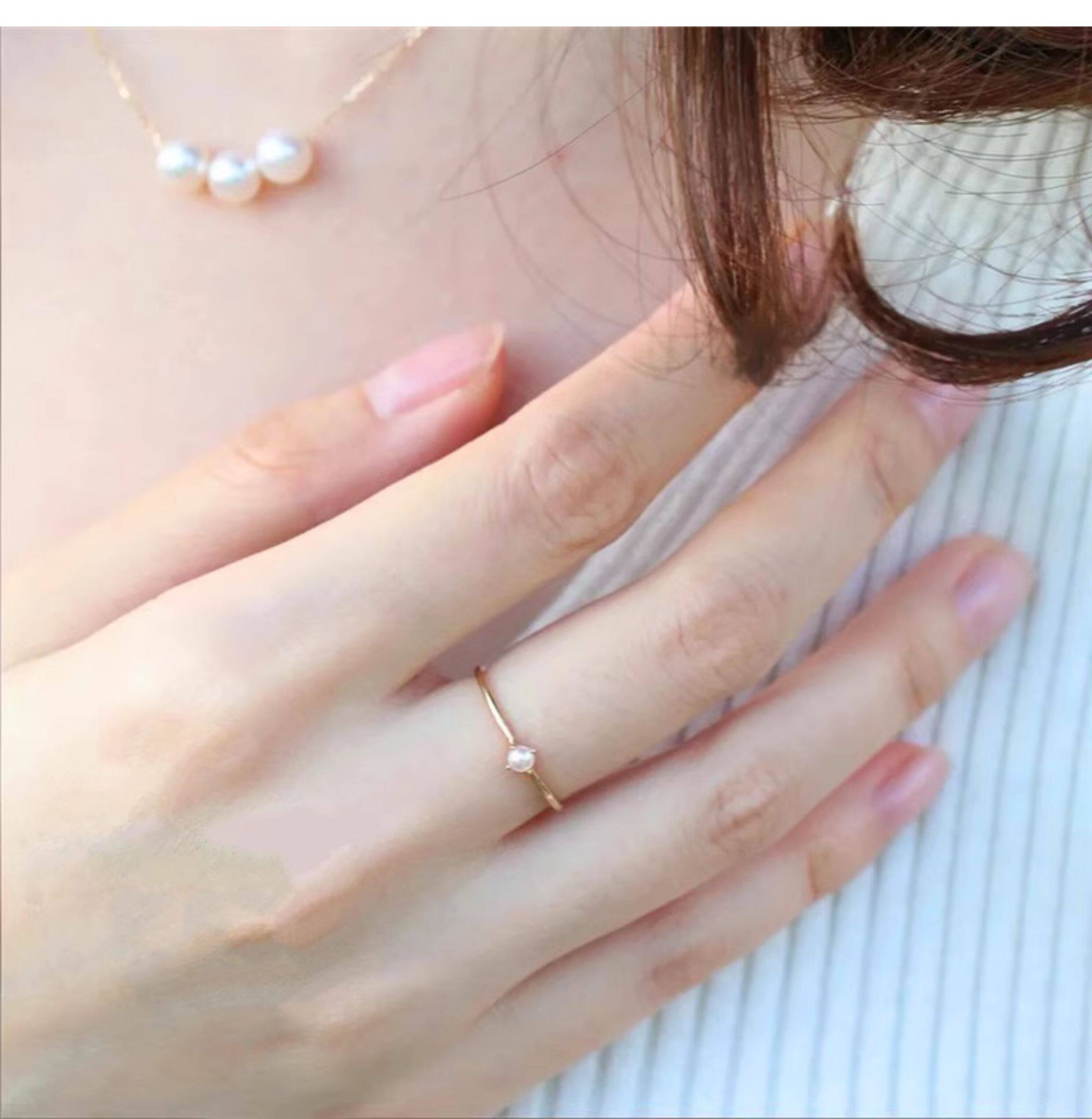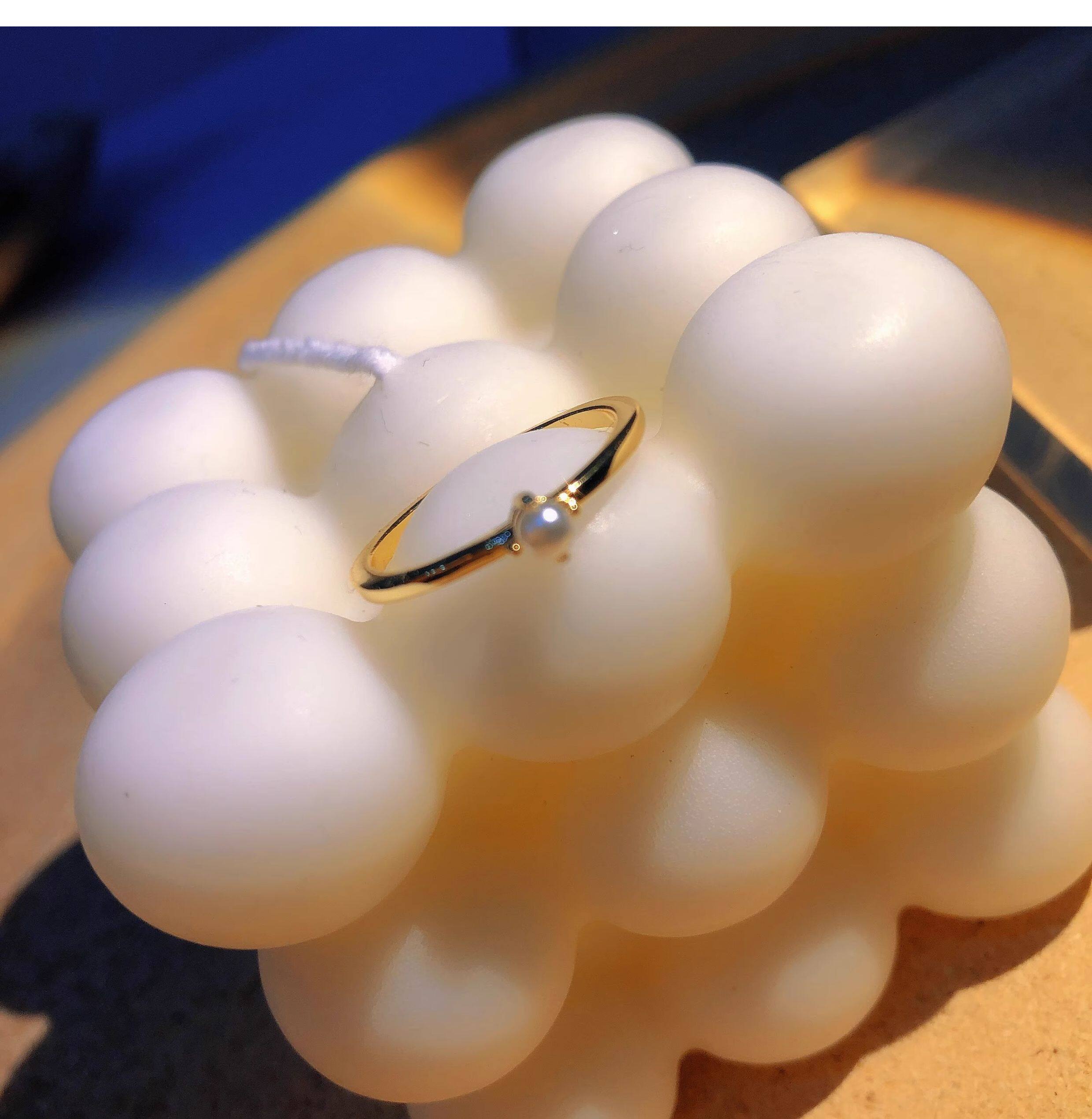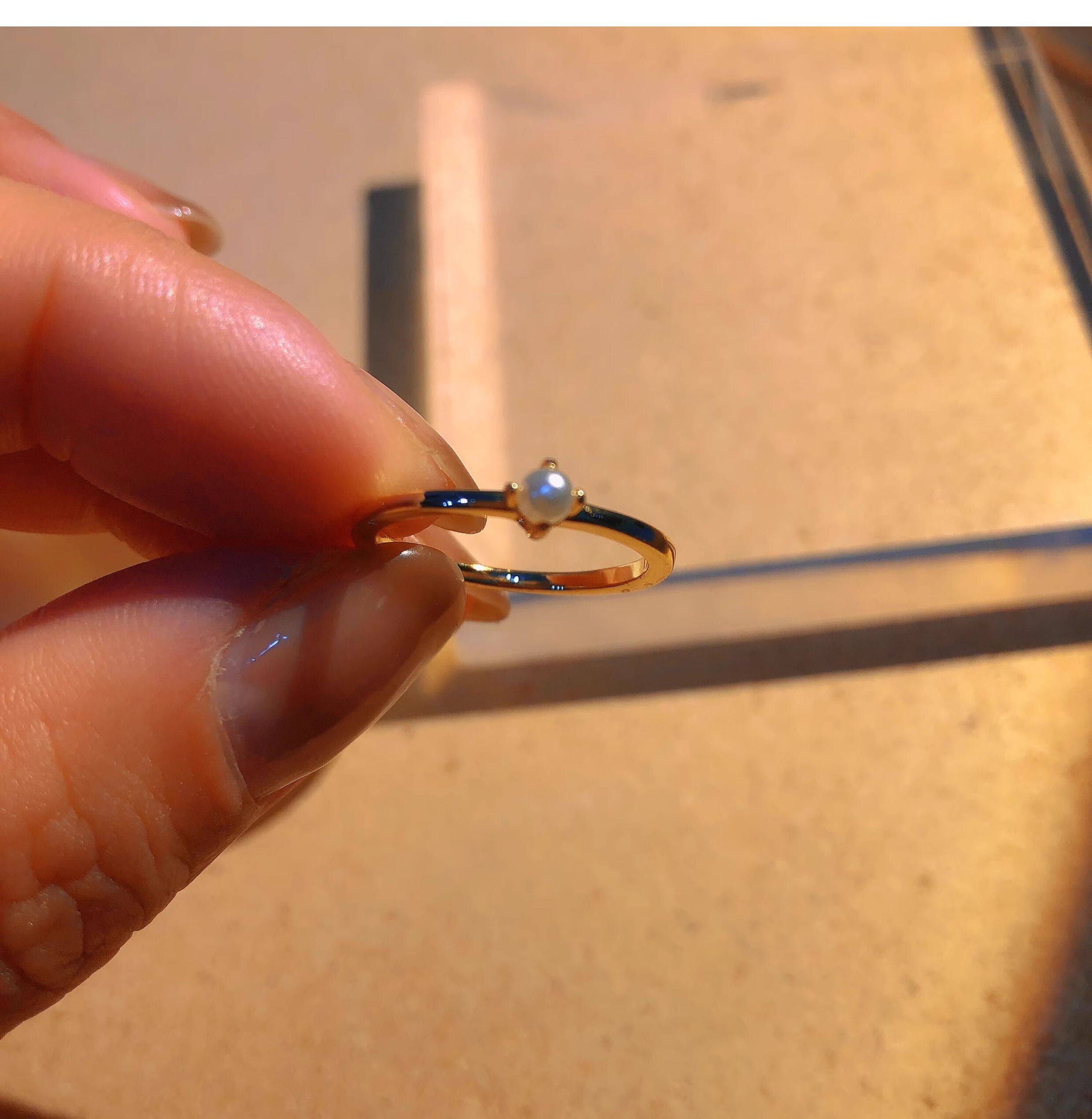 18K包金小清新日本一顆強光小珍珠四爪氣質正圓無暇戒指超仙簡約