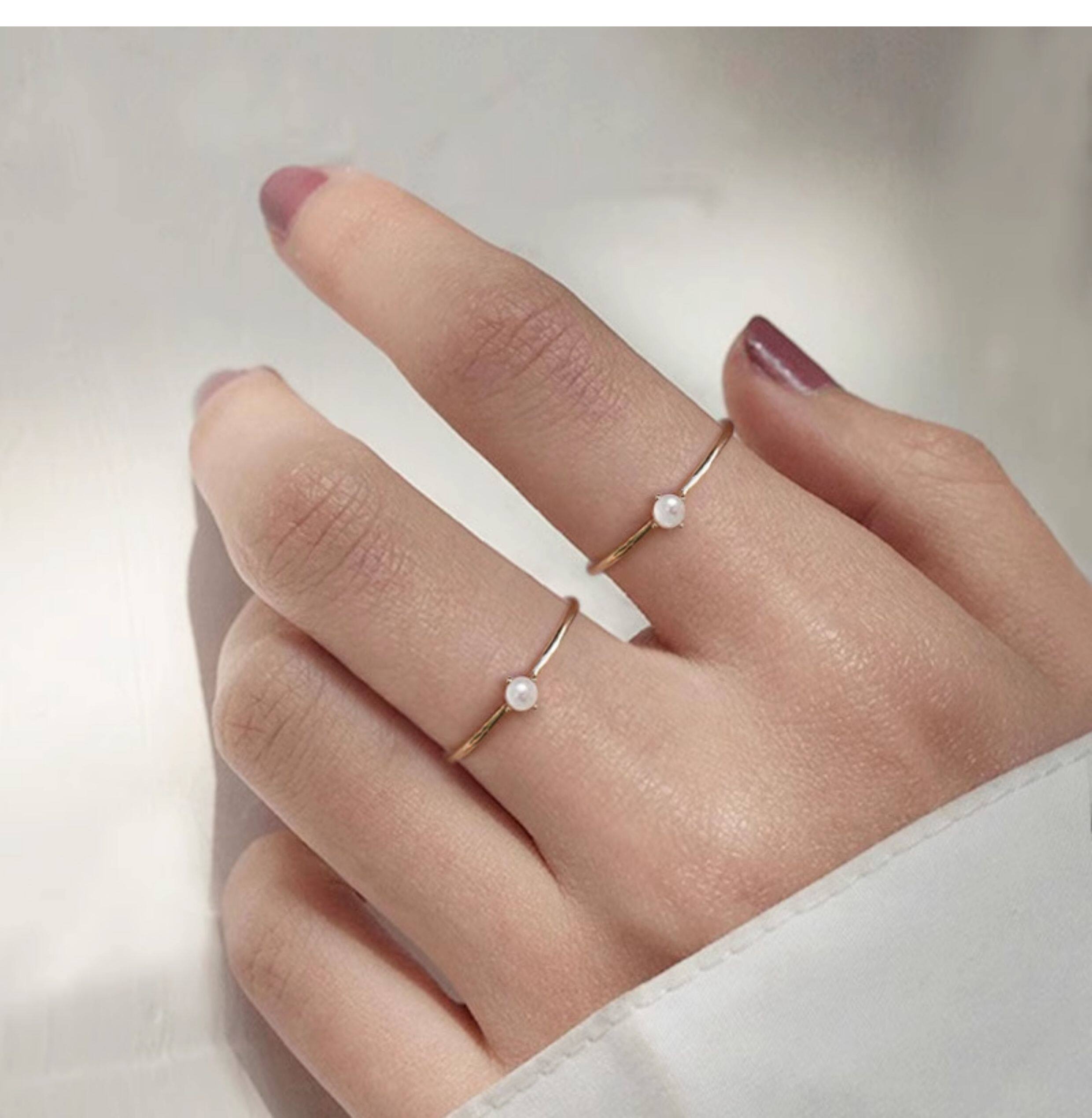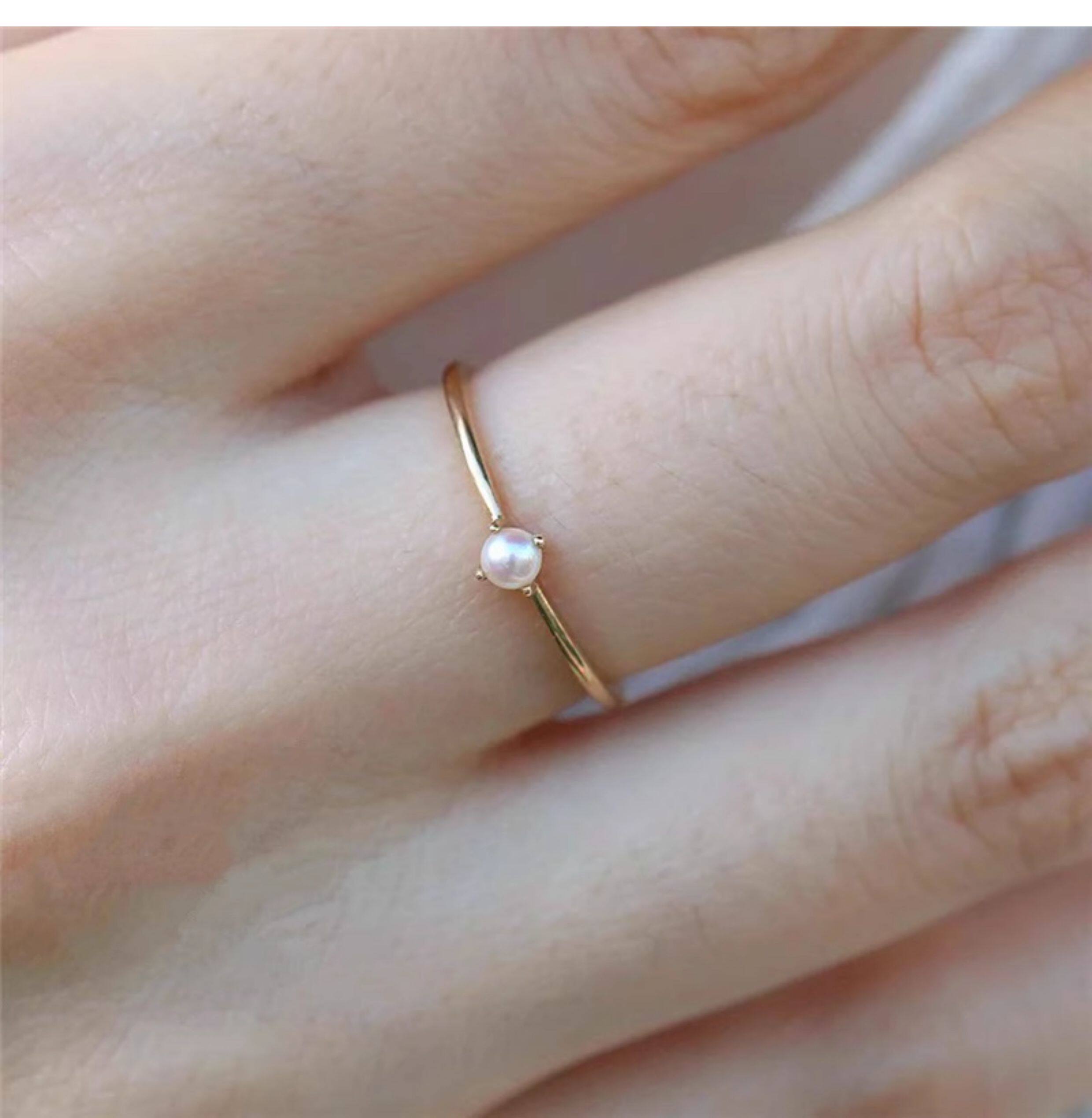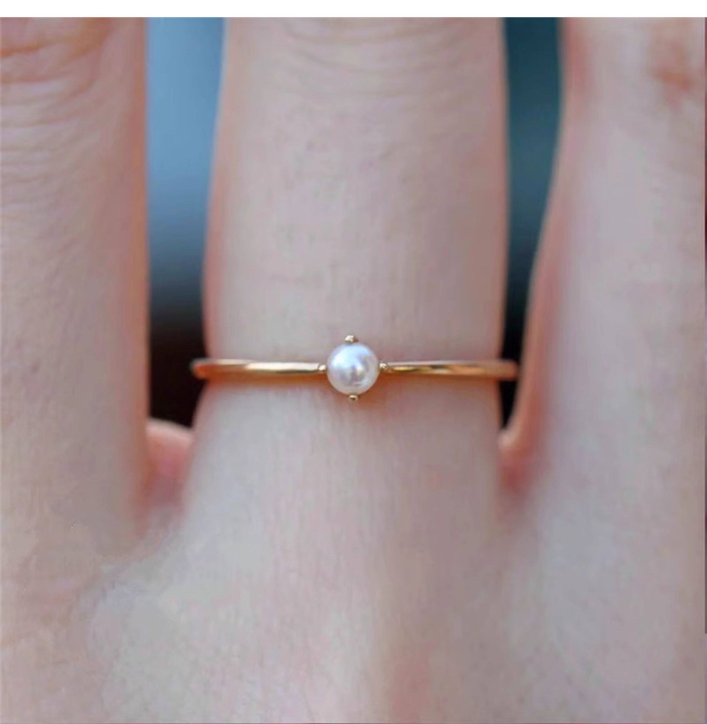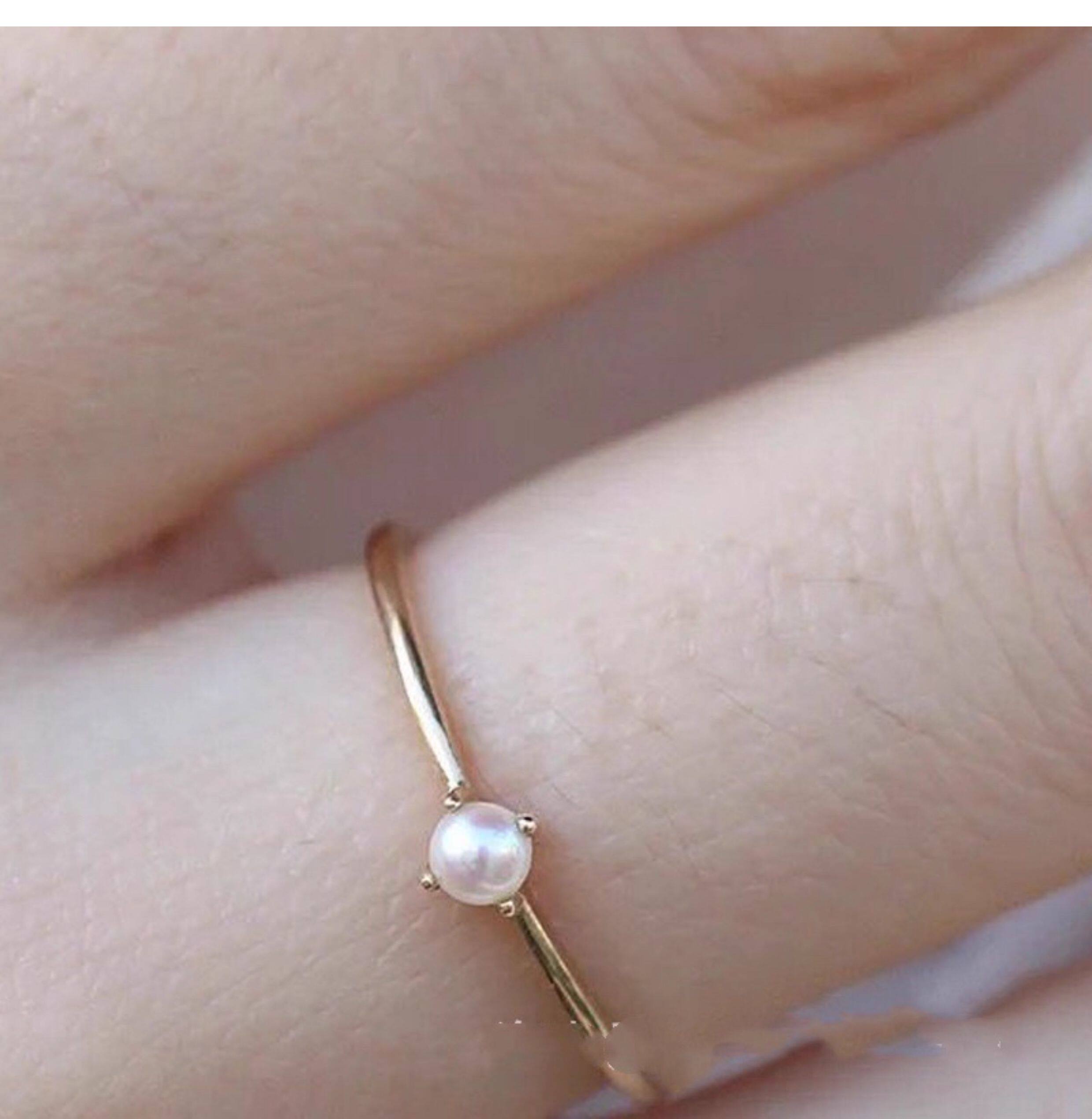 18K包金小清新日本一顆強光小珍珠四爪氣質正圓無暇戒指超仙簡約