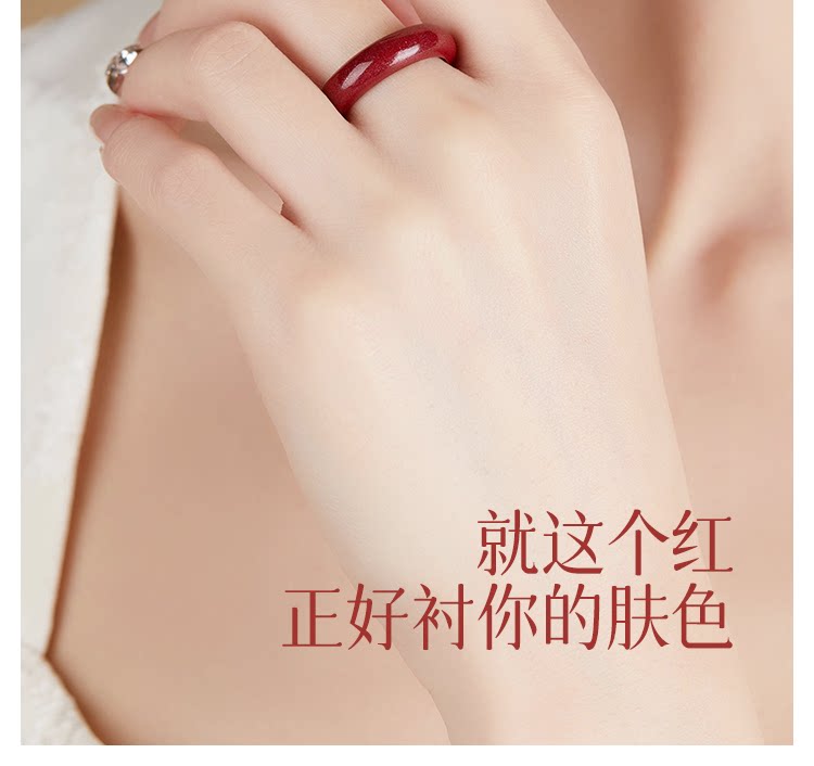 硃砂戒指女款原礦素圈紅指環小衆尾戒對戒款食情侶指戒端午節禮物