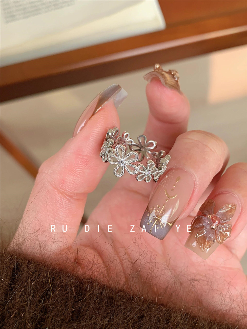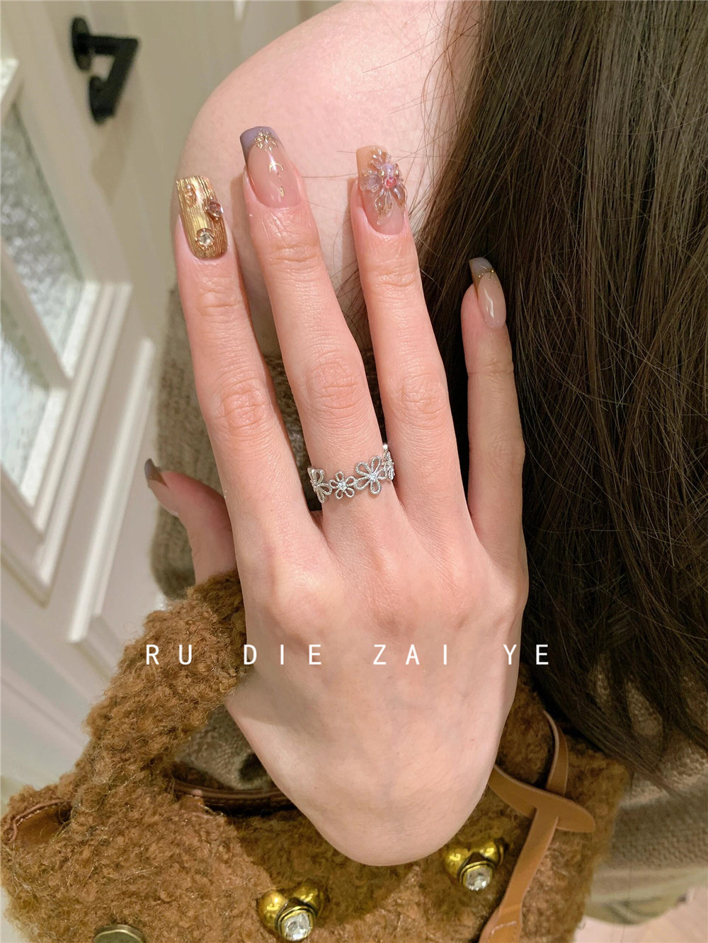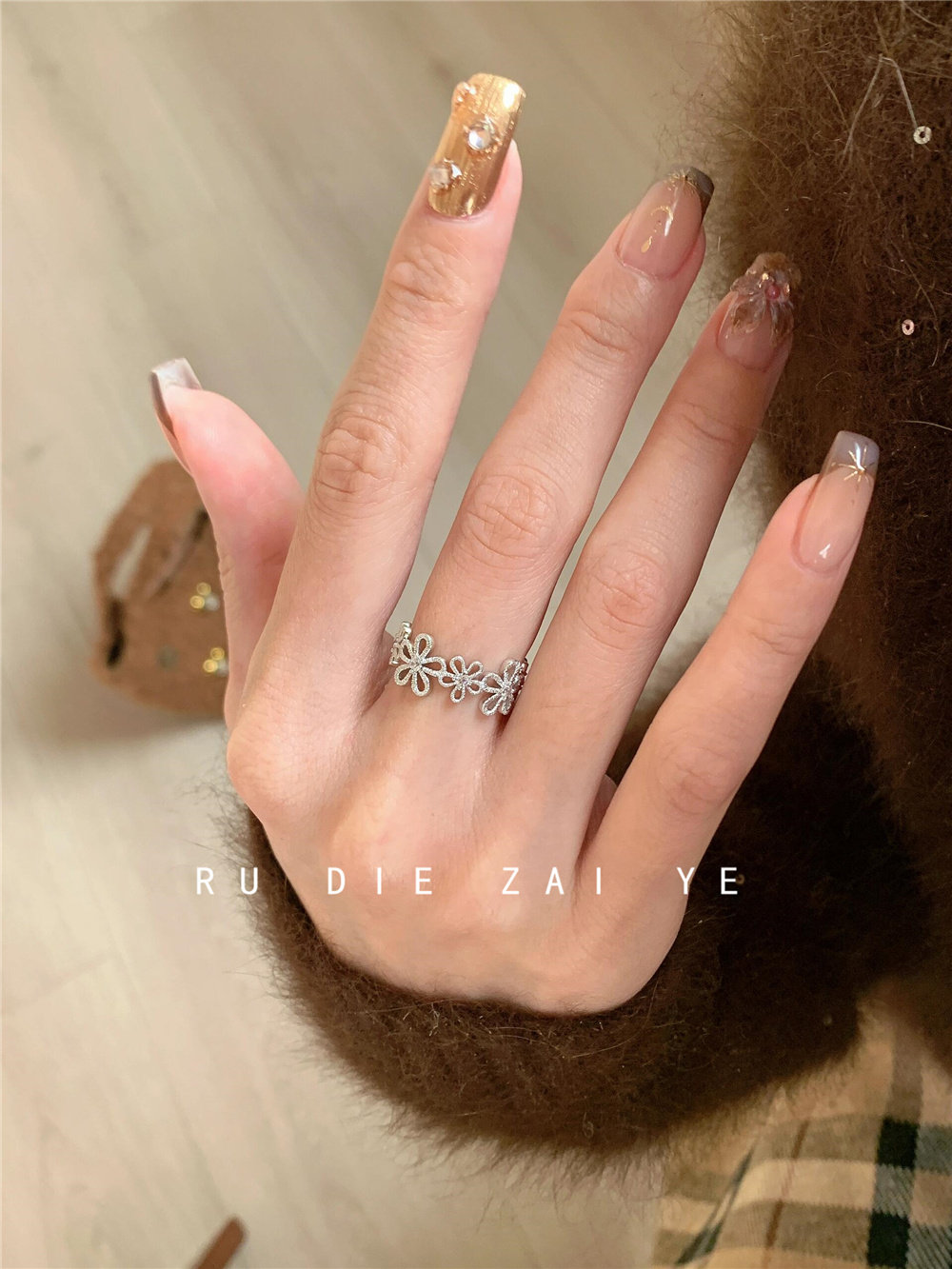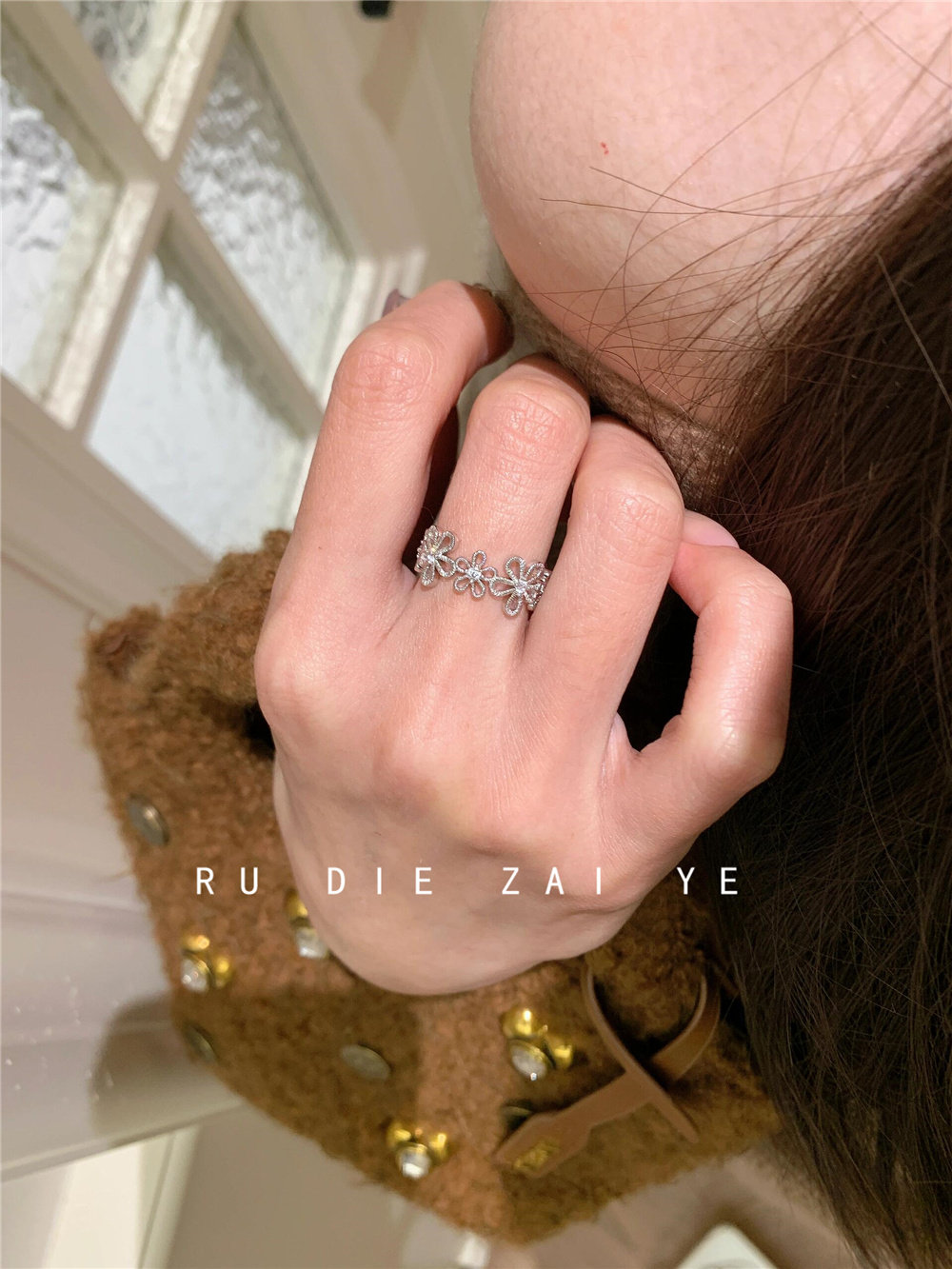 如蝶在野 甜美銀色蕾絲花環戒指女輕奢精緻春夏小衆設計開口戒指