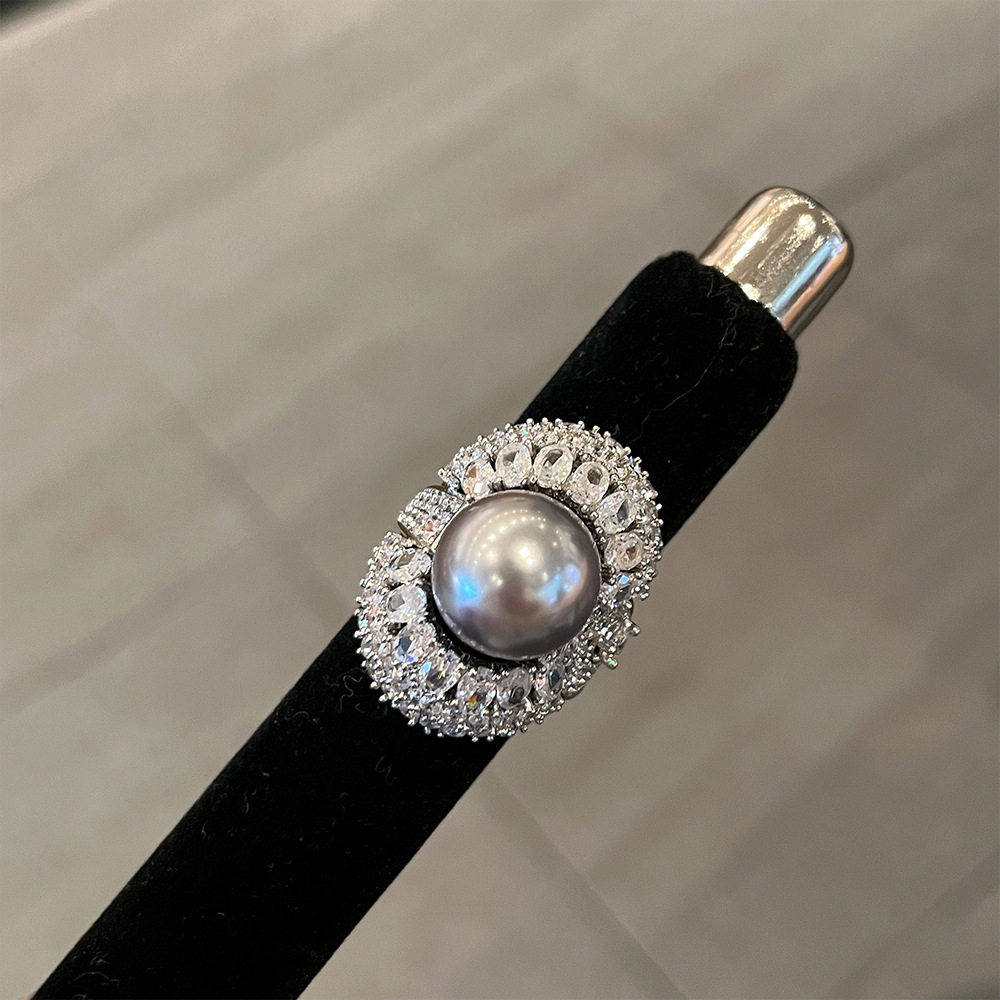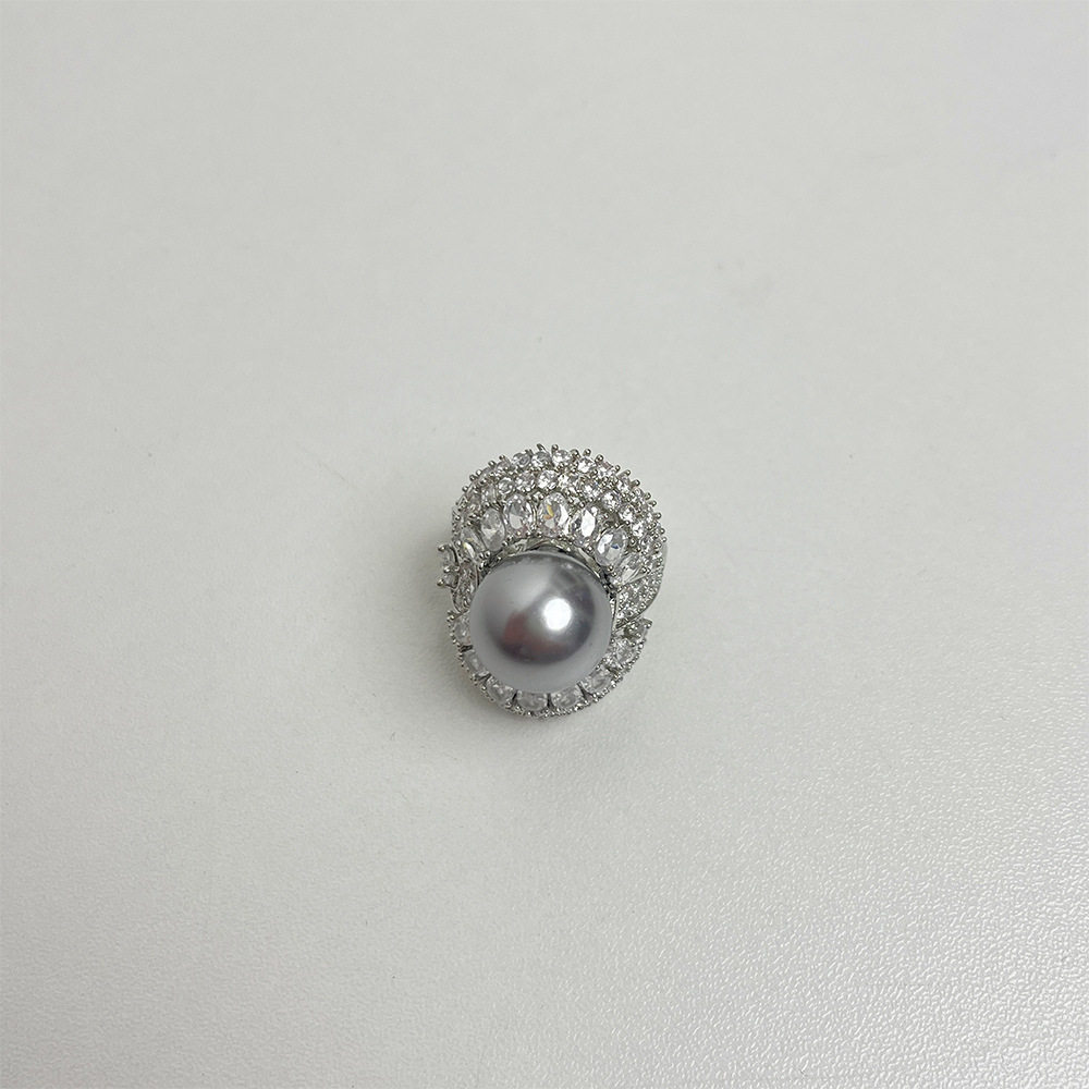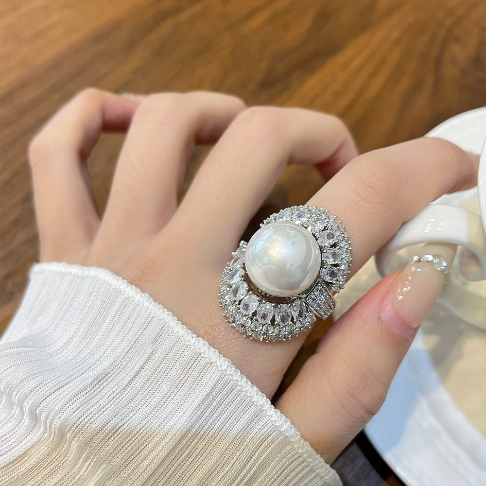 大谿地色珍珠戒指女法式設計滿鑽大顆粒食指戒高級感氣質鋯石指環