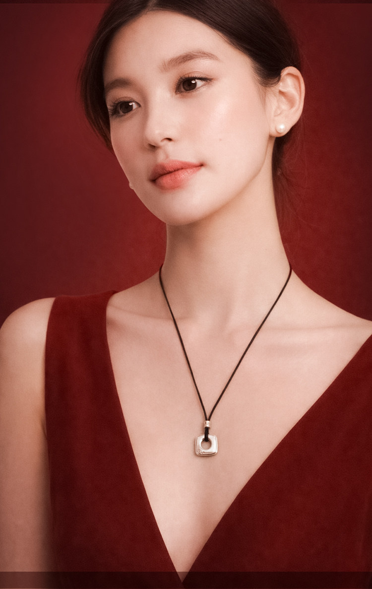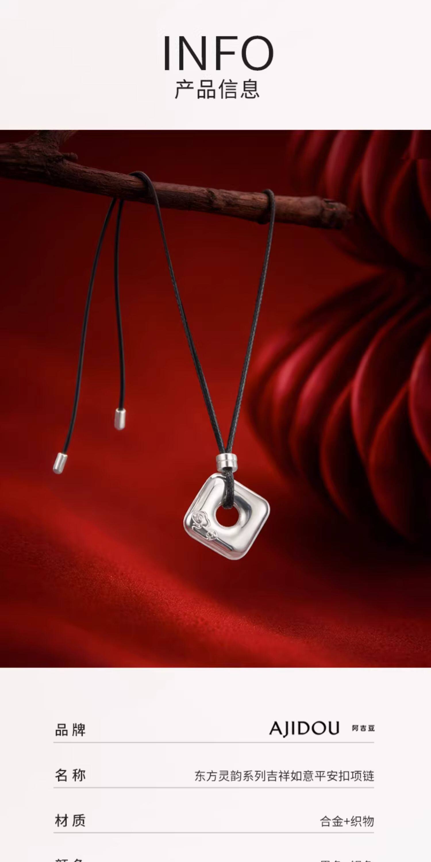 AJIDOU阿吉豆項鍊女銀色平安釦招財轉運吊墜鎖骨鍊輕奢毛衣鏈配飾