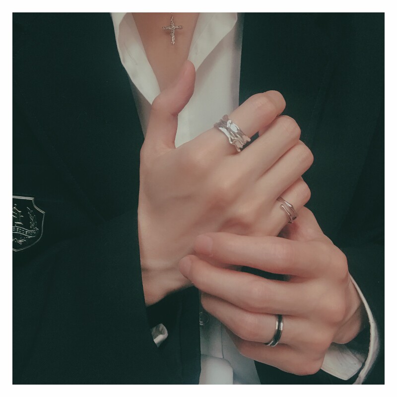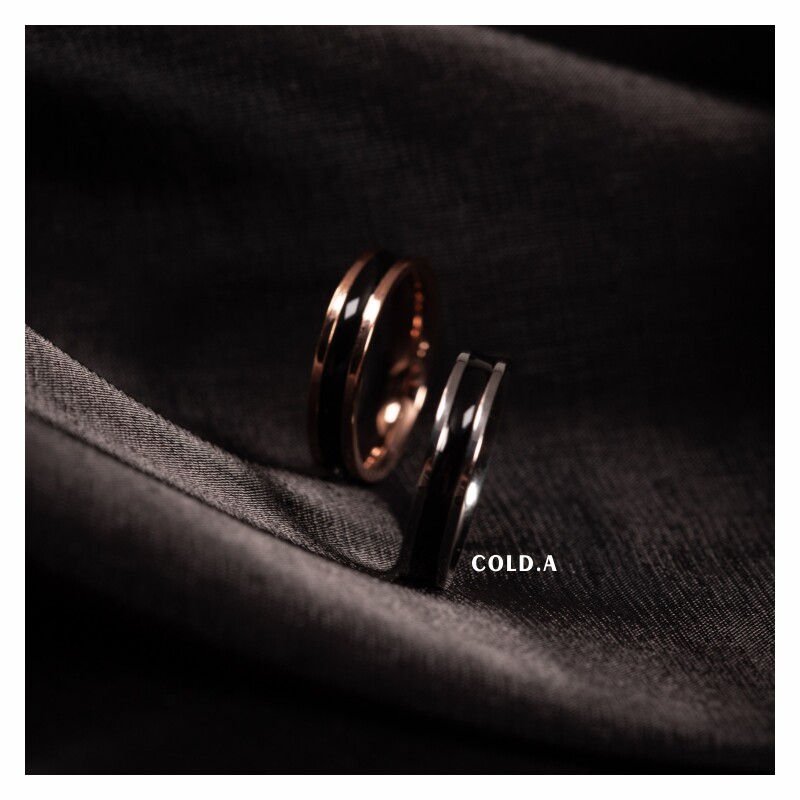 日蝕/老錢風黑色鈦鋼戒指女設計小衆高級感尾戒男士合金單身戒男