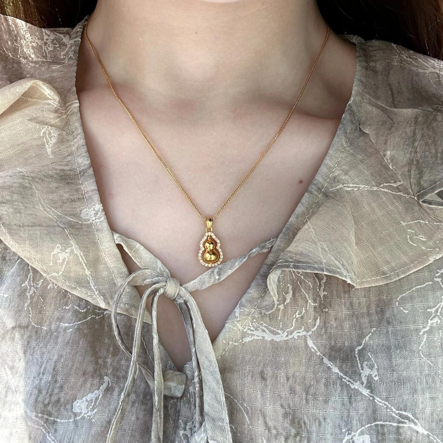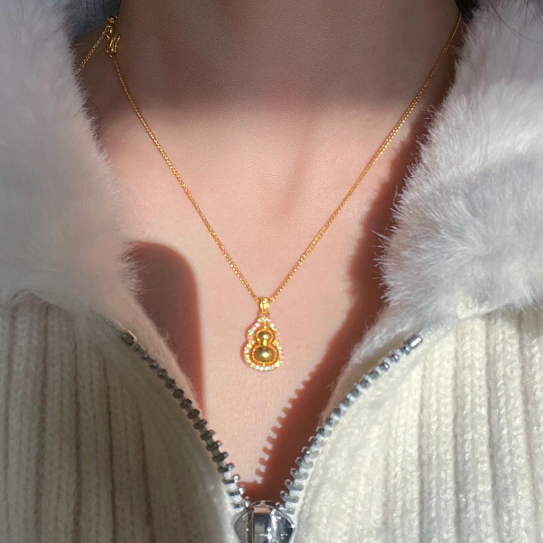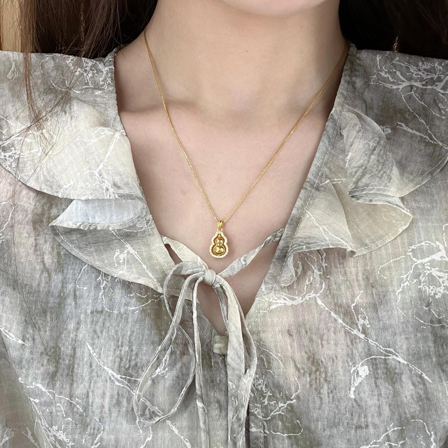 金店同款福祿古法手工葫蘆項鍊吊墜女時來運轉鑲鑽百搭掛墜新年風