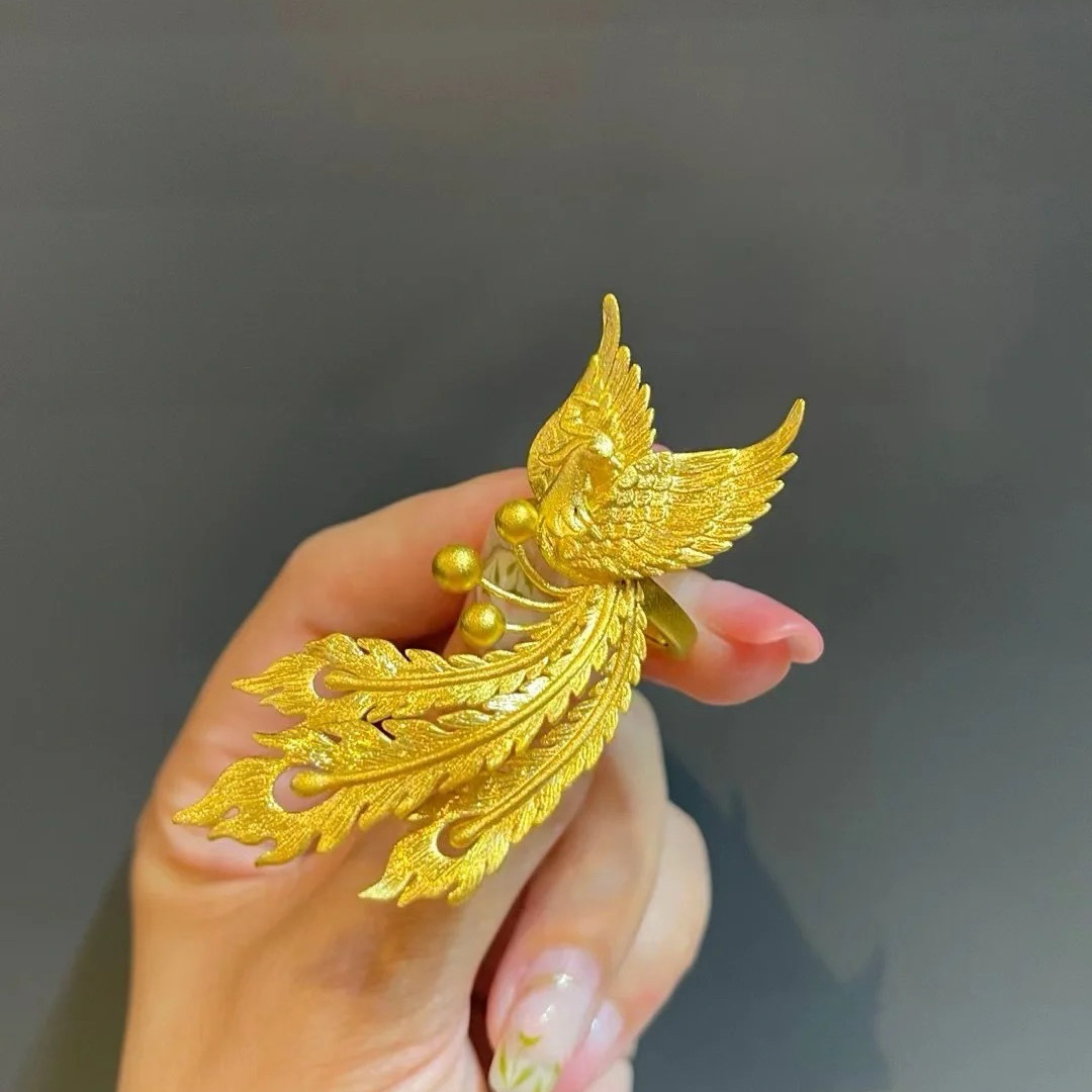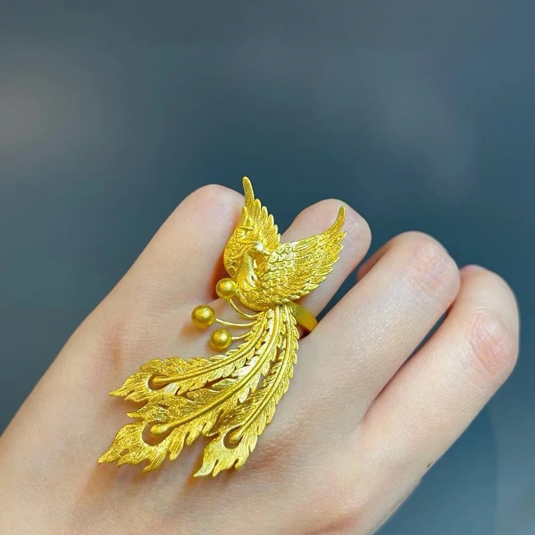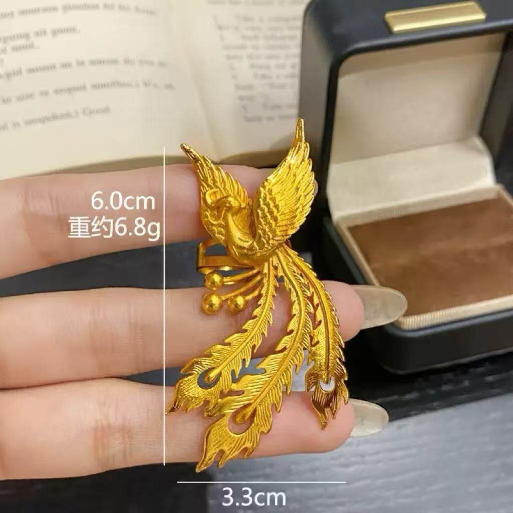 鳳凰開口戒指孔雀活口可調節結訂婚仿真三金拍照婚嫁鳳飛九天戒指