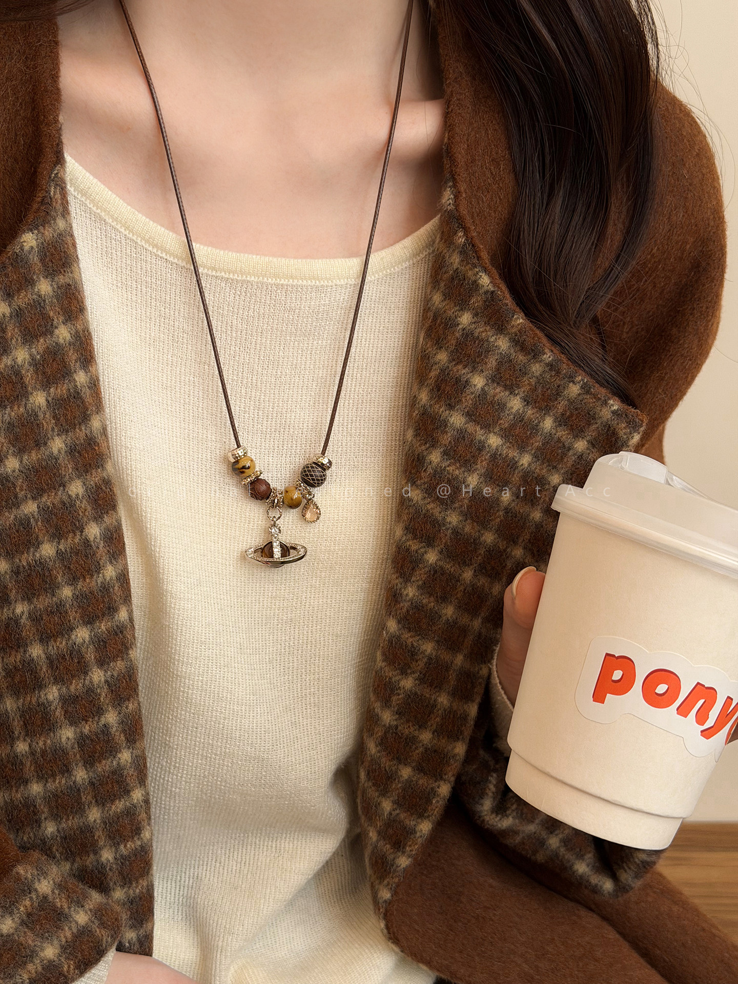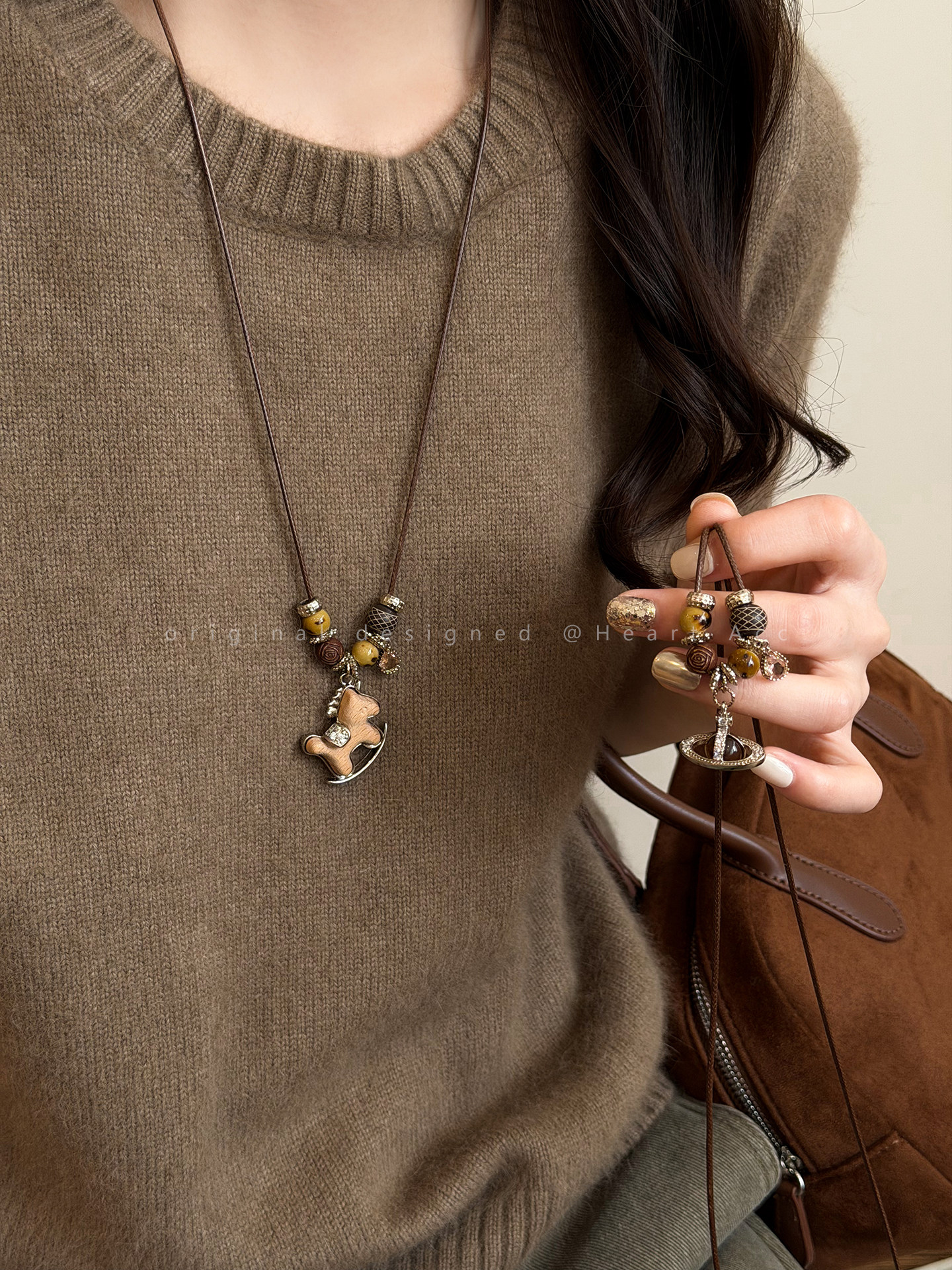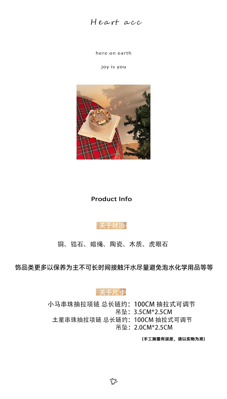 咖色小馬串珠抽拉項鍊女秋冬美拉德氣質長款毛衣鏈百搭本命年配飾