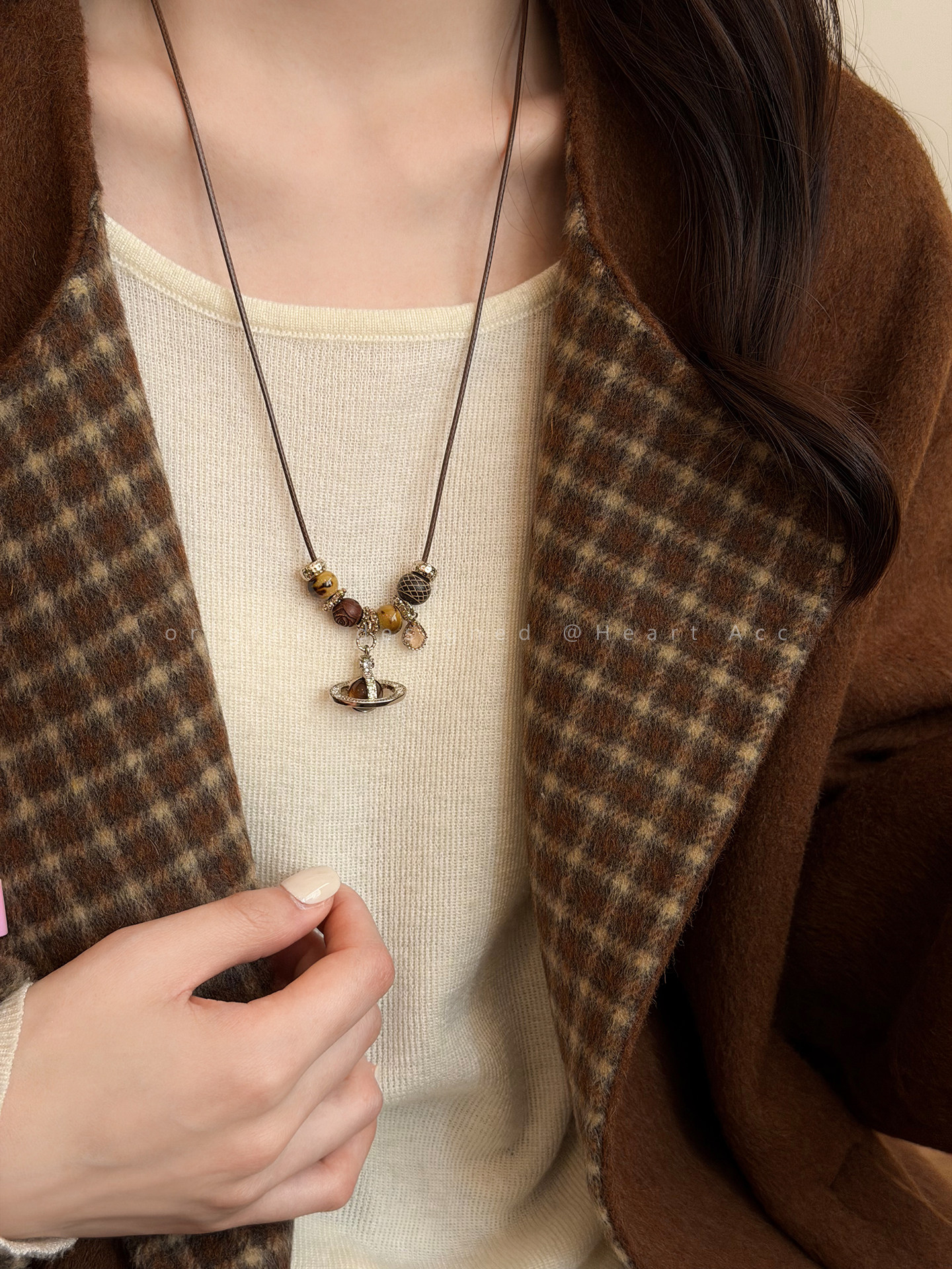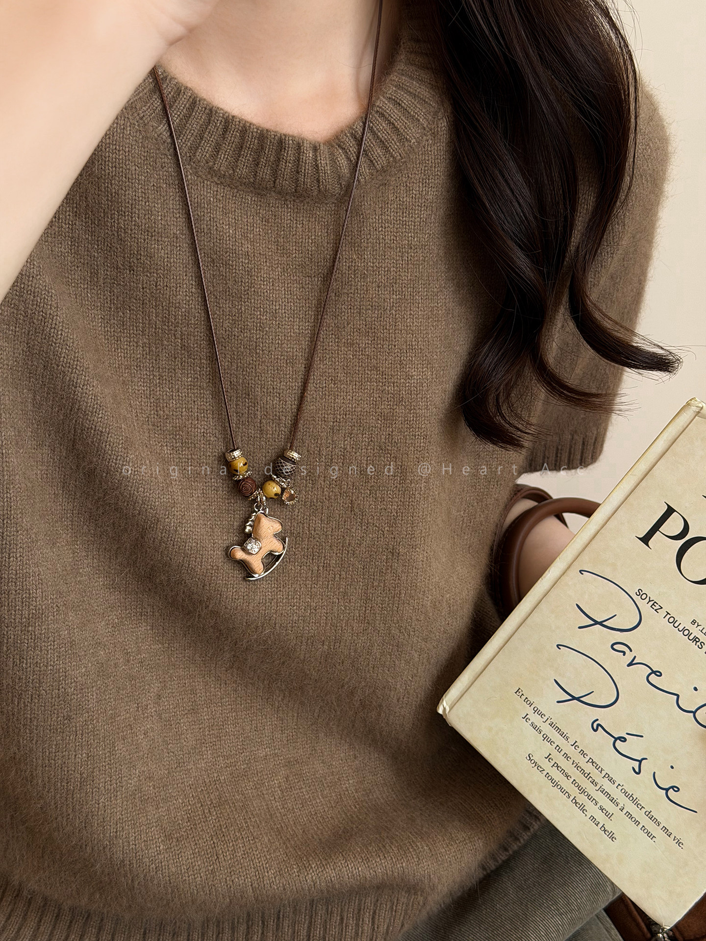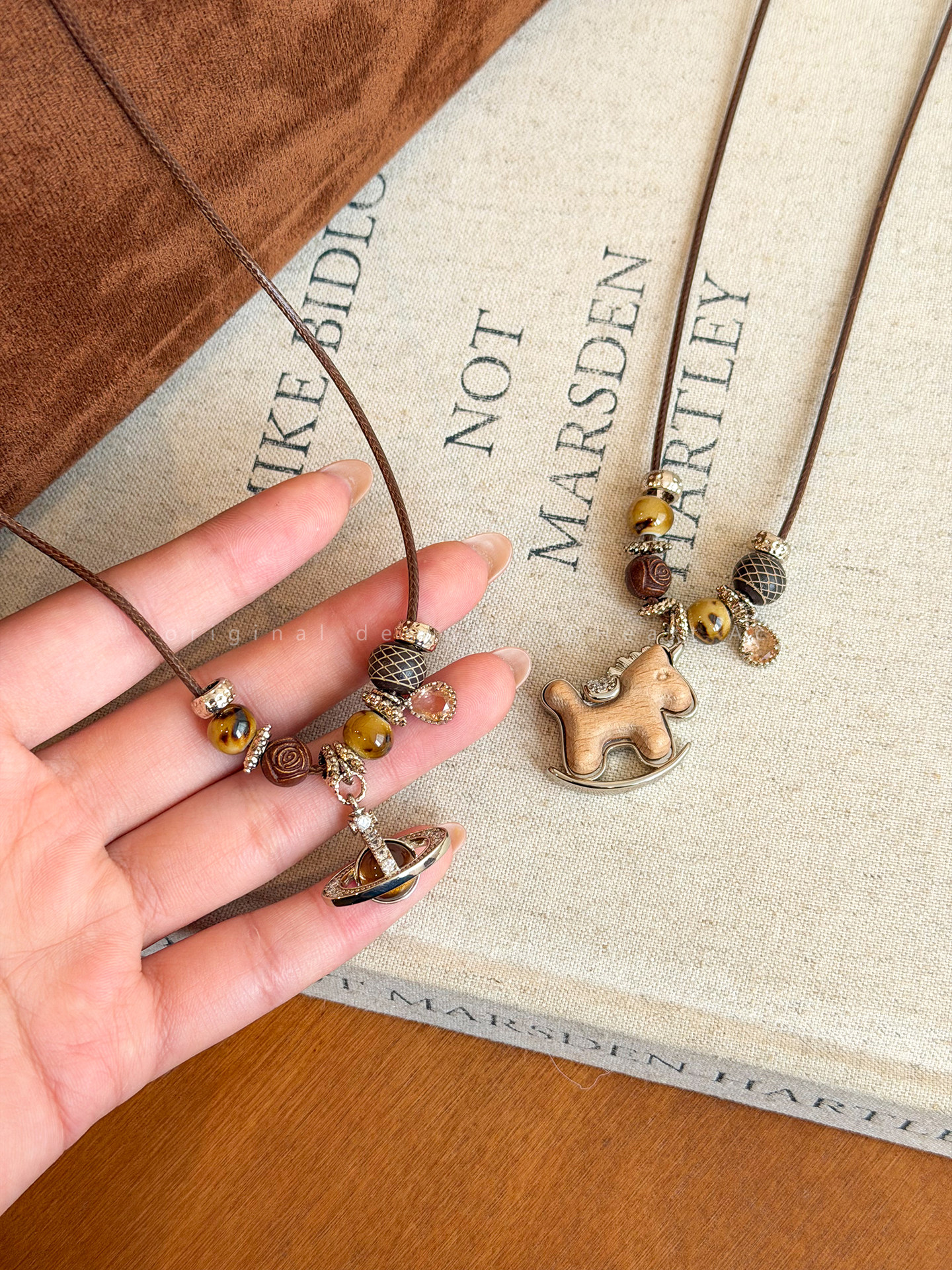 咖色小馬串珠抽拉項鍊女秋冬美拉德氣質長款毛衣鏈百搭本命年配飾