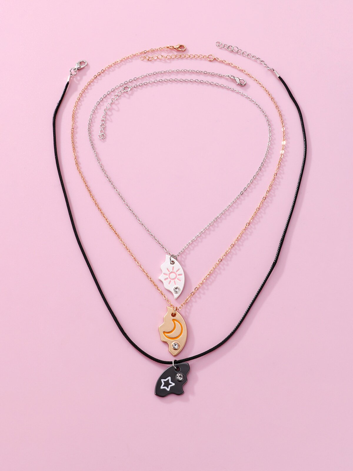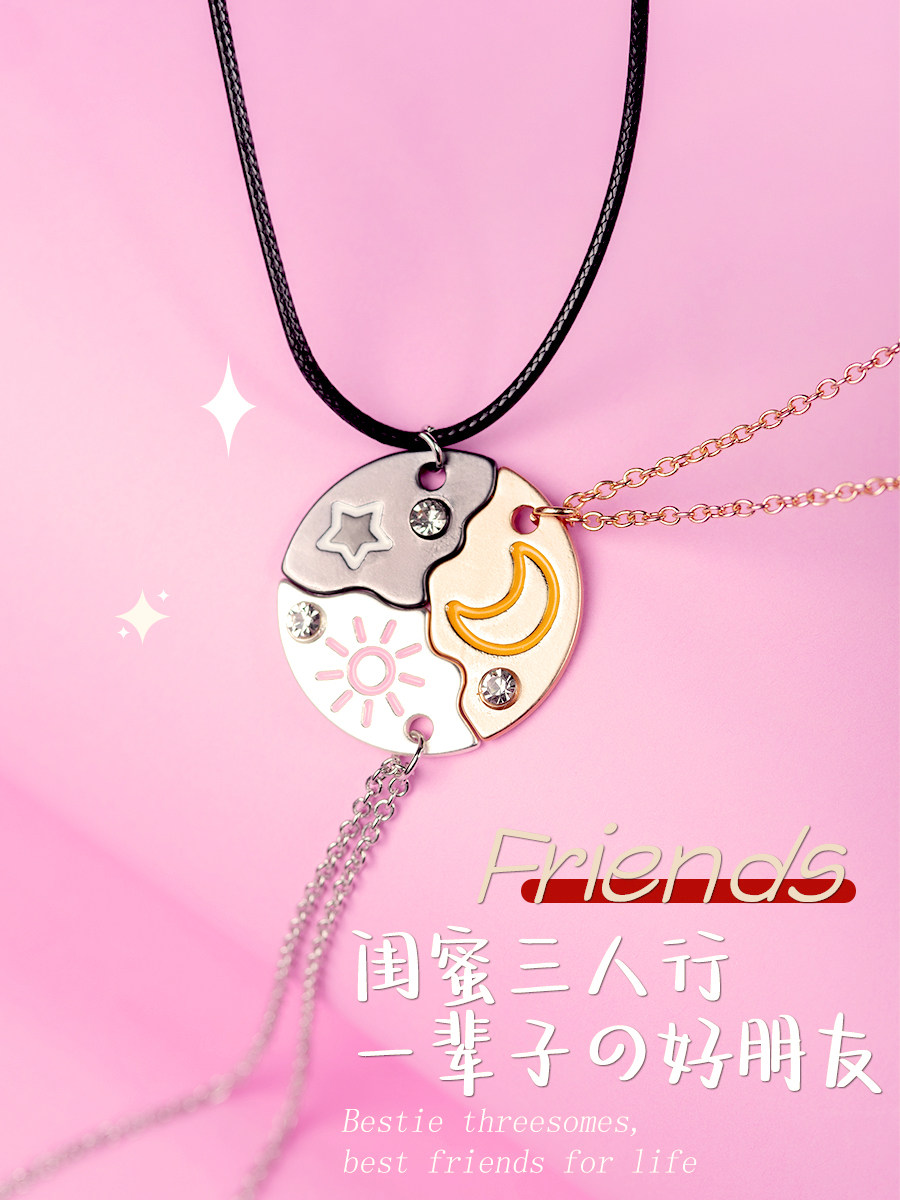 閨蜜項鍊三人款月亮星星好朋友項鍊姐妹友誼套裝圓形吊墜生日禮物