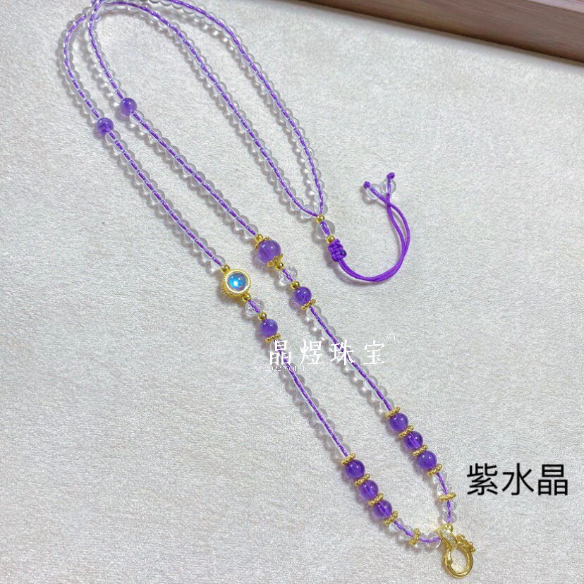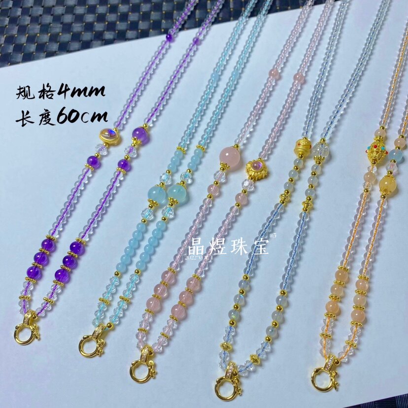 原創水晶珠鍊繩萬能釦款百搭唐卡泰牌宋錦吊墜通用毛衣鏈配繩掛鏈