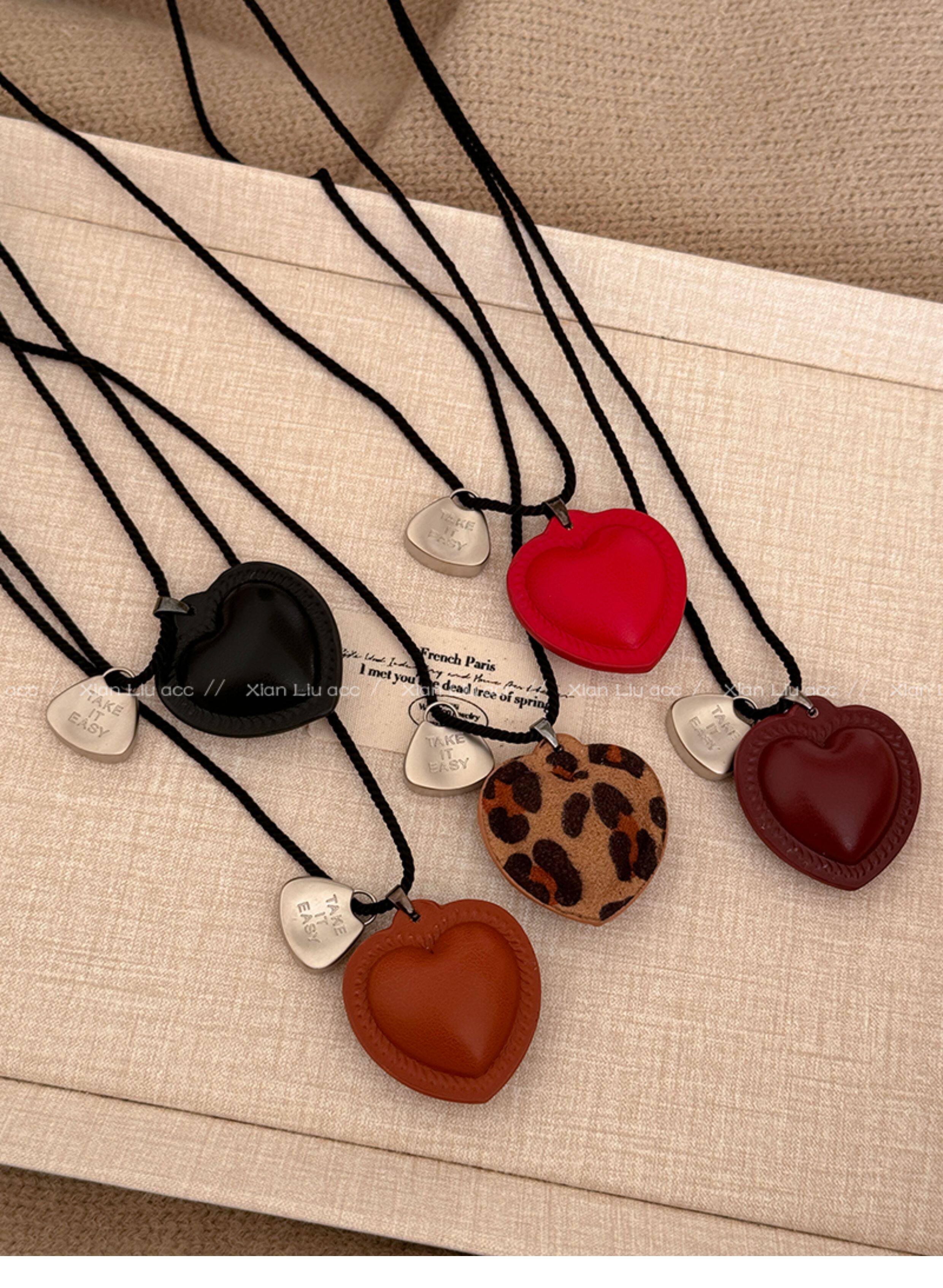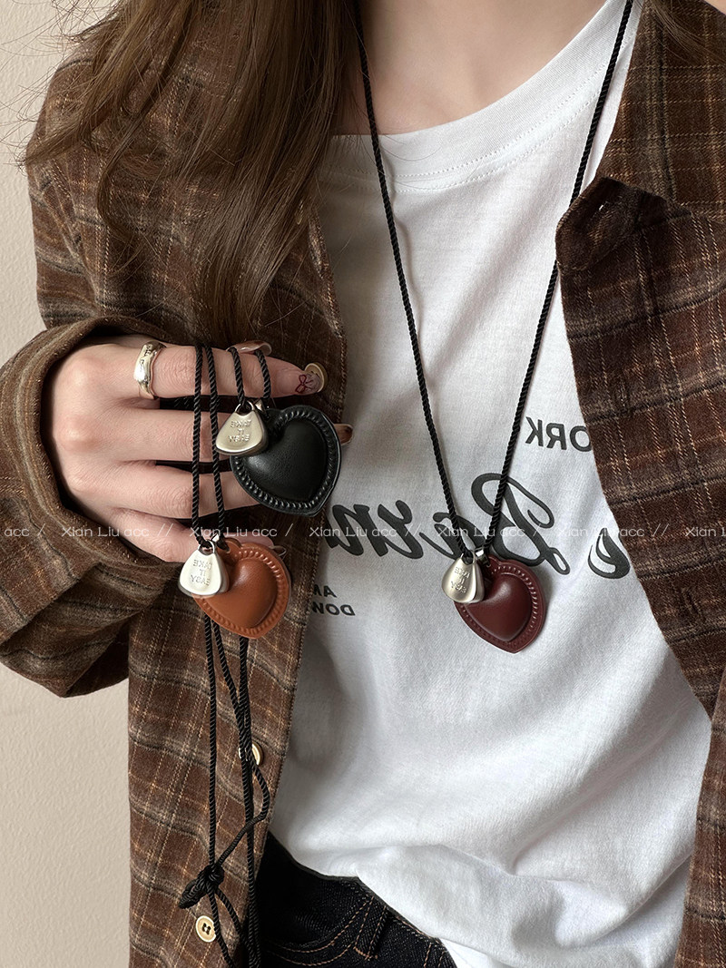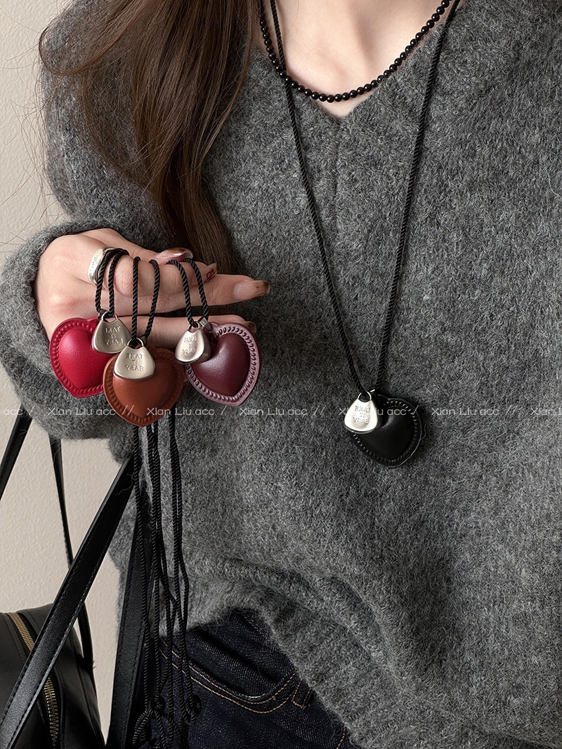 皮質愛心項鍊長款掛脖配飾女毛衣鏈輕奢小衆高級感衛衣鏈2025新款