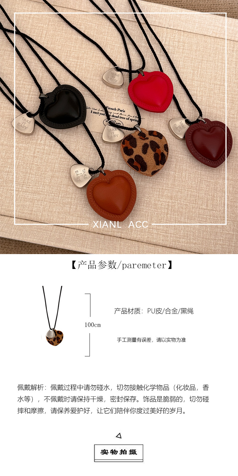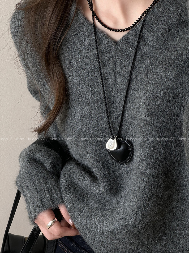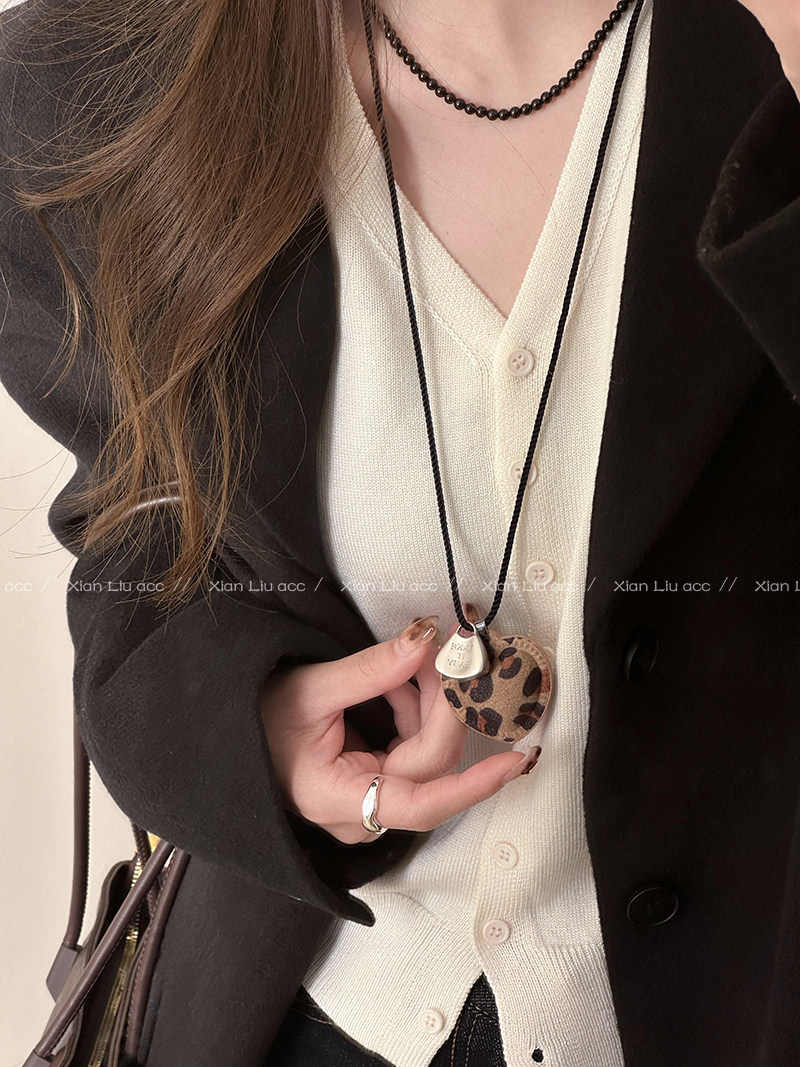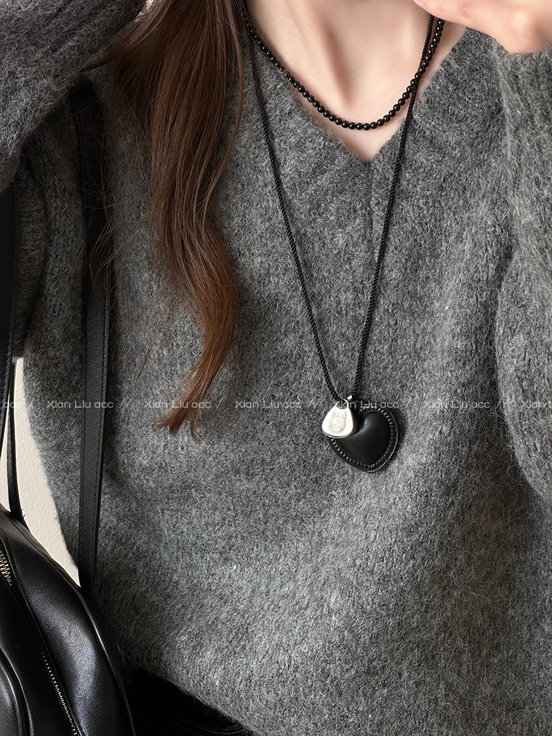 皮質愛心項鍊長款掛脖配飾女毛衣鏈輕奢小衆高級感衛衣鏈2025新款