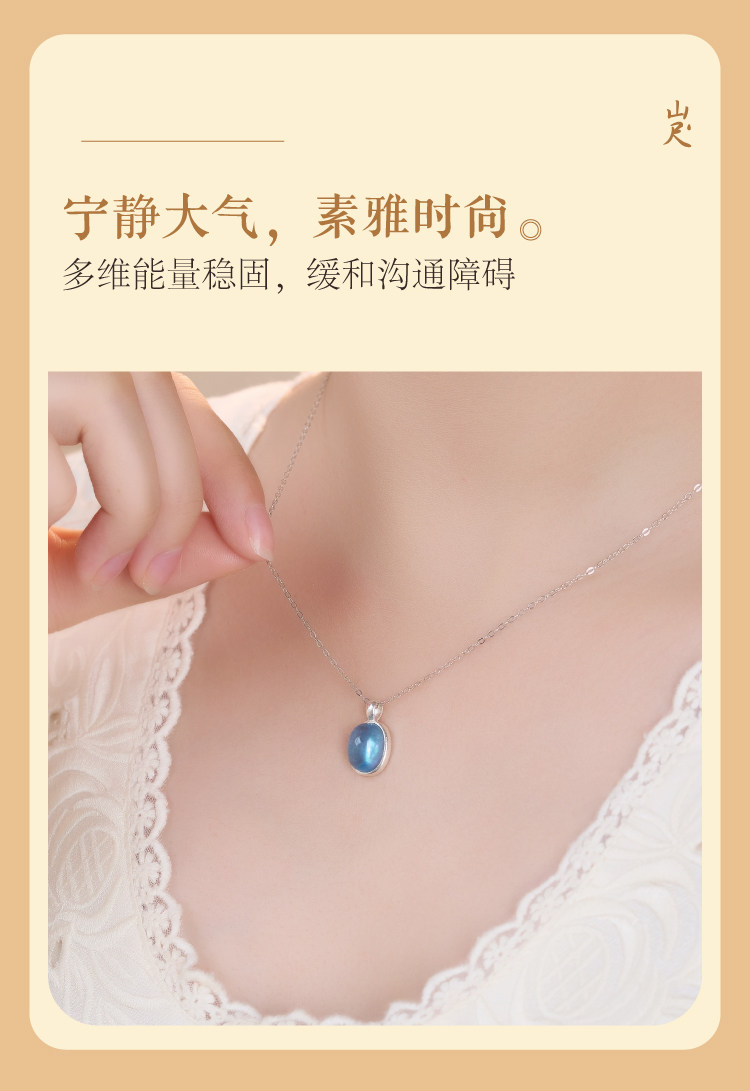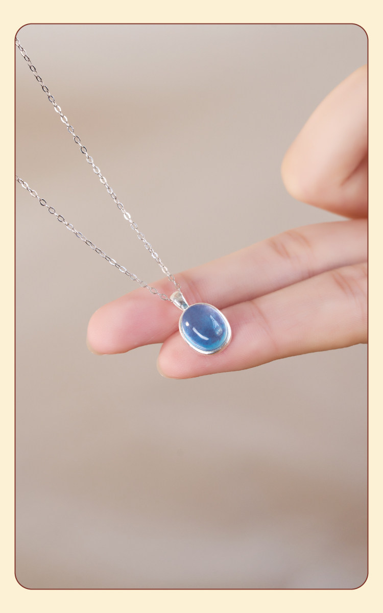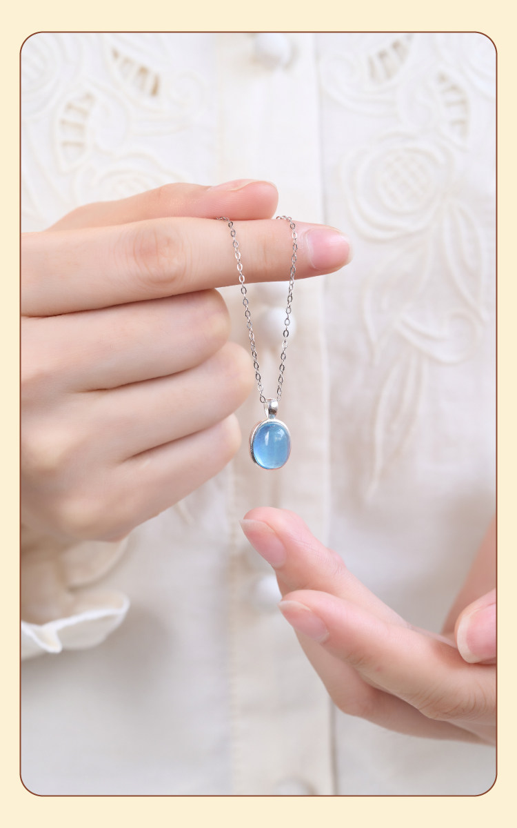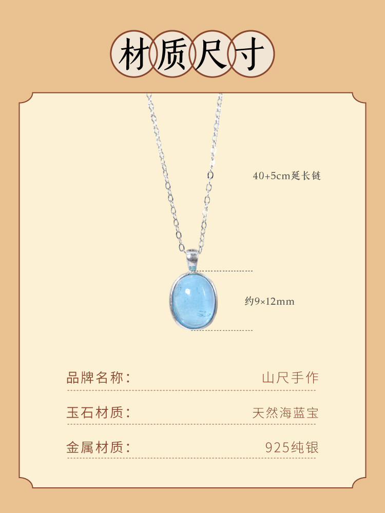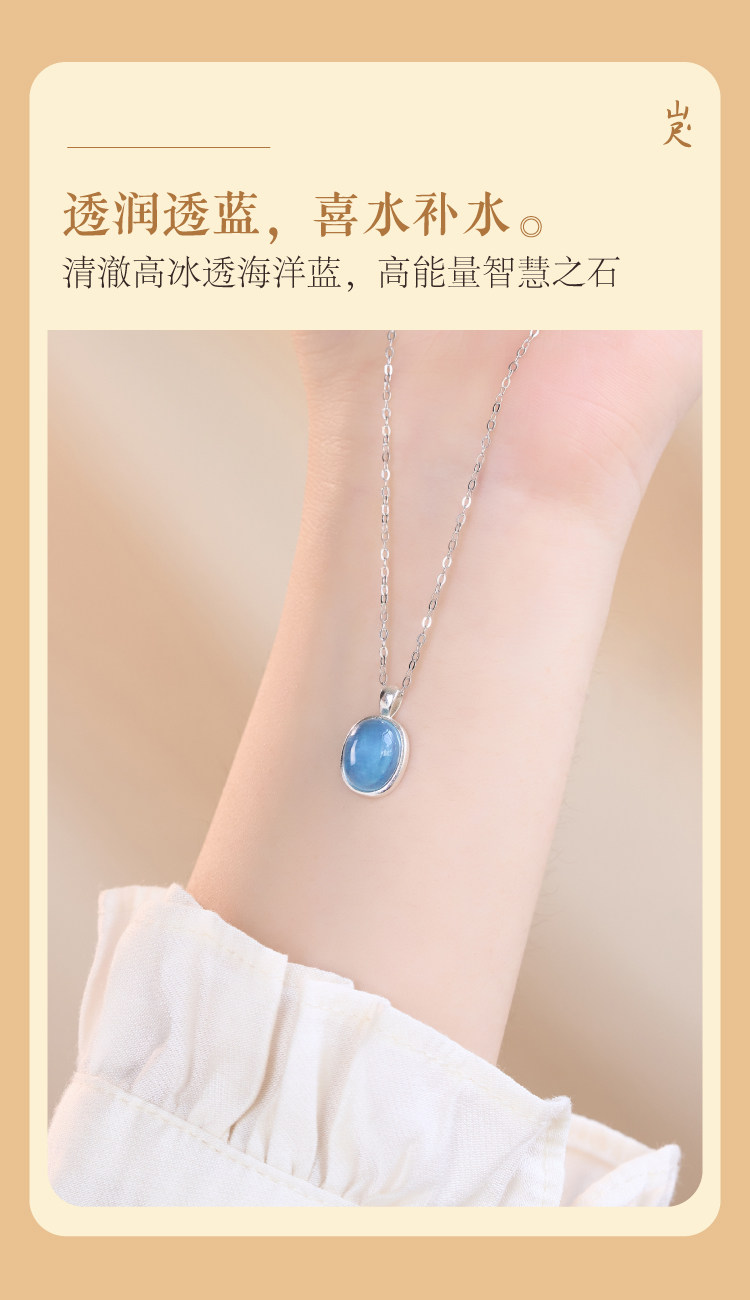 海藍寶項鍊補水藍色水滴吊墜女純銀天然水晶蛋面藍寶石冰種頸鏈|