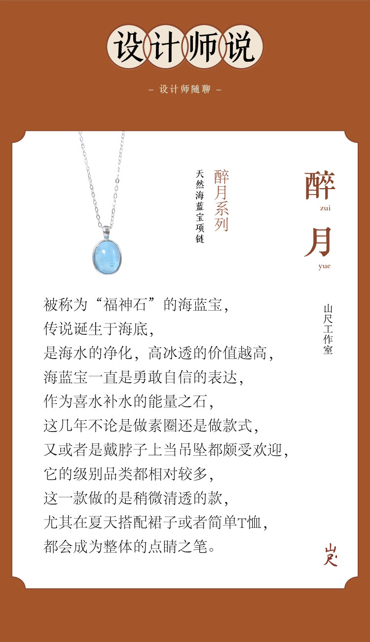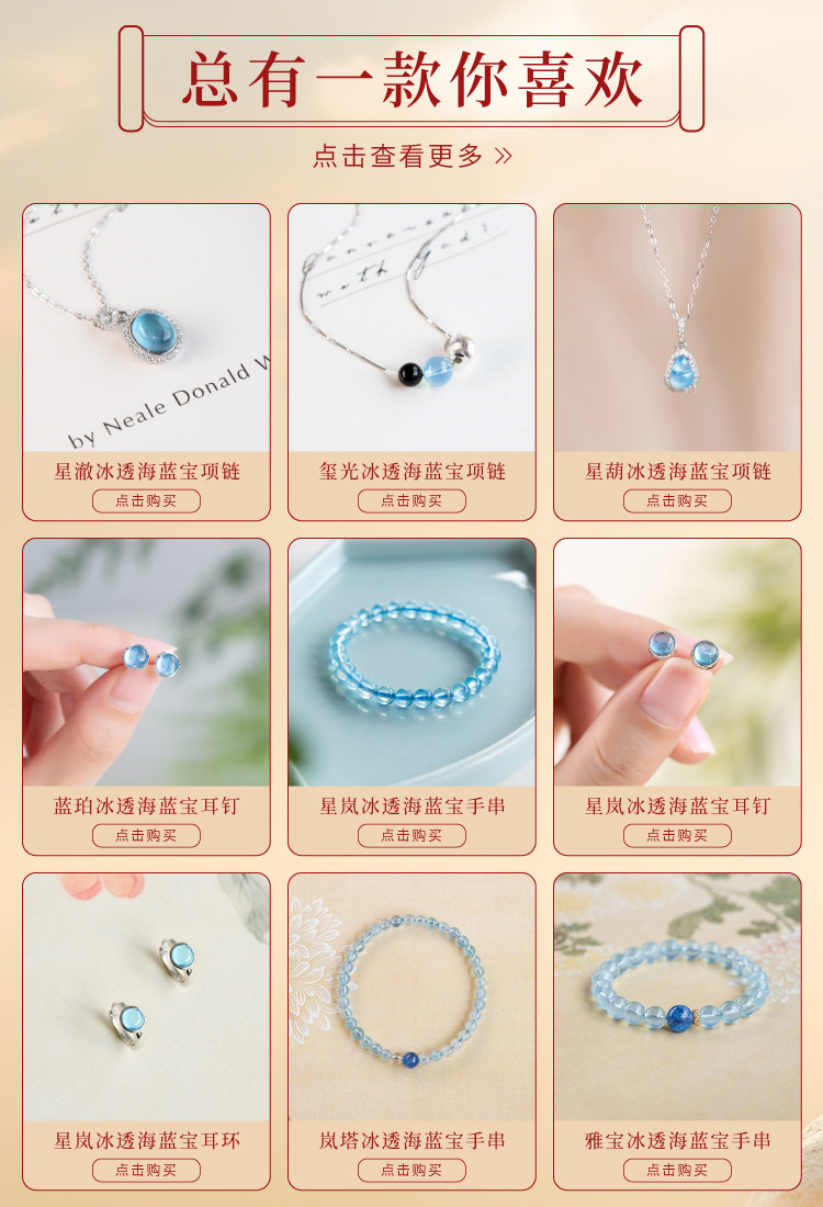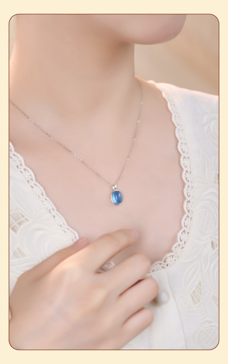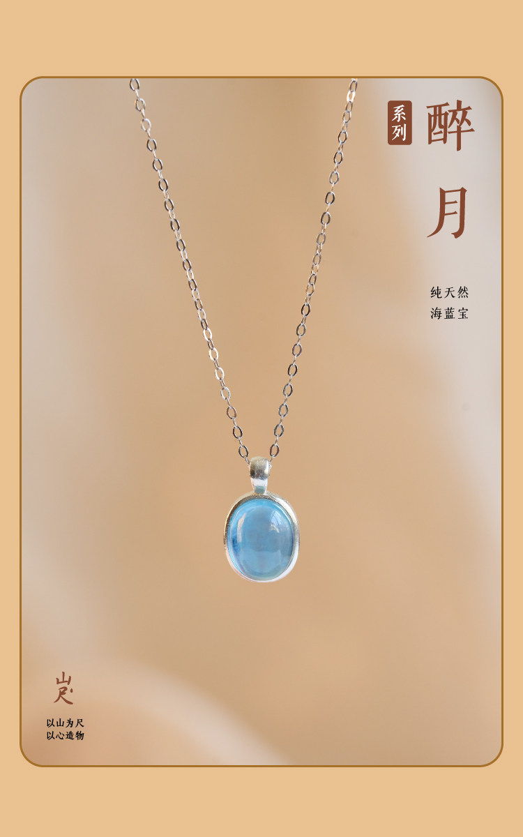 海藍寶項鍊補水藍色水滴吊墜女純銀天然水晶蛋面藍寶石冰種頸鏈|