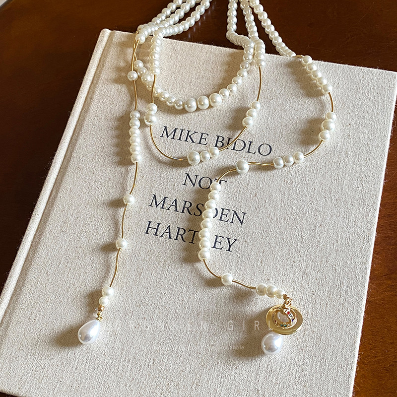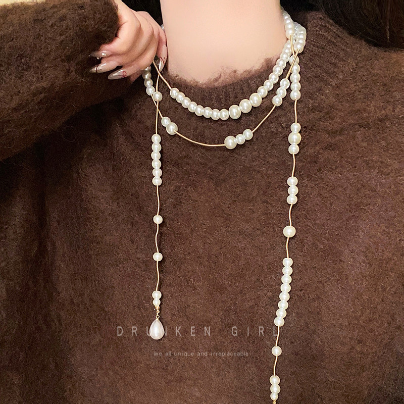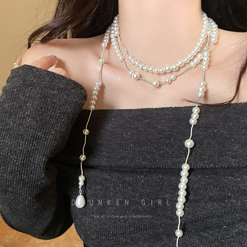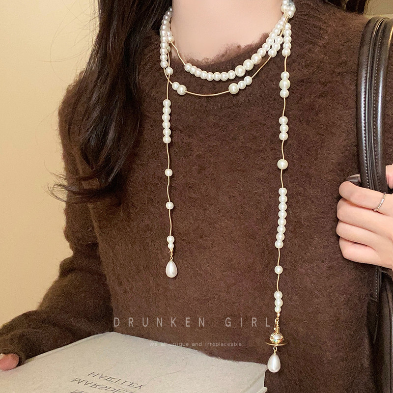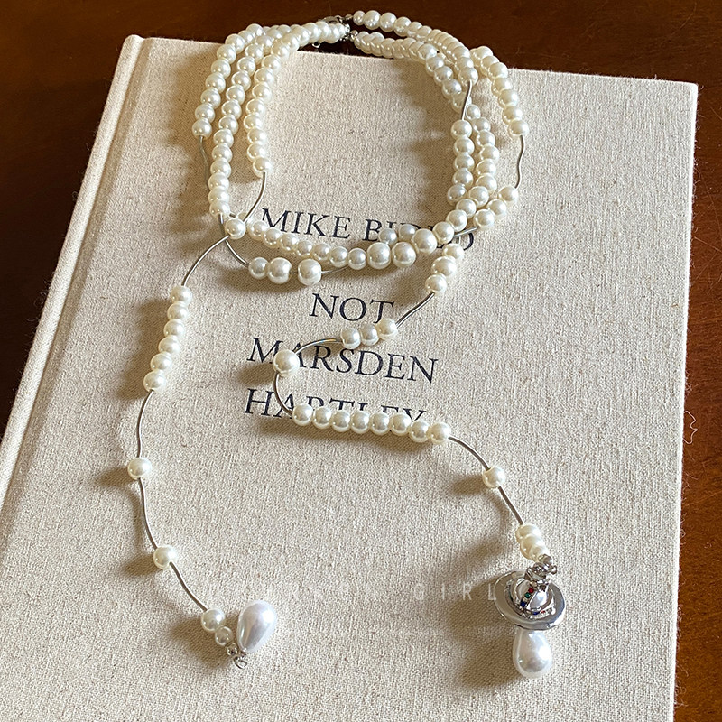 西太後多層珍珠流蘇星球項鍊女長款曡戴choker生日禮服鎖骨鍊配飾