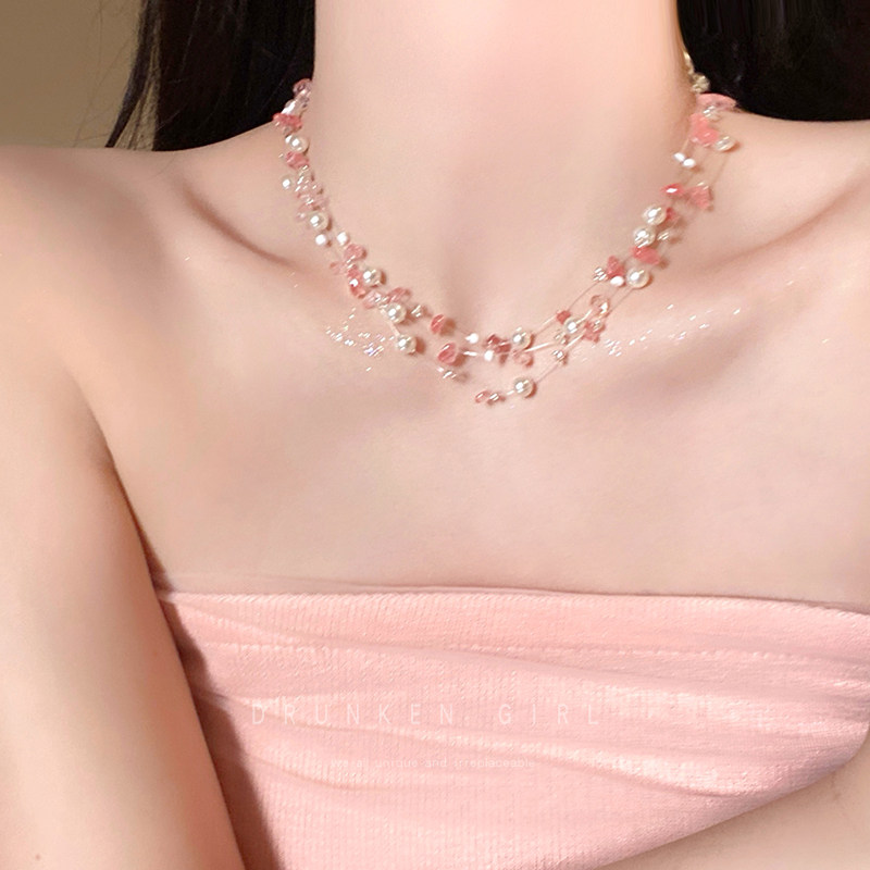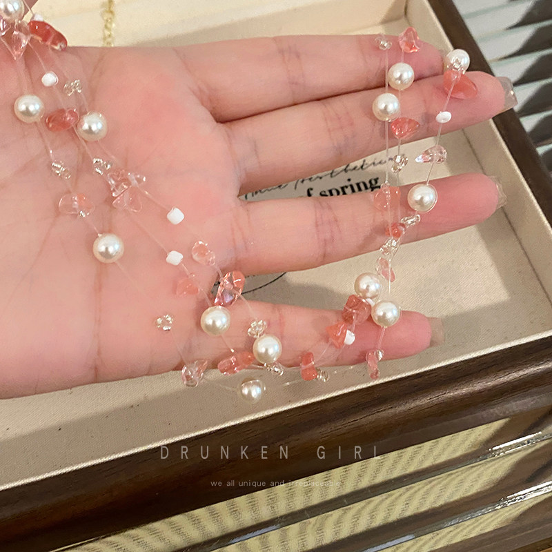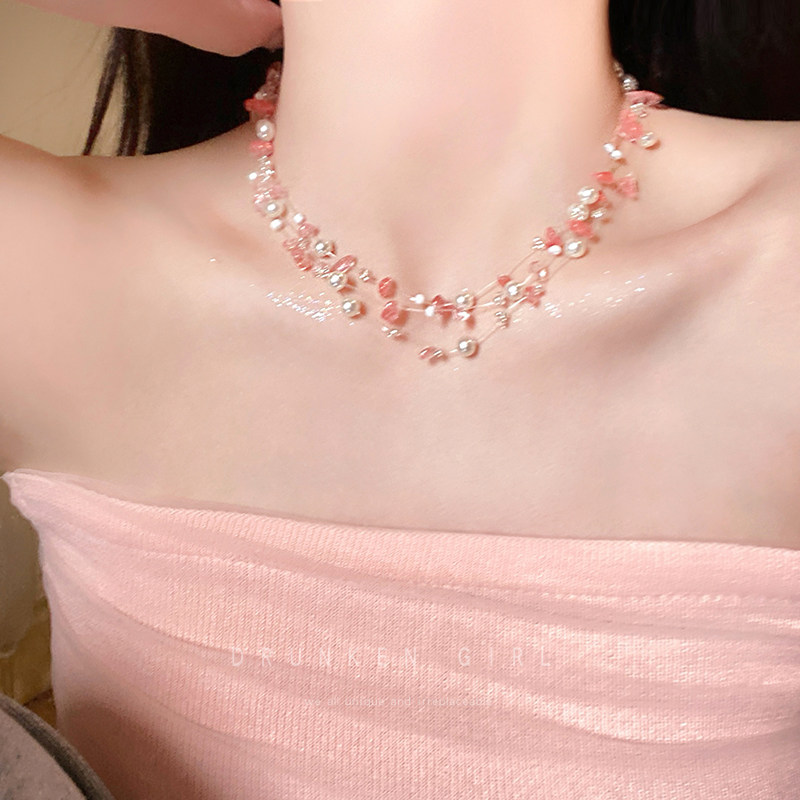 粉色珍珠項鍊女款多巴胺配禮服頸鏈配飾誇張度假風海島海邊鎖骨鍊