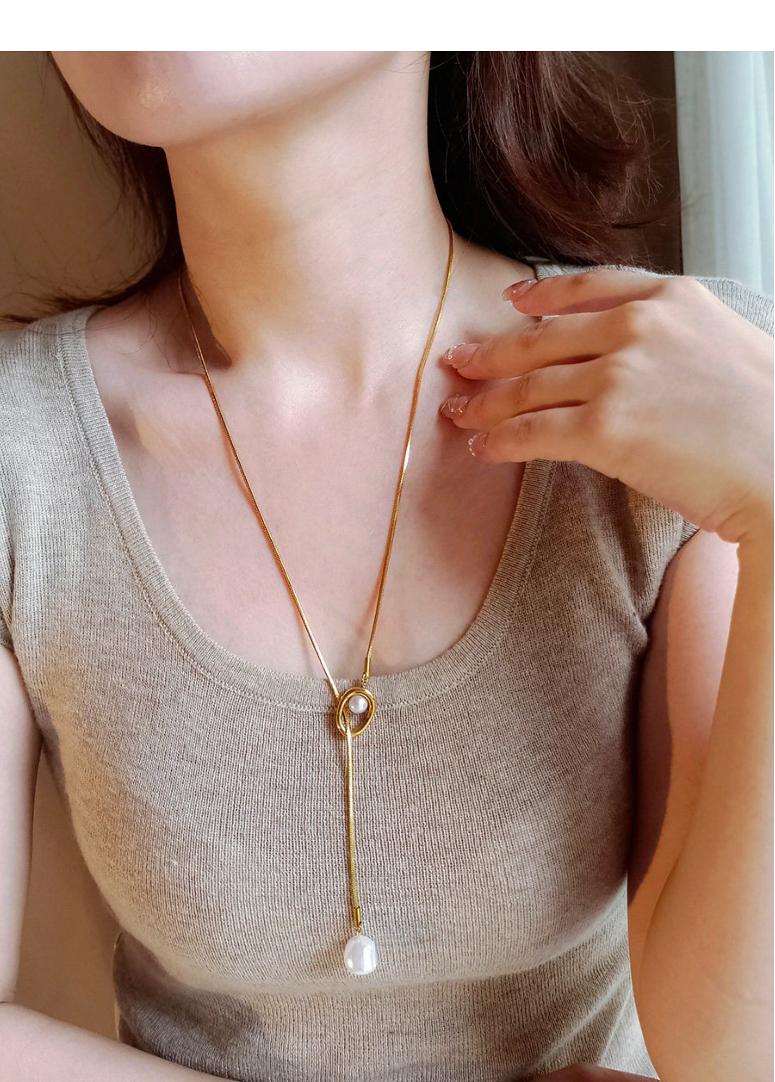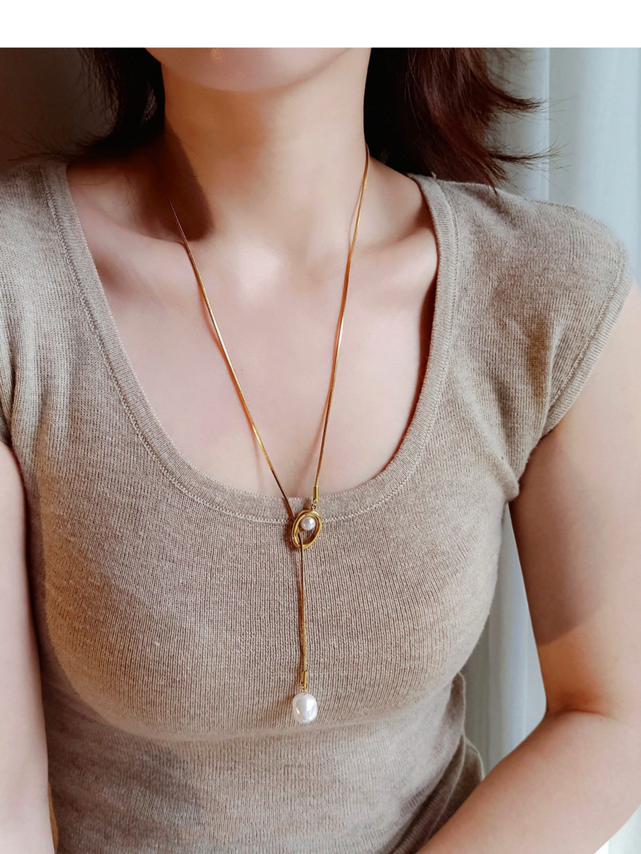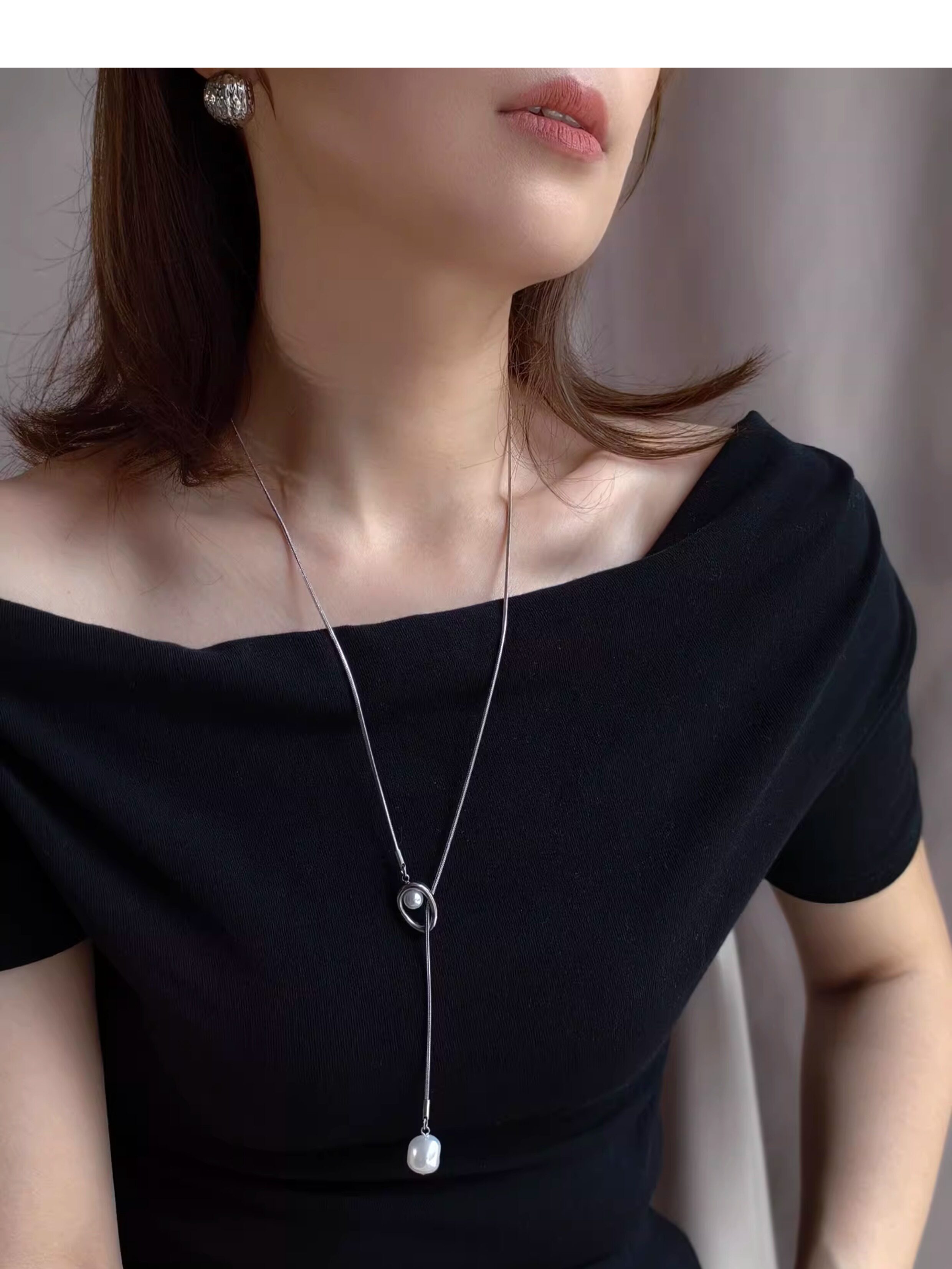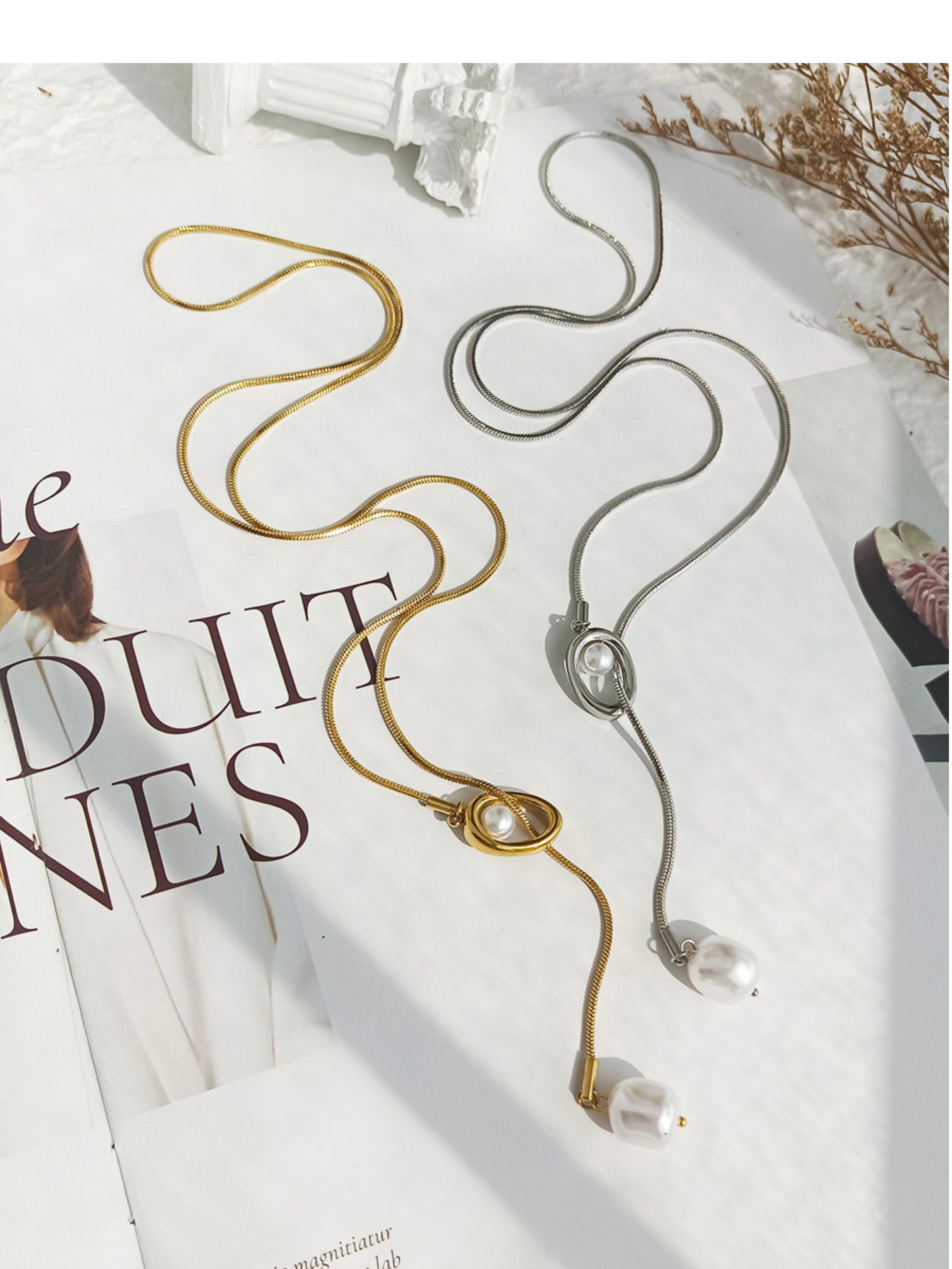 簡約仿珍珠項鍊大氣高檔高級感蛇骨鏈金色抽拉氣質長款輕奢毛衣鏈