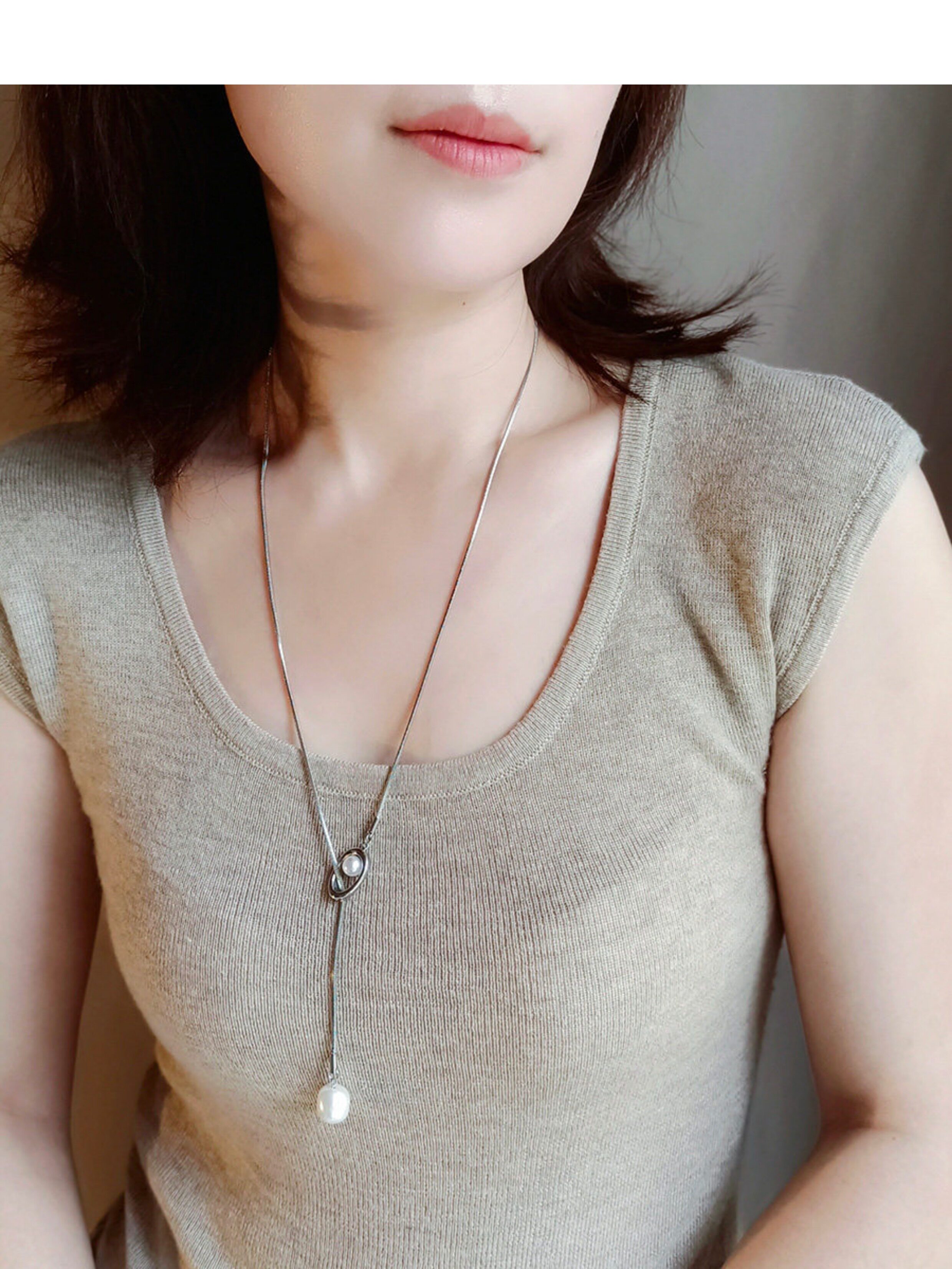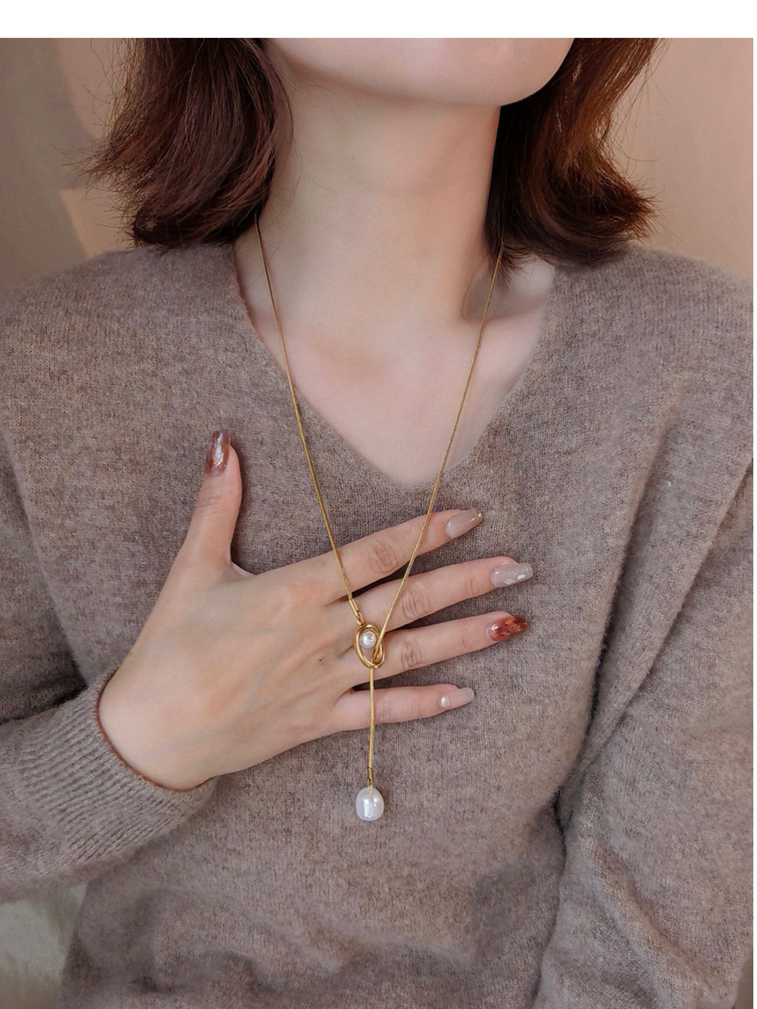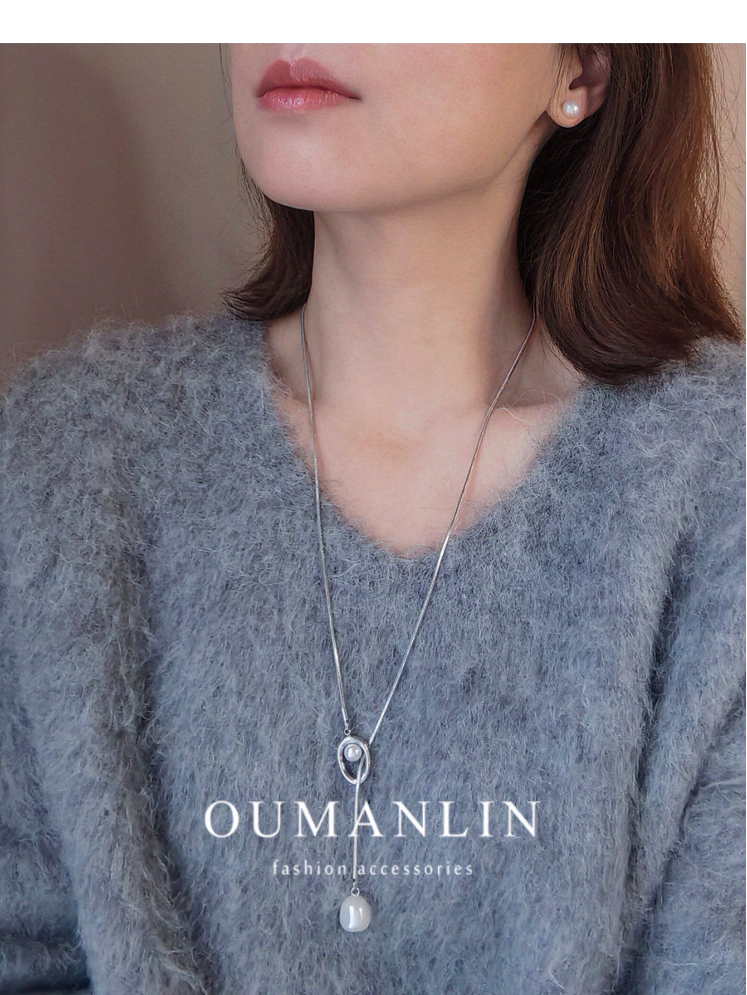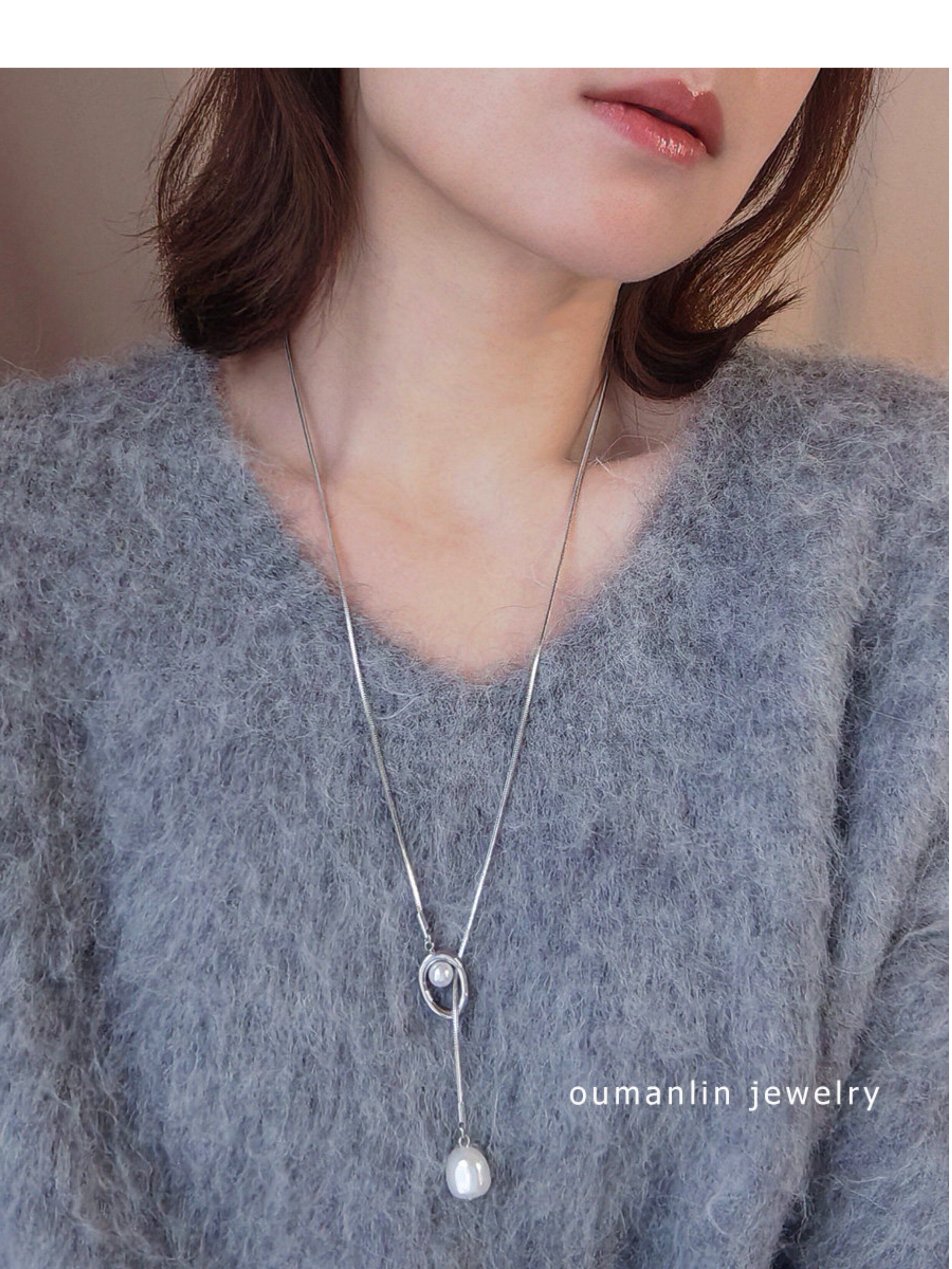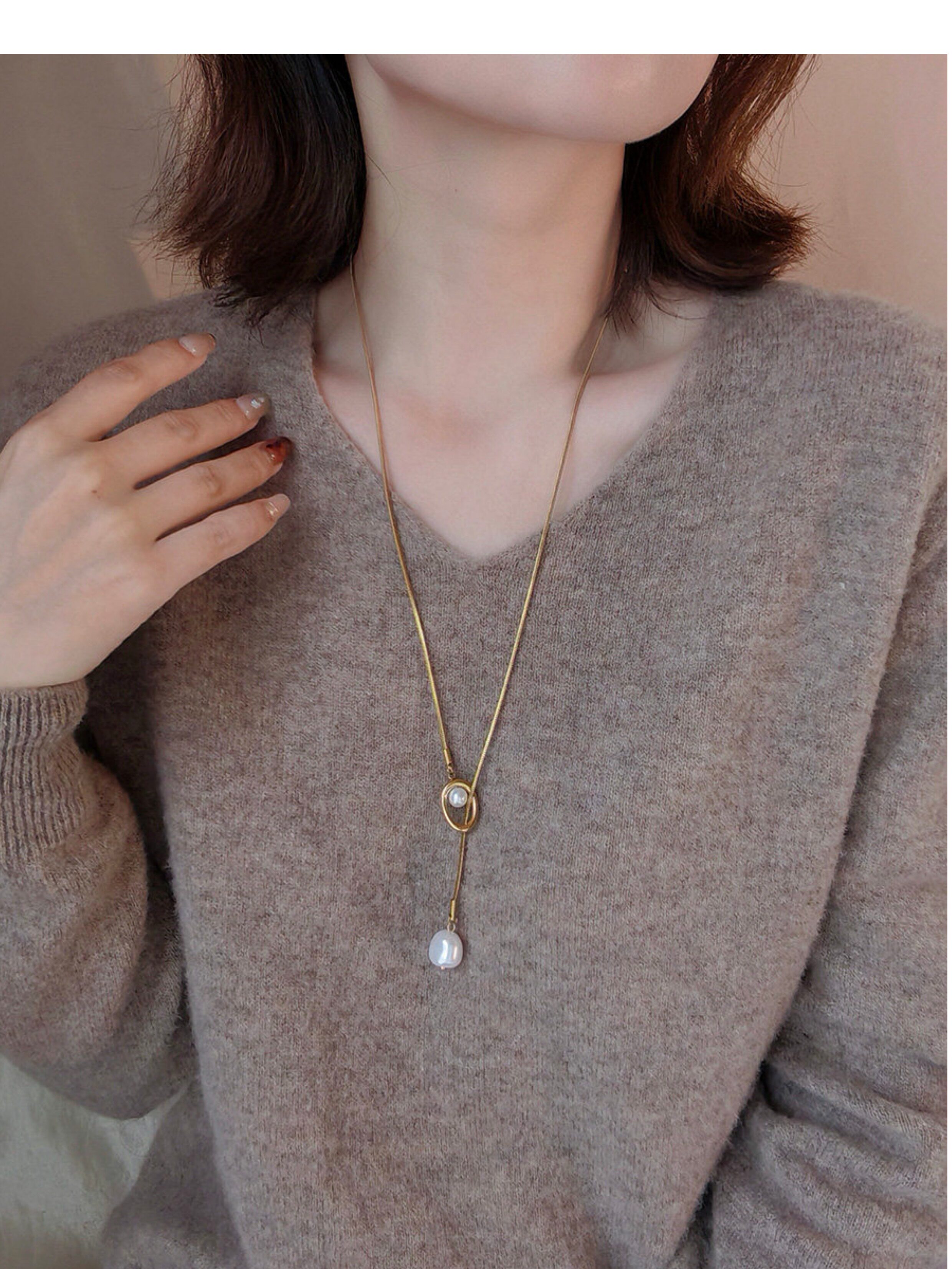 簡約仿珍珠項鍊大氣高檔高級感蛇骨鏈金色抽拉氣質長款輕奢毛衣鏈