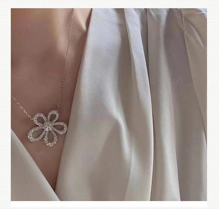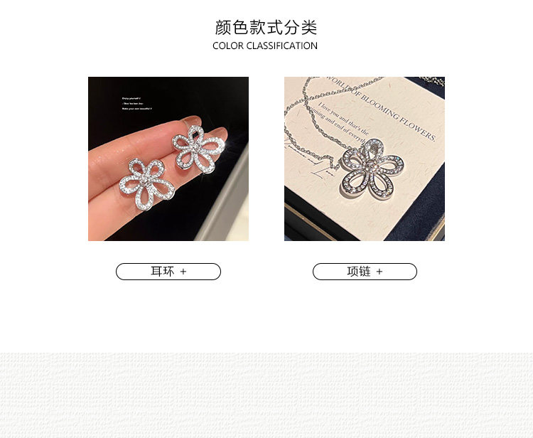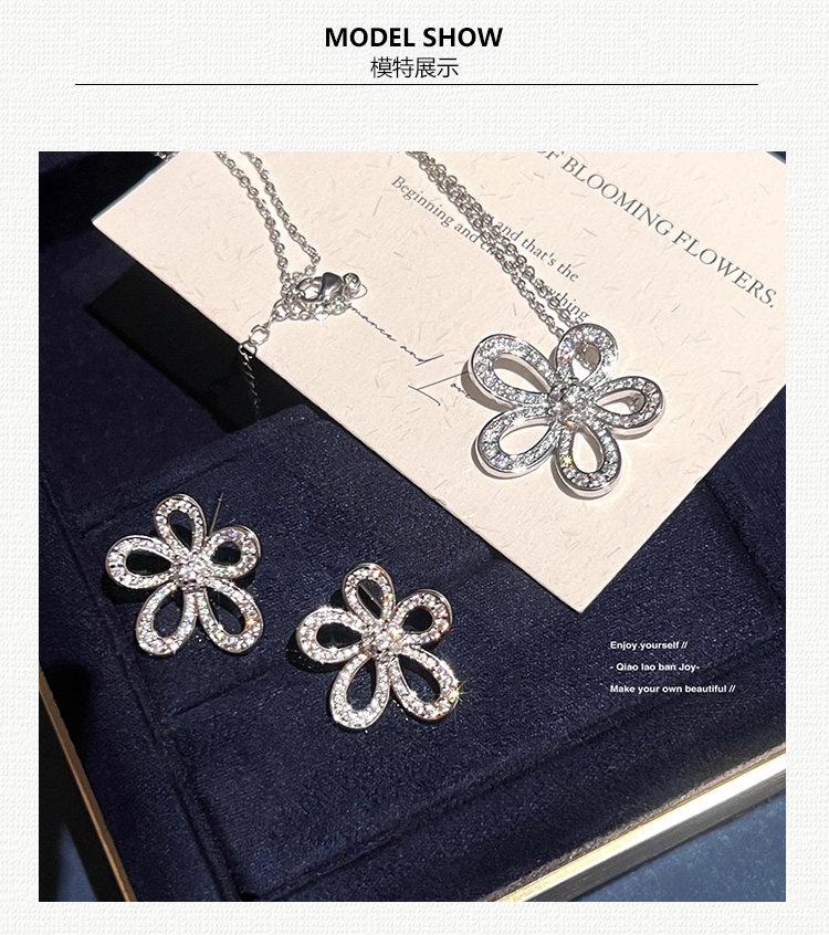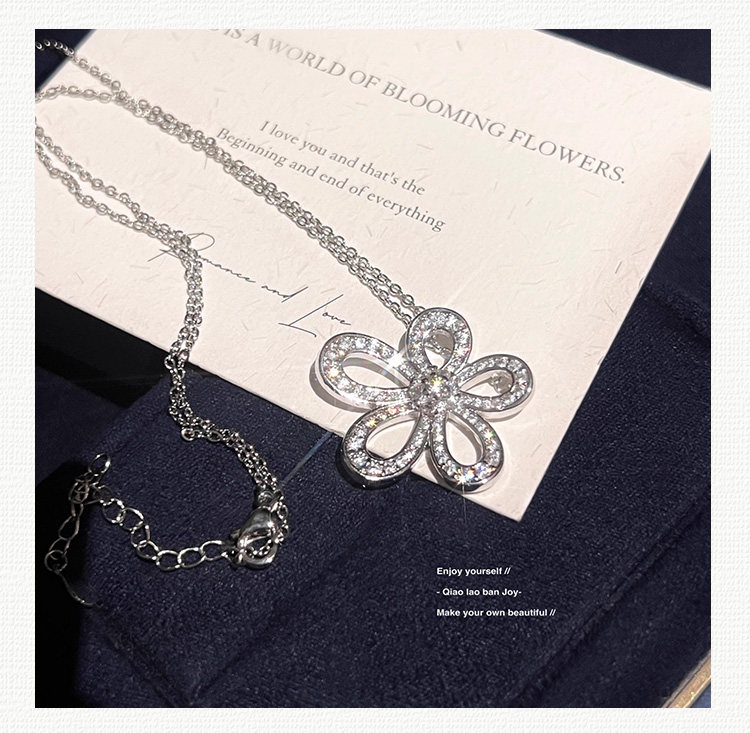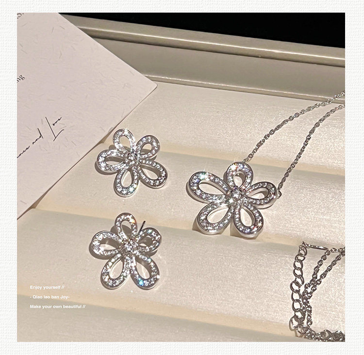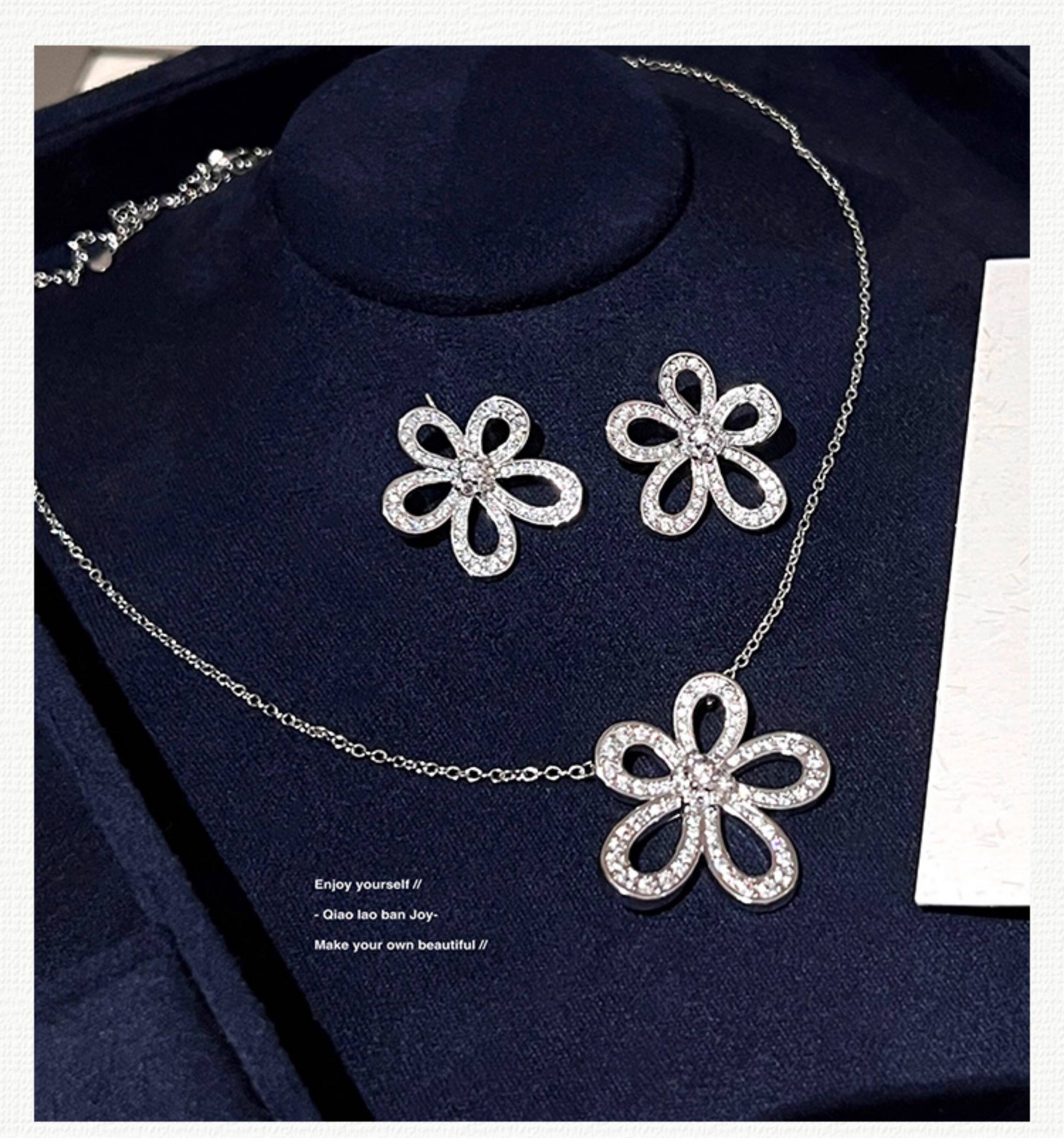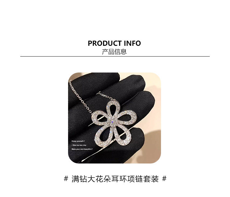 【喬老板Joy】滿鑽大花朵項鍊銀色花瓣耳環鎖骨套裝高級輕奢閃潮