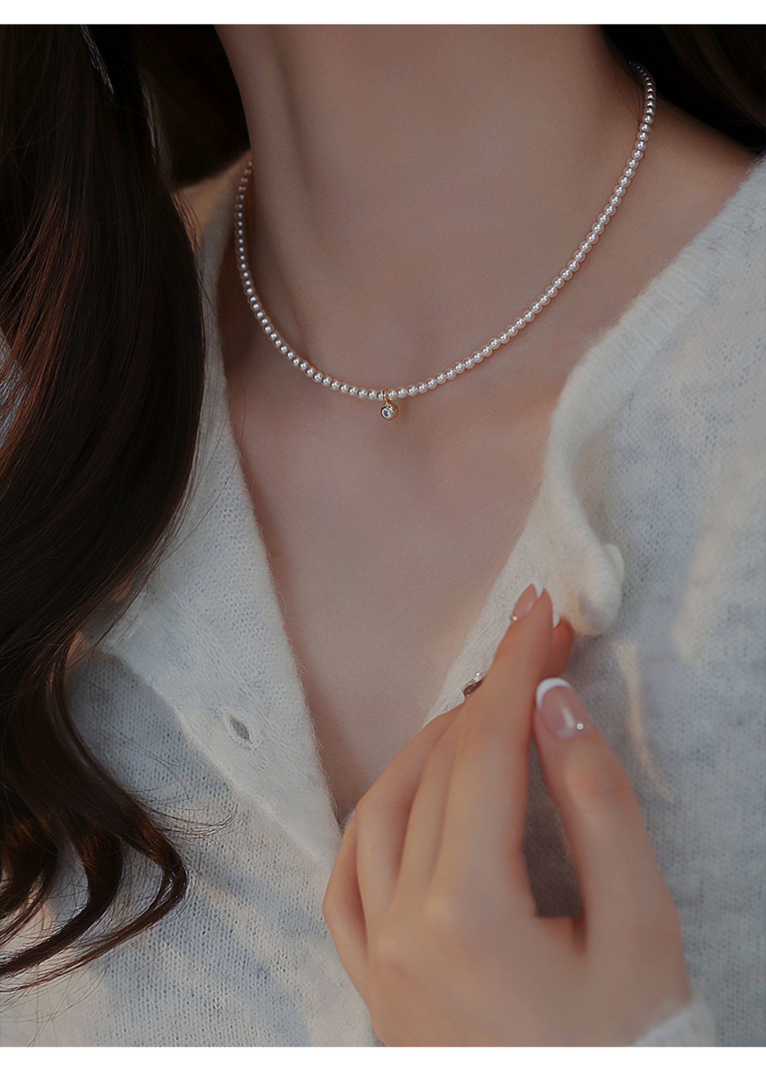 極細百搭小米仿珍珠毛衣項鍊女款2026新款鎖骨鍊高級感輕奢頸鏈配