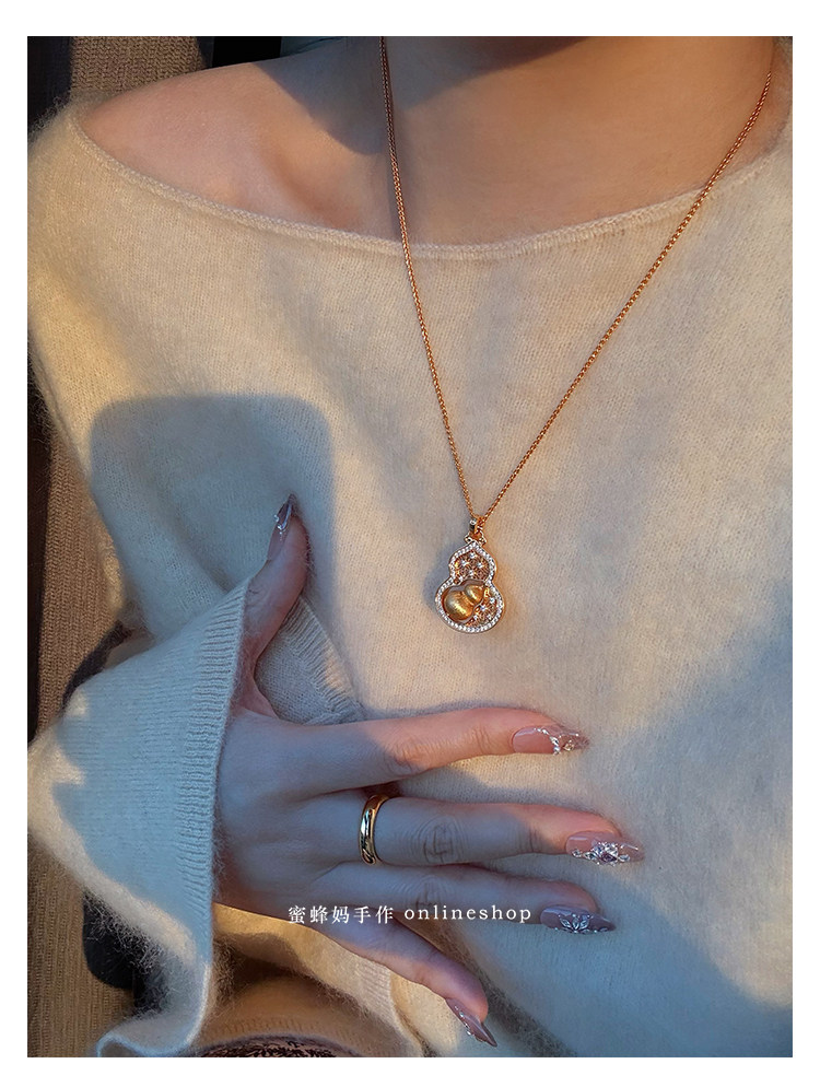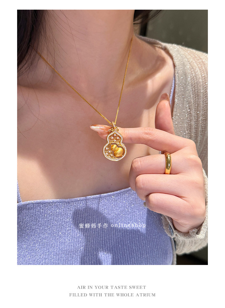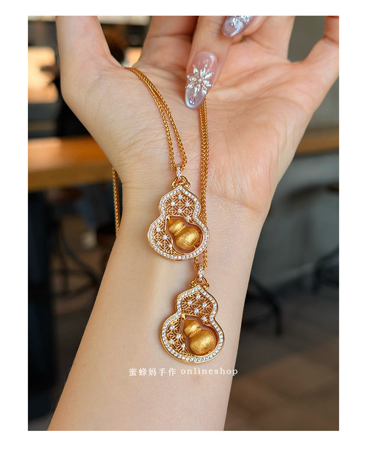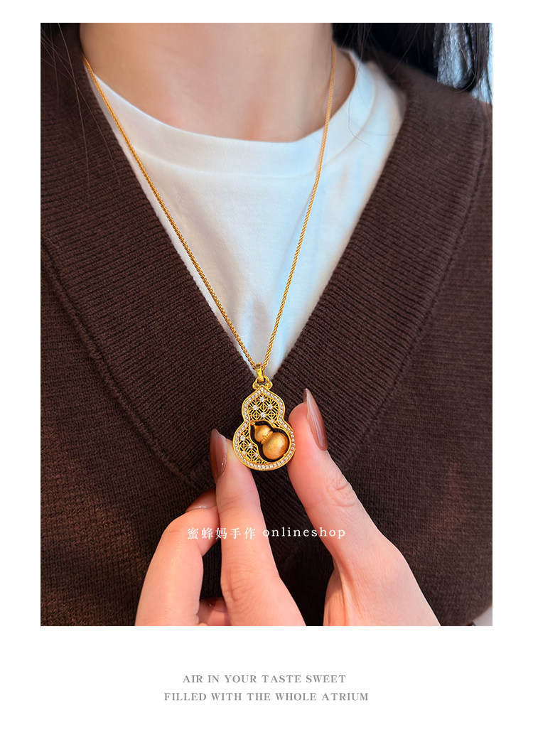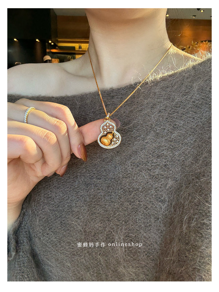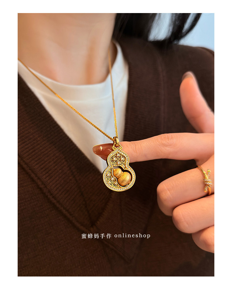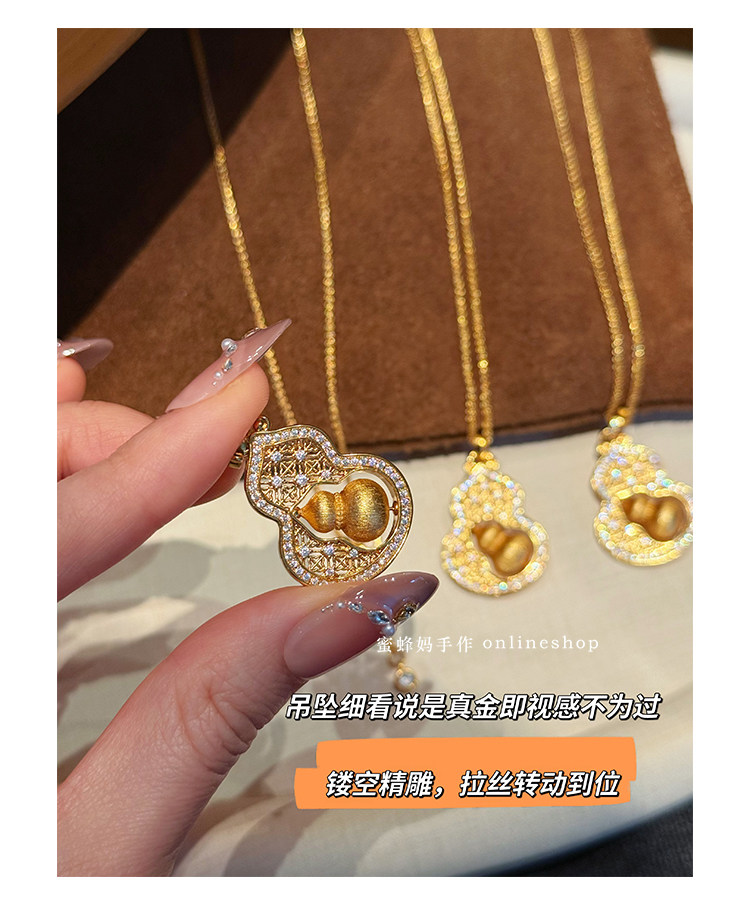 蜜蜂媽手作 轉動拉絲葫蘆鏤空吊墜項鍊女小衆高級氣質福祿毛衣鏈