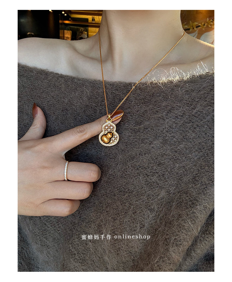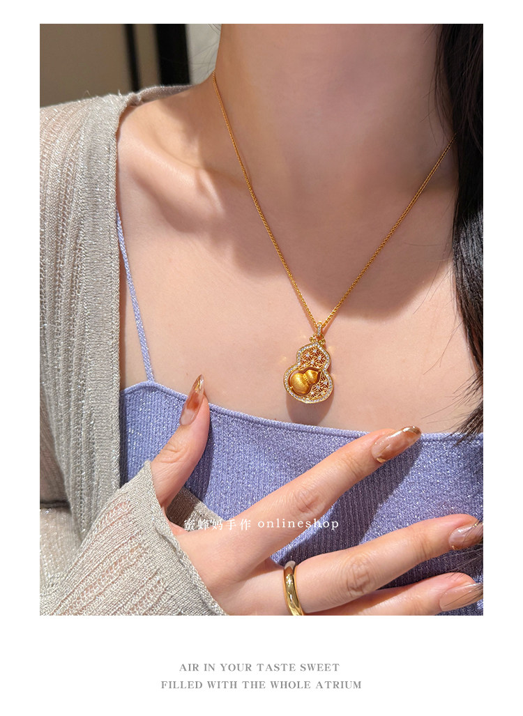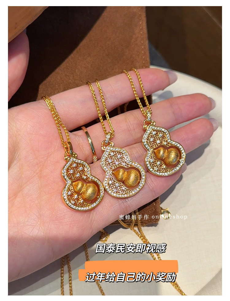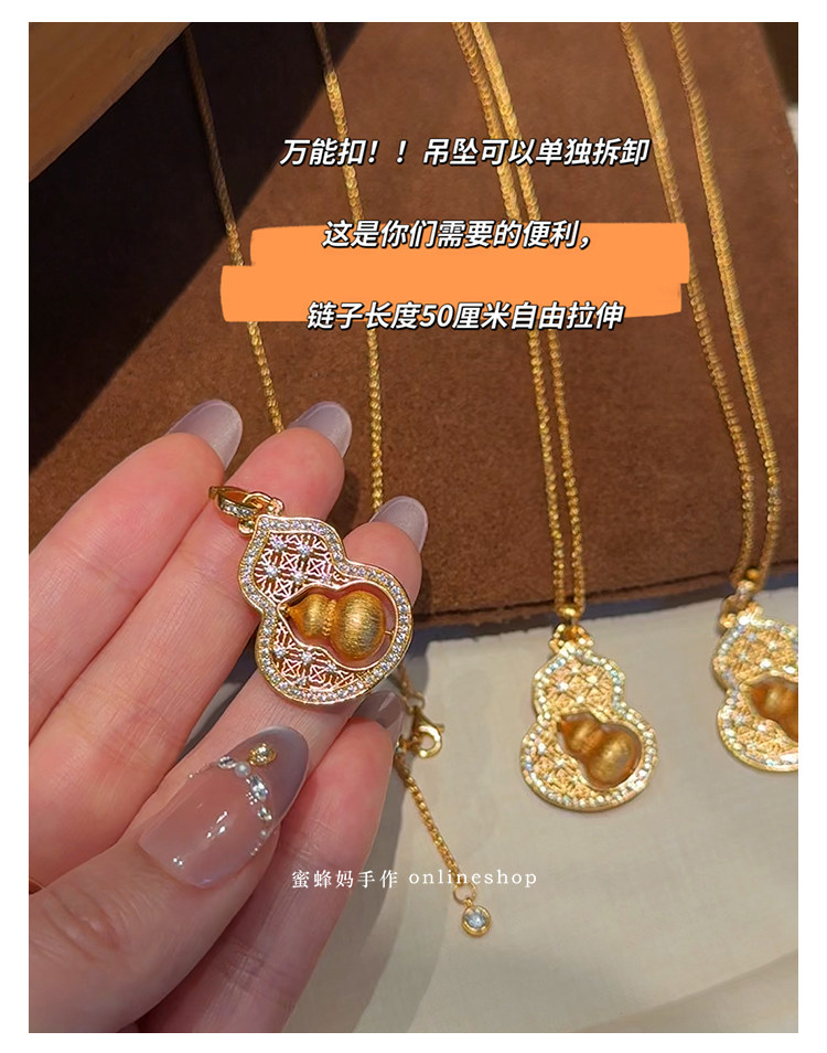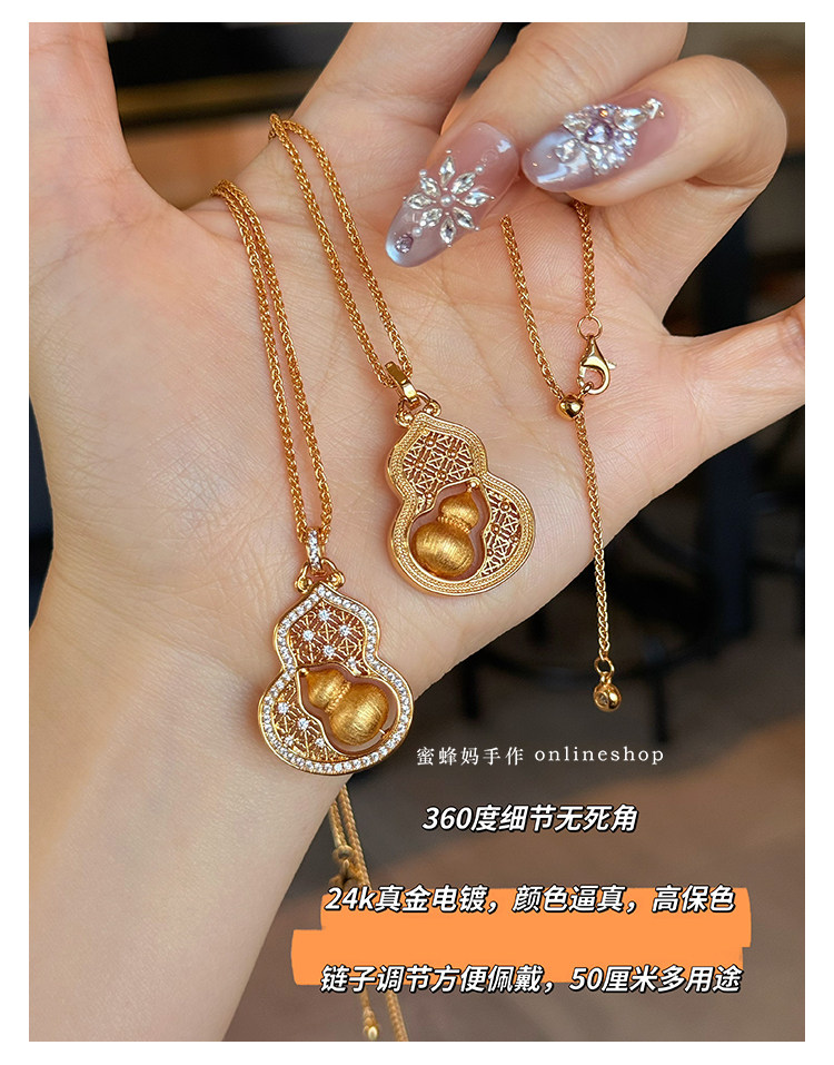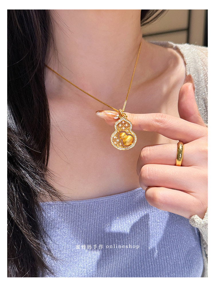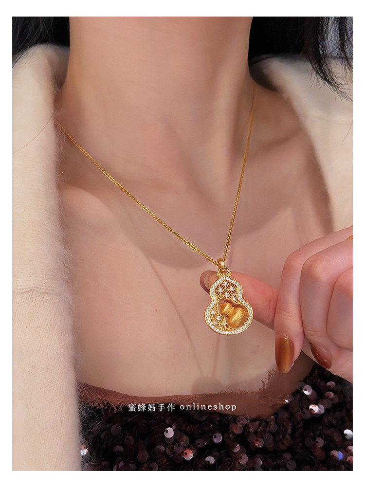 蜜蜂媽手作 轉動拉絲葫蘆鏤空吊墜項鍊女小衆高級氣質福祿毛衣鏈