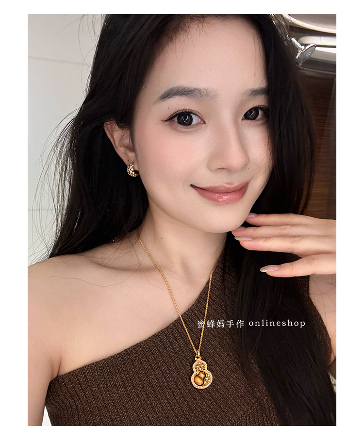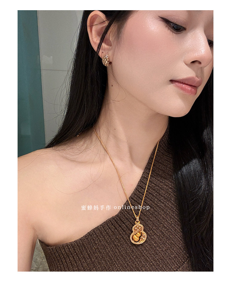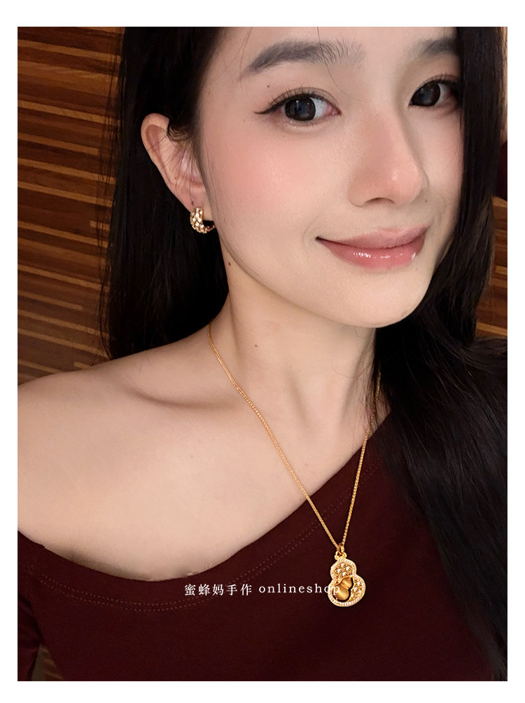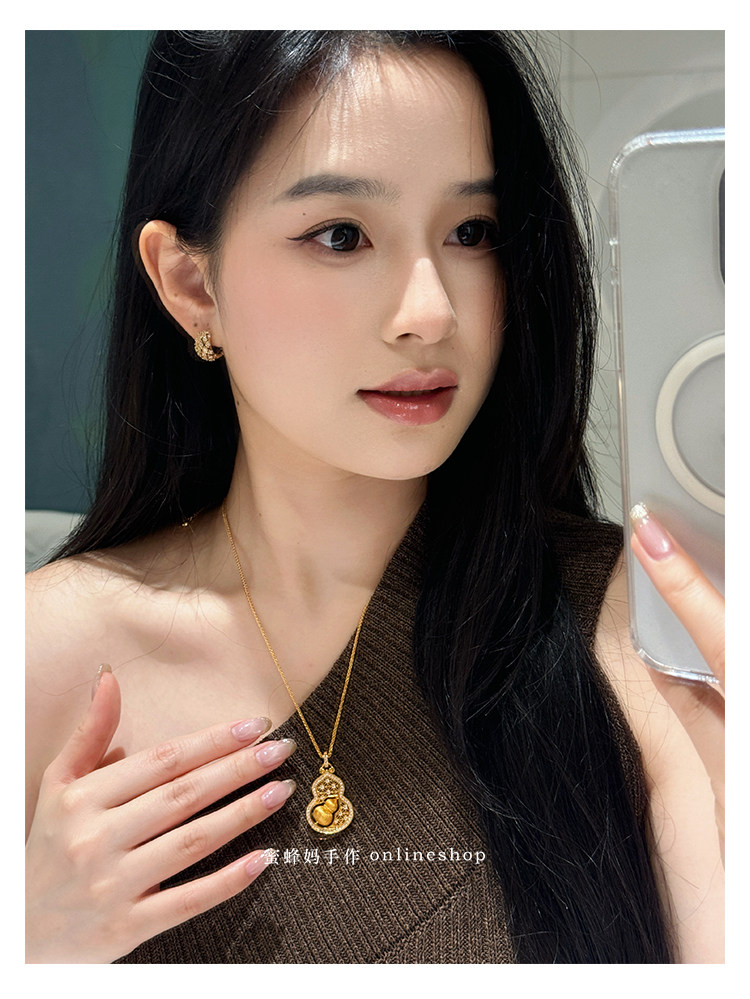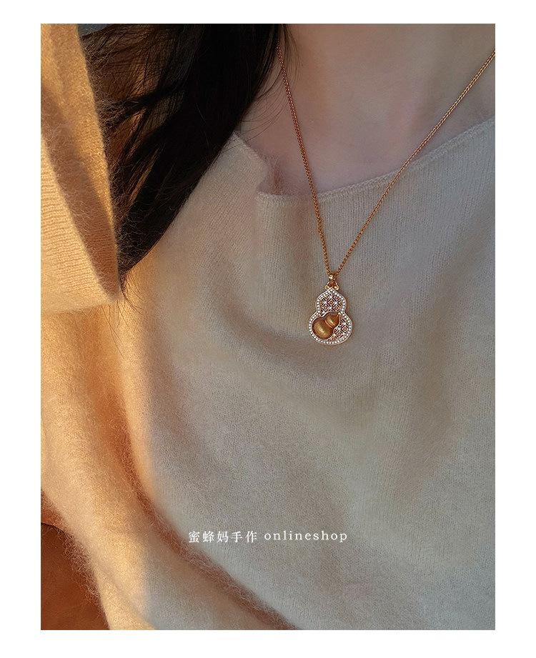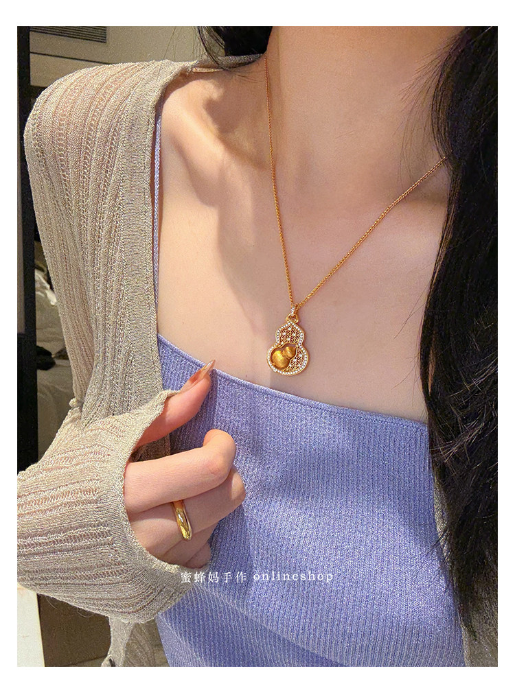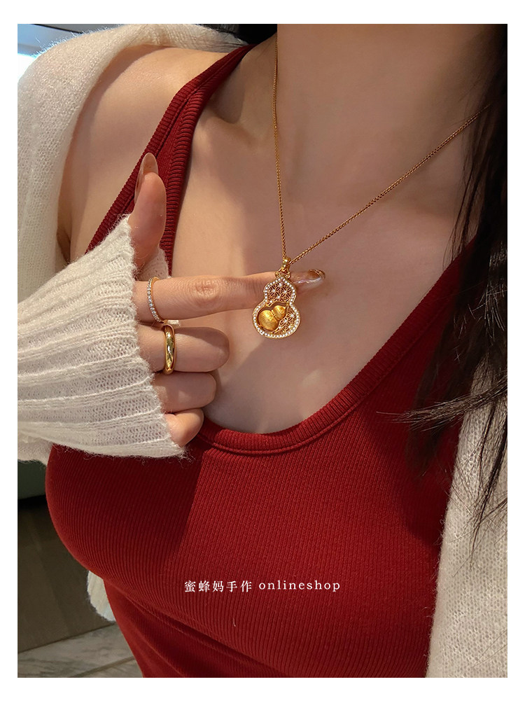 蜜蜂媽手作 轉動拉絲葫蘆鏤空吊墜項鍊女小衆高級氣質福祿毛衣鏈