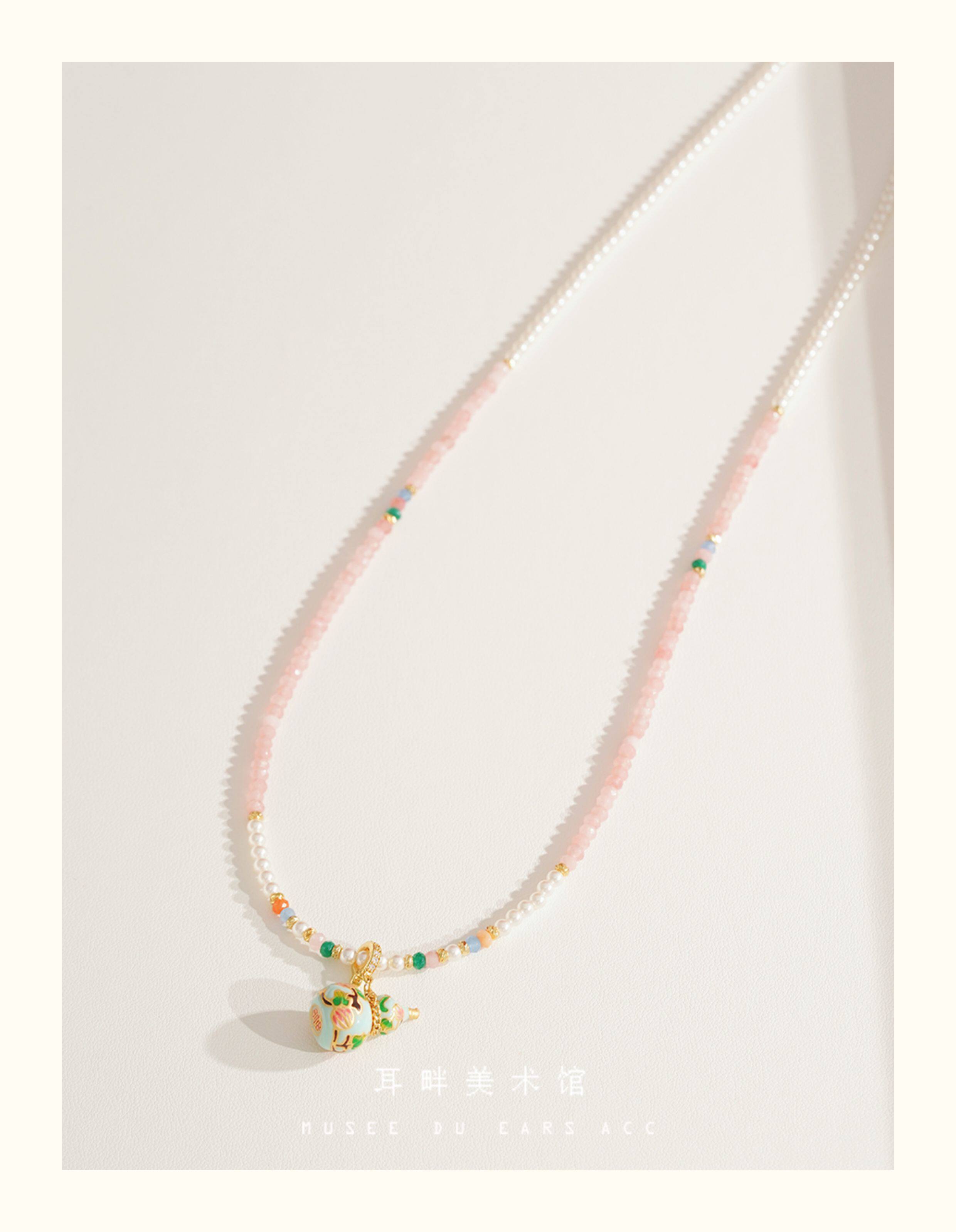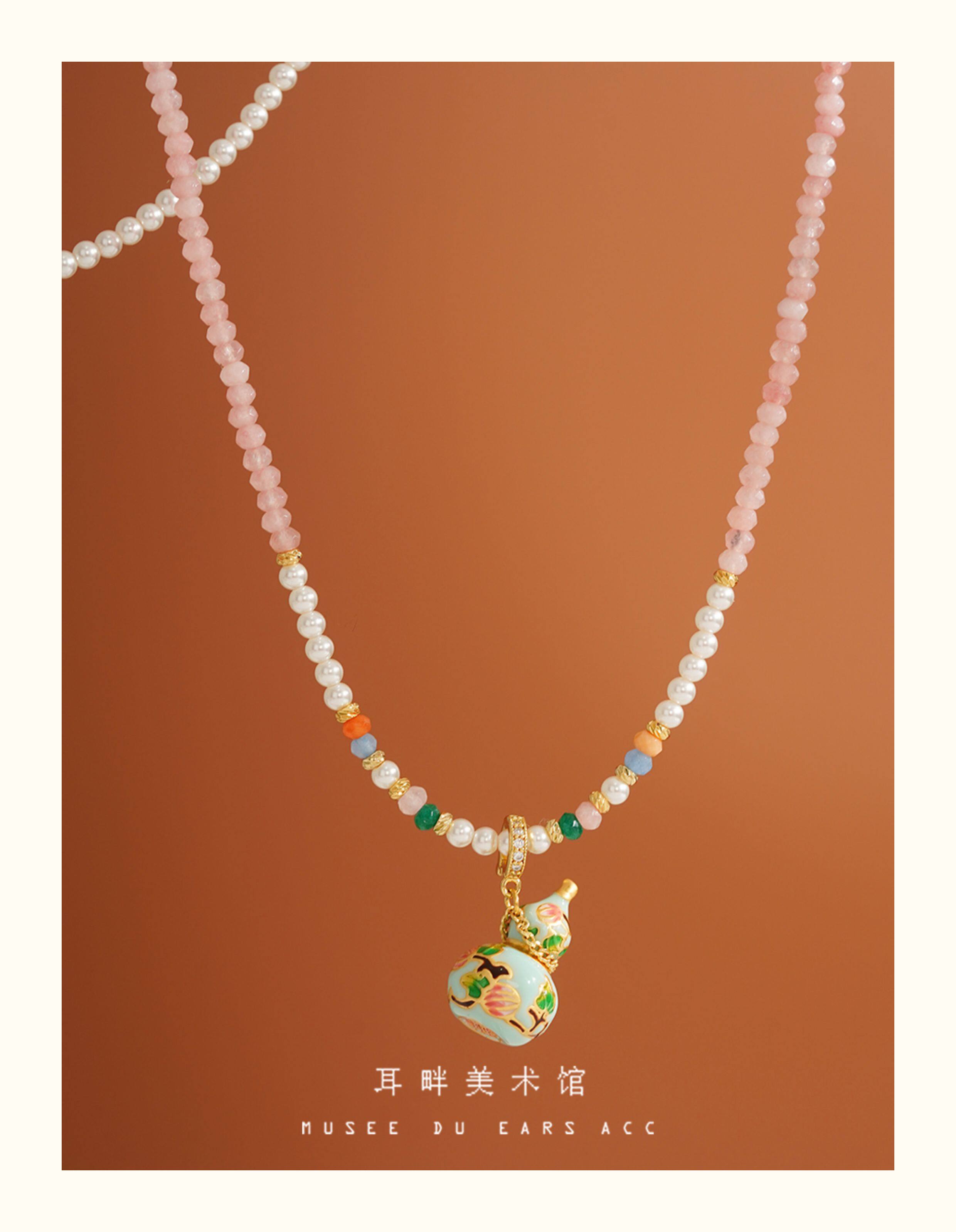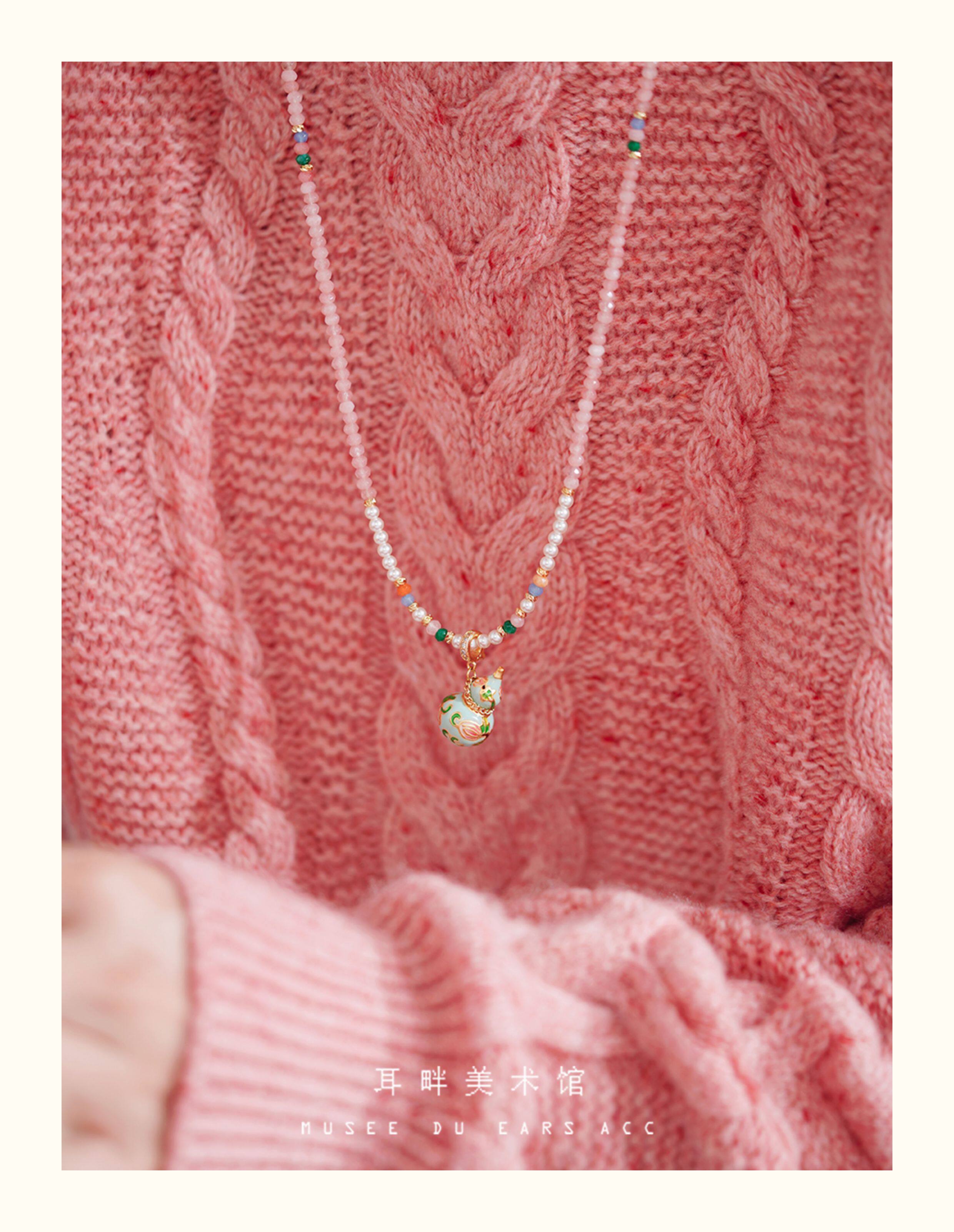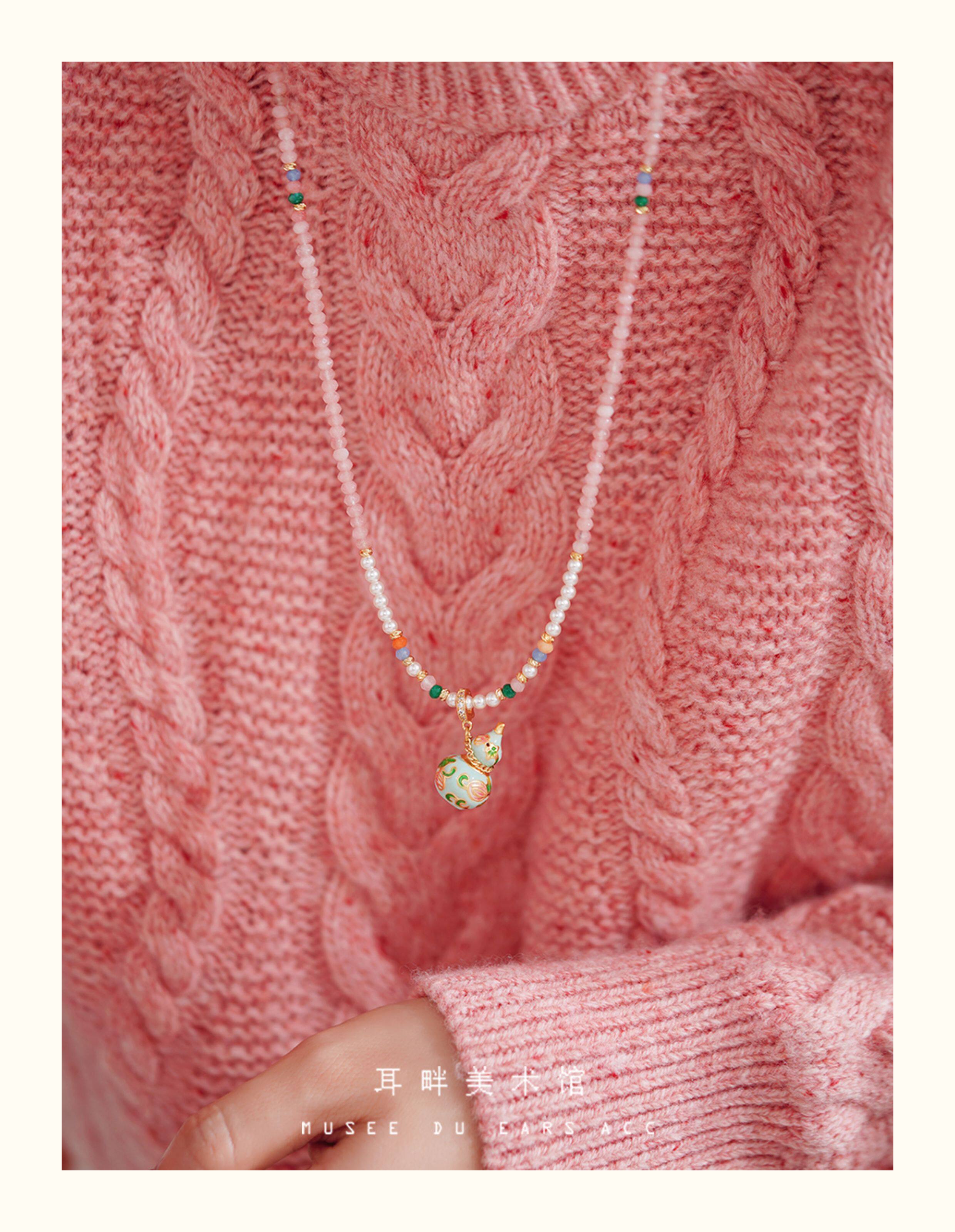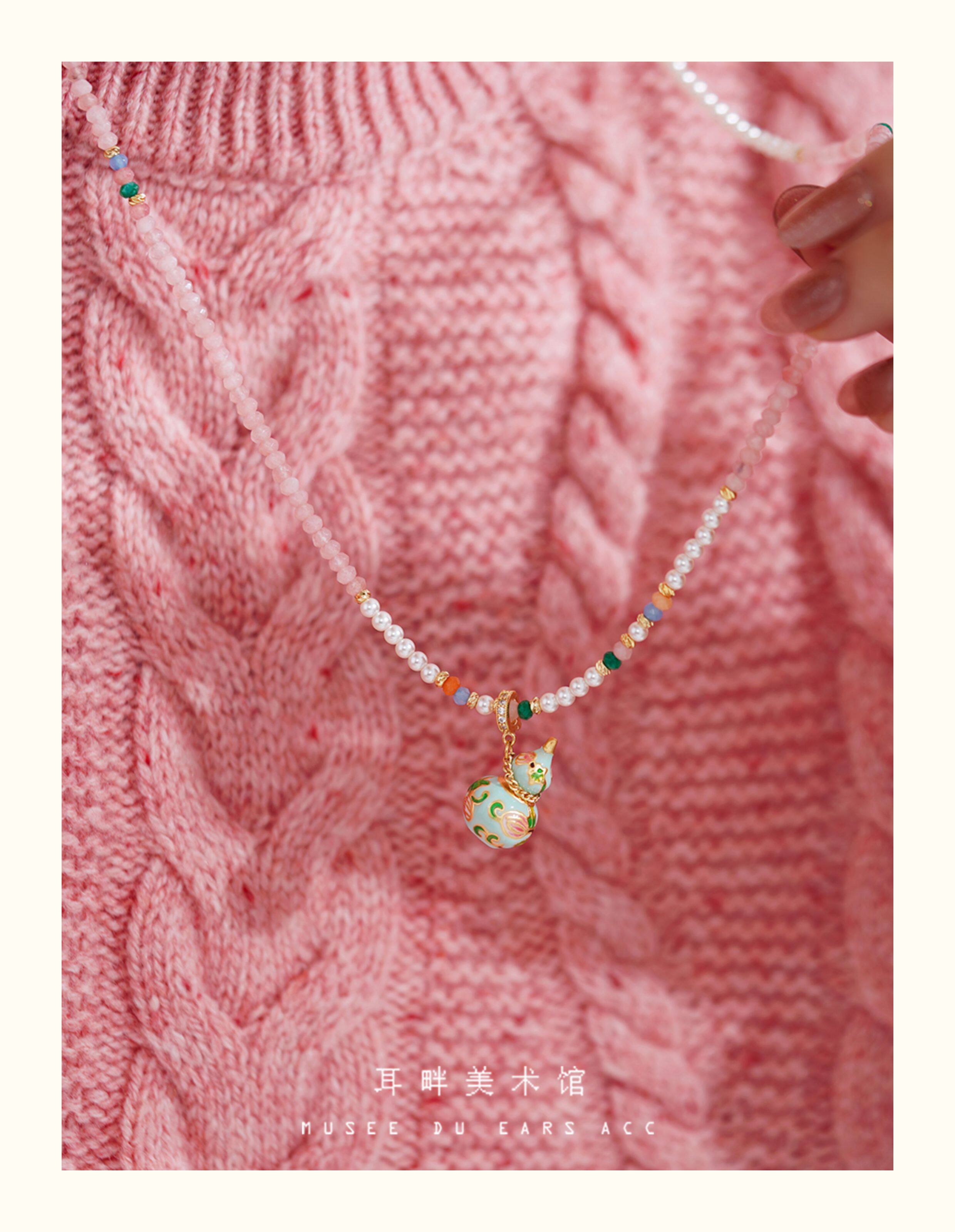 A琺瑯彩小葫蘆珍珠毛衣項鍊女長款鏈子新中式高級輕奢感配飾小衆