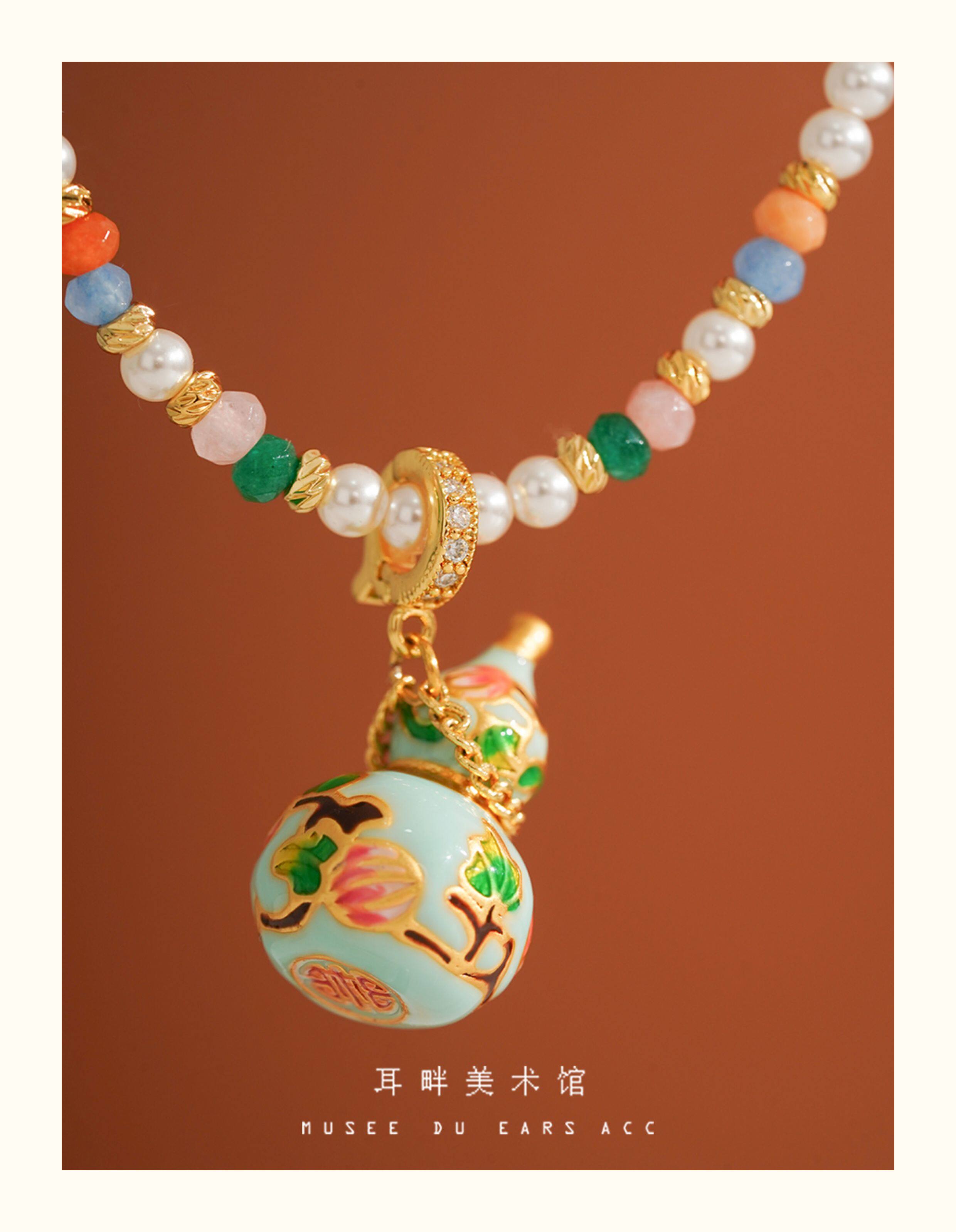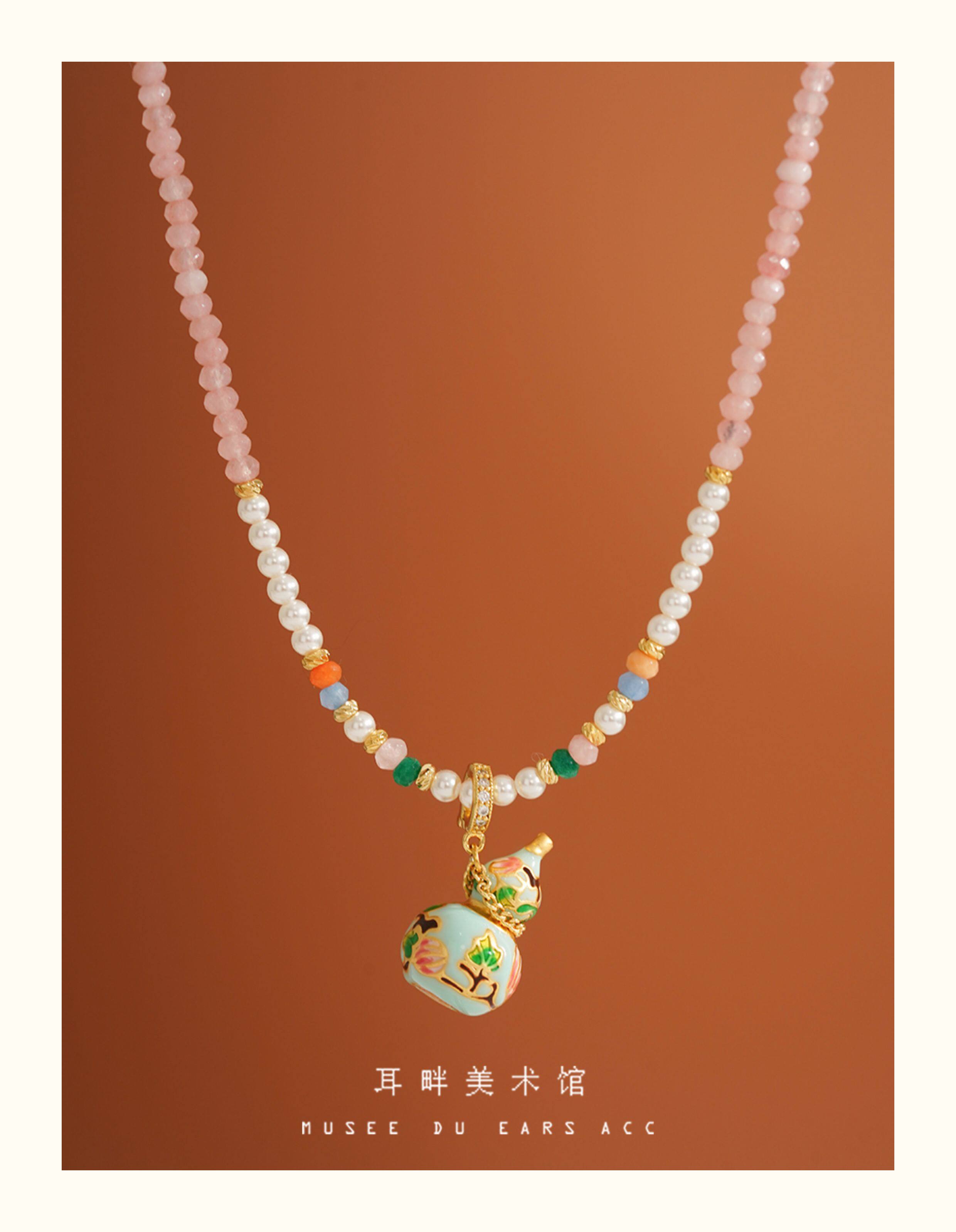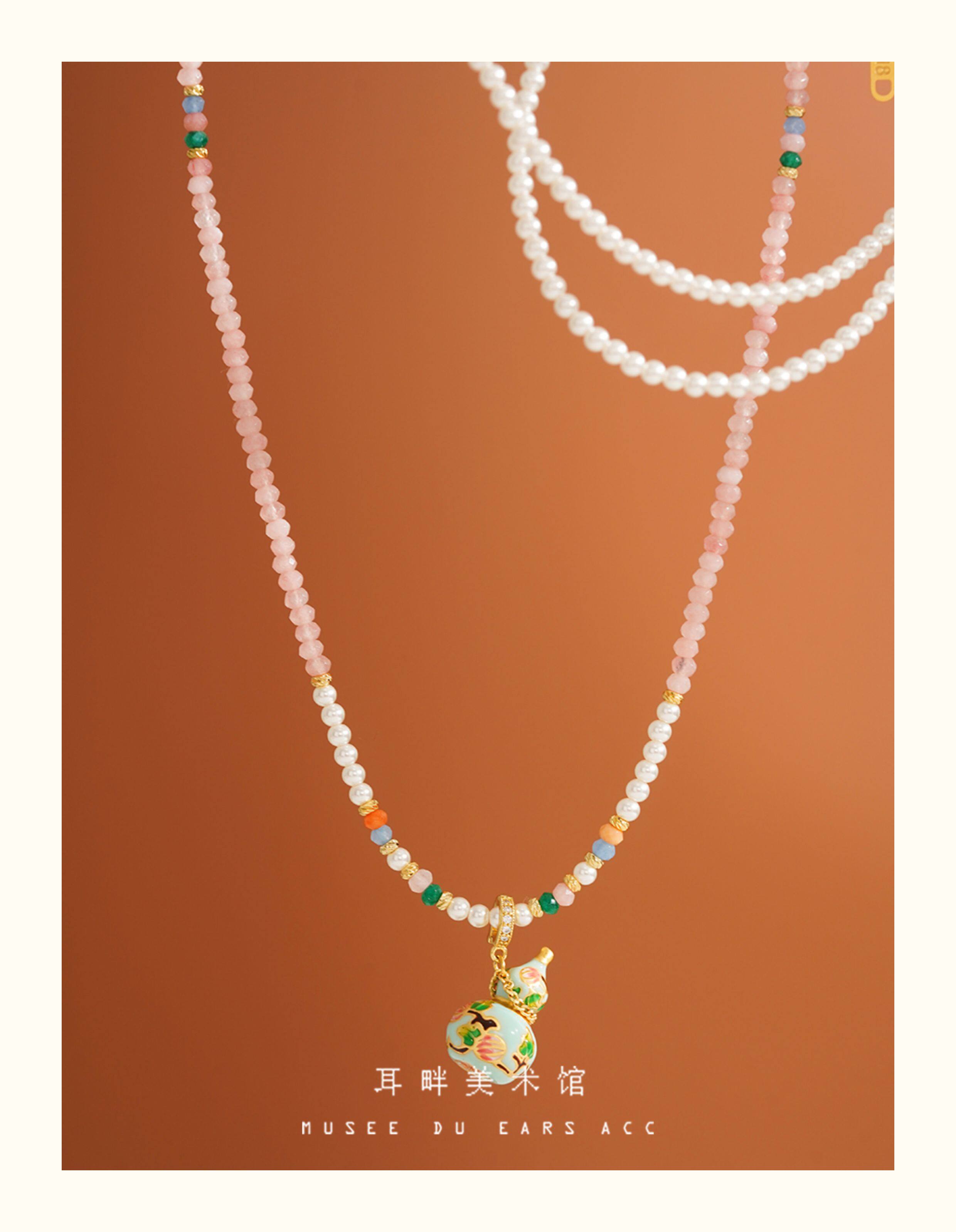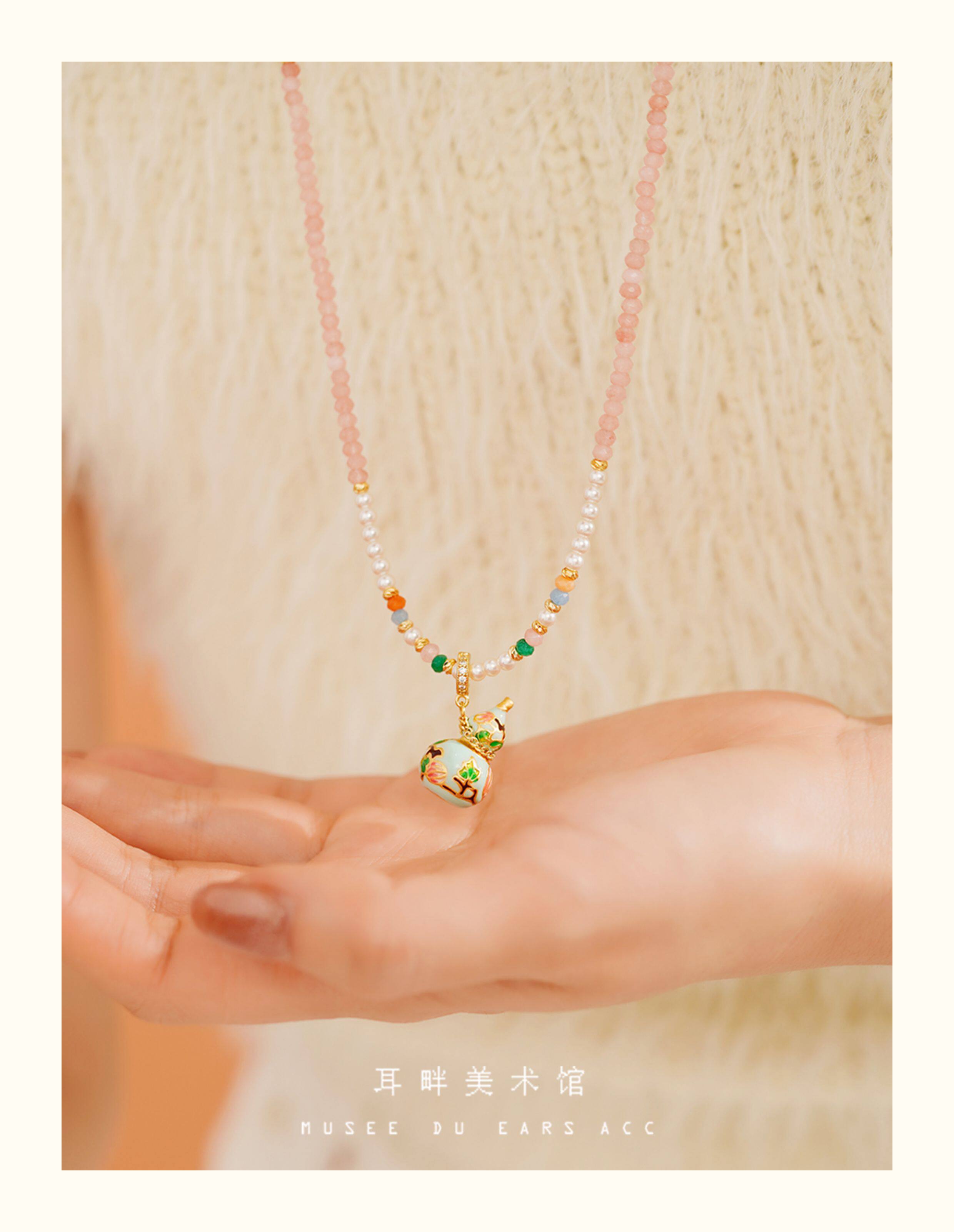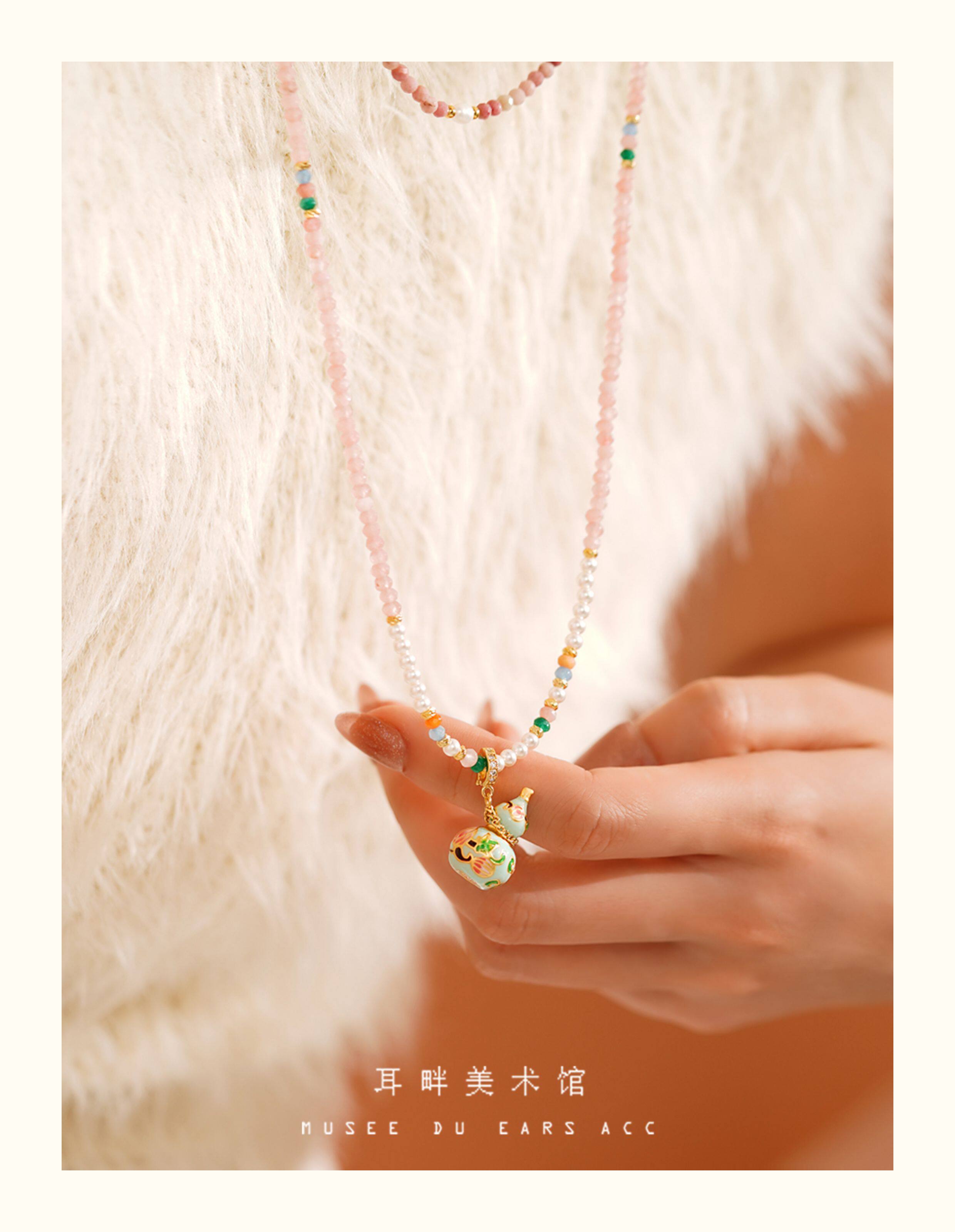 A琺瑯彩小葫蘆珍珠毛衣項鍊女長款鏈子新中式高級輕奢感配飾小衆