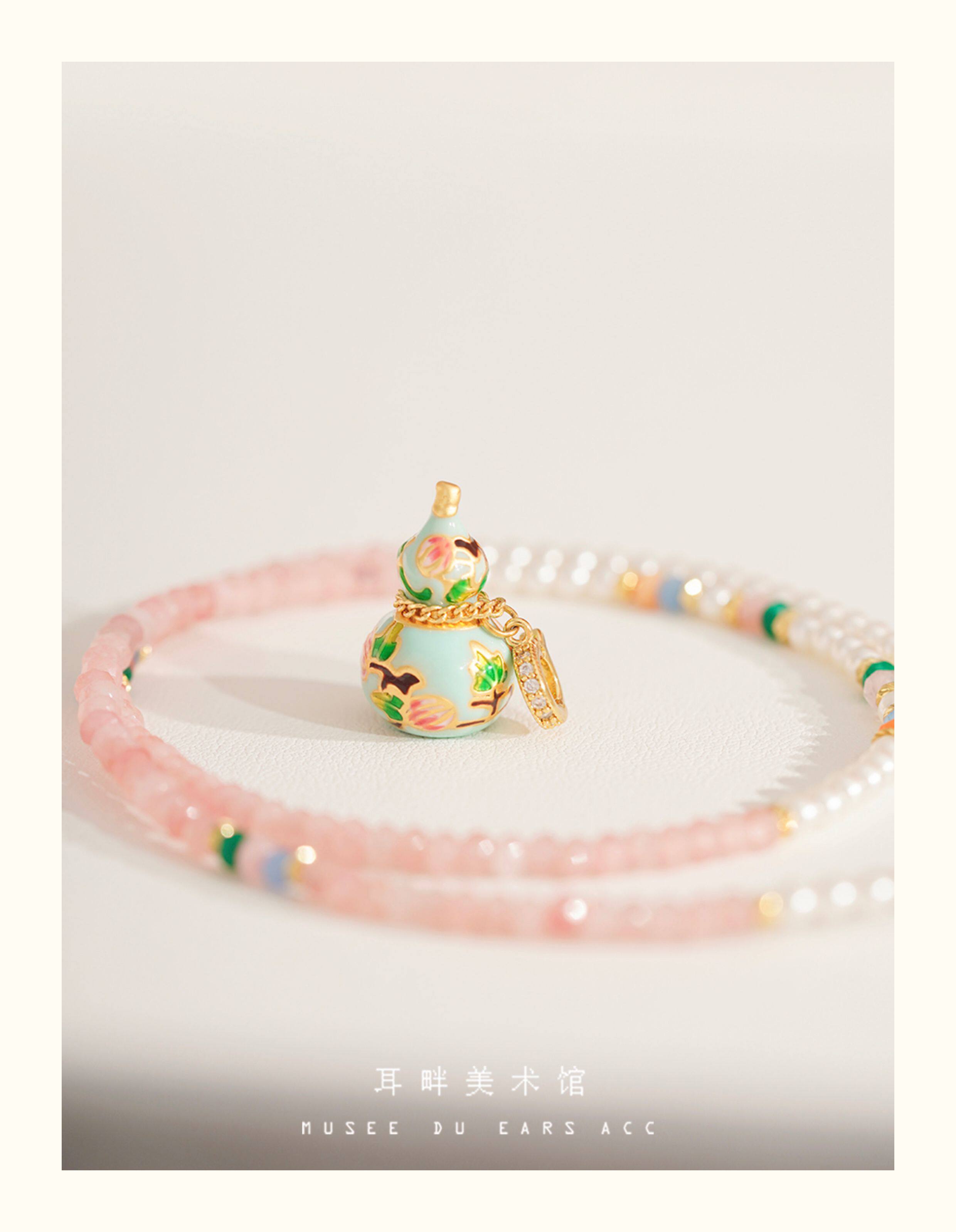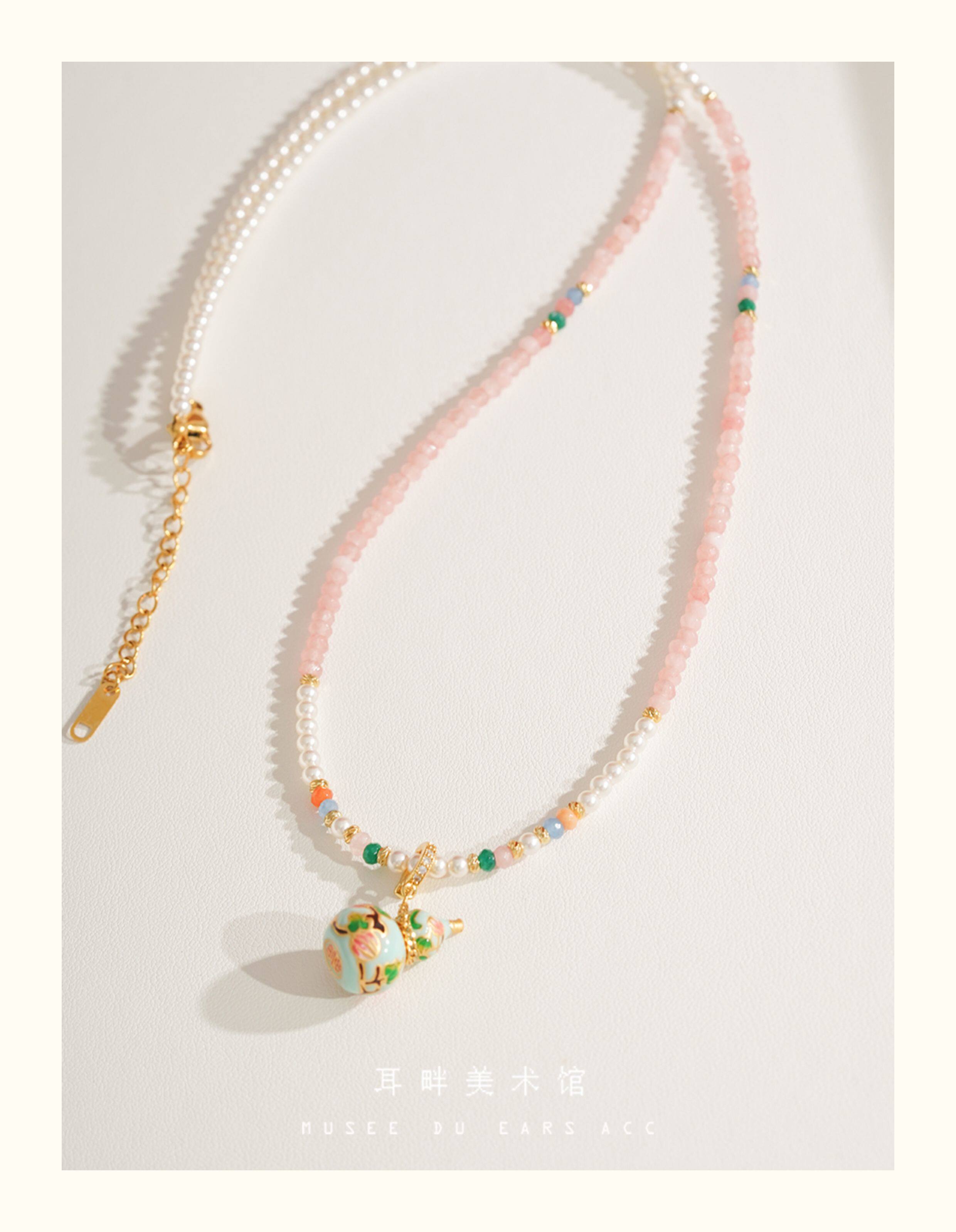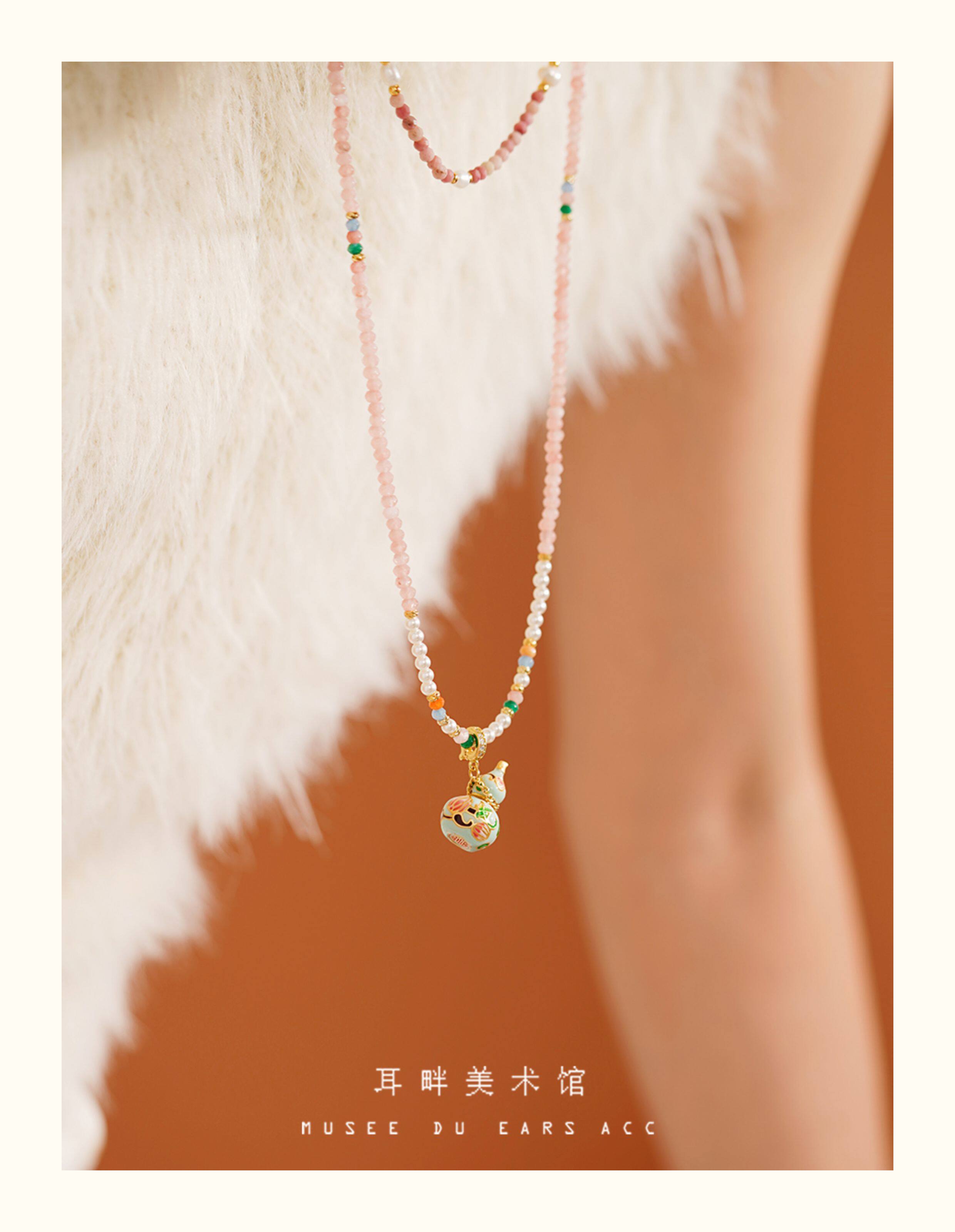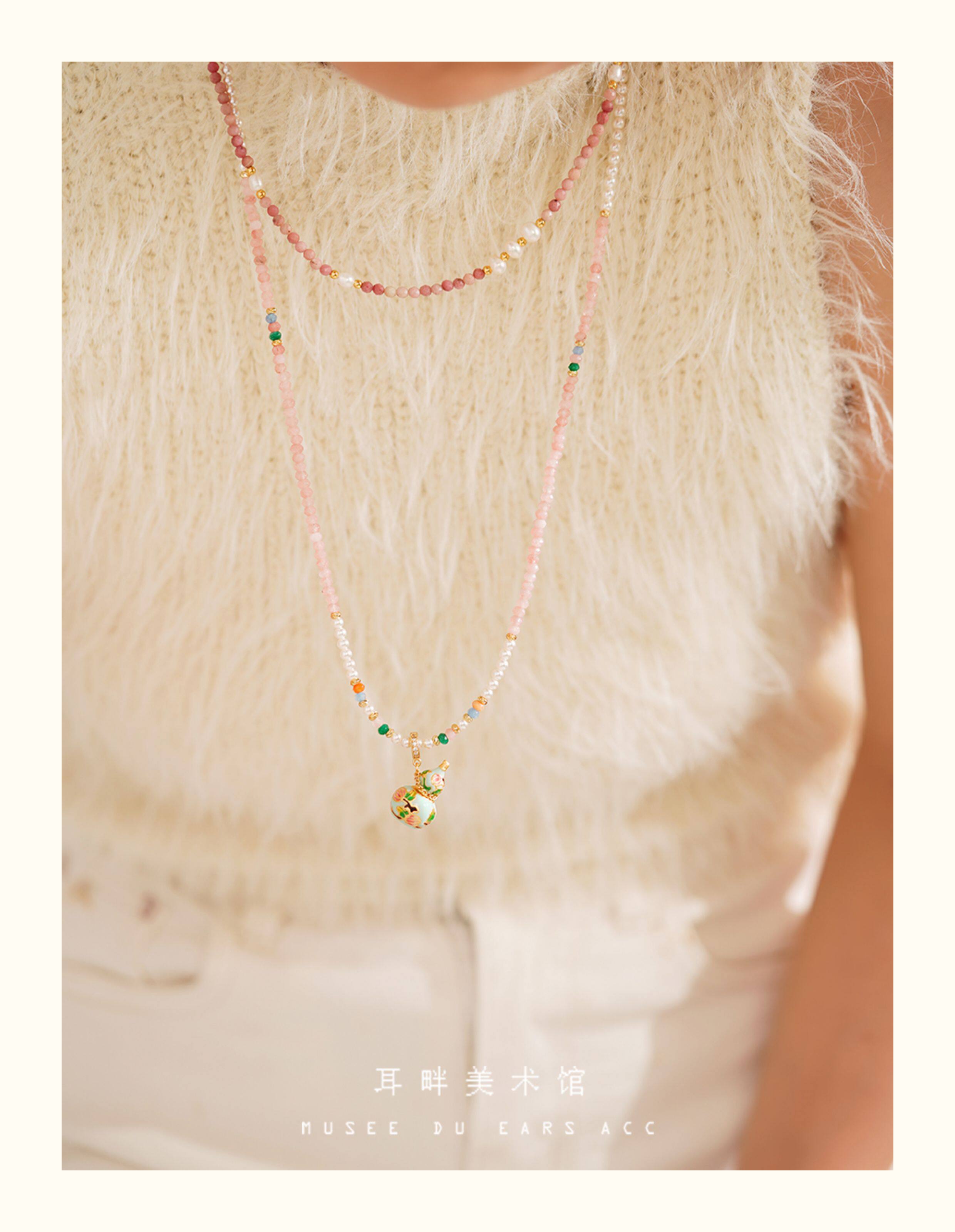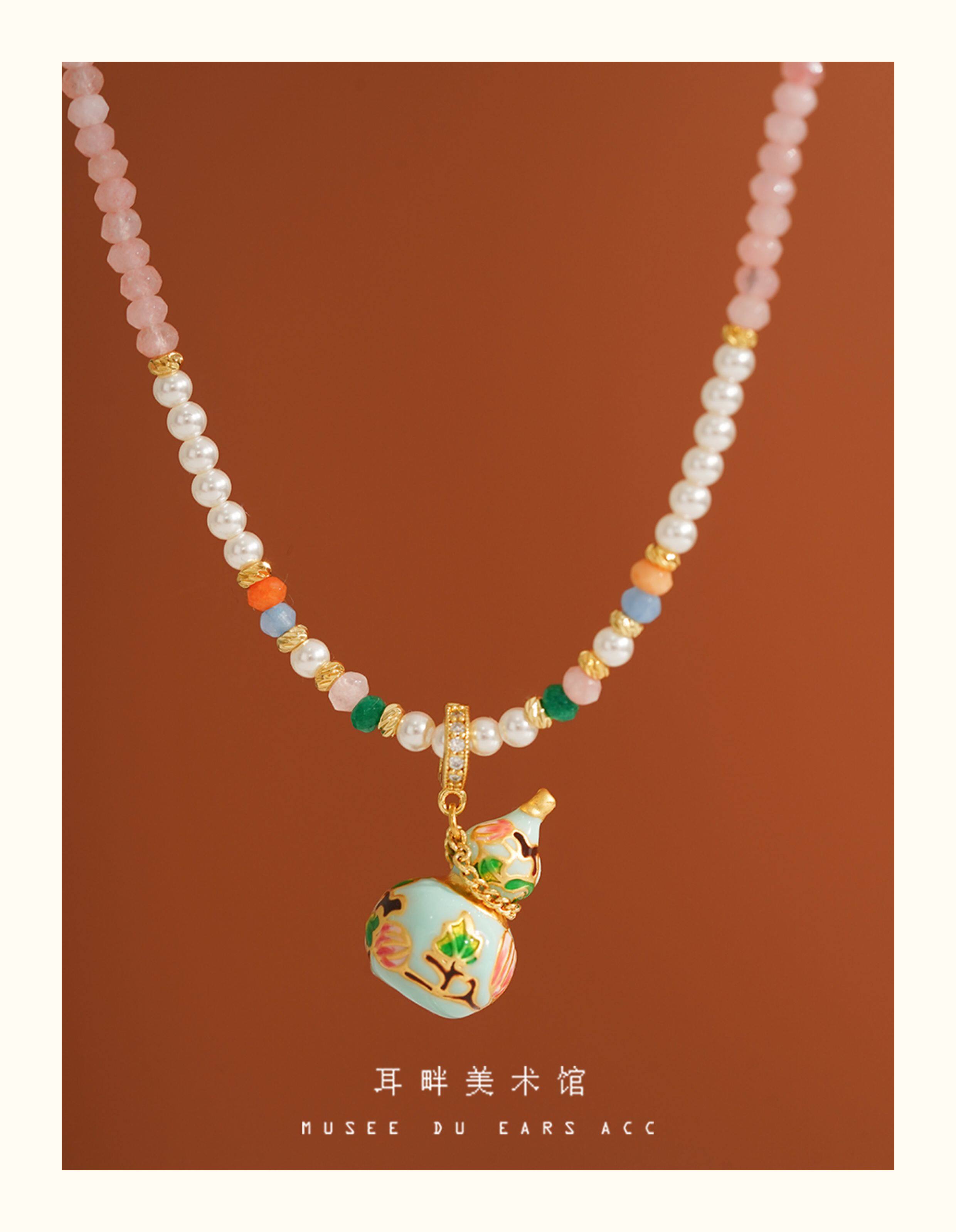 A琺瑯彩小葫蘆珍珠毛衣項鍊女長款鏈子新中式高級輕奢感配飾小衆