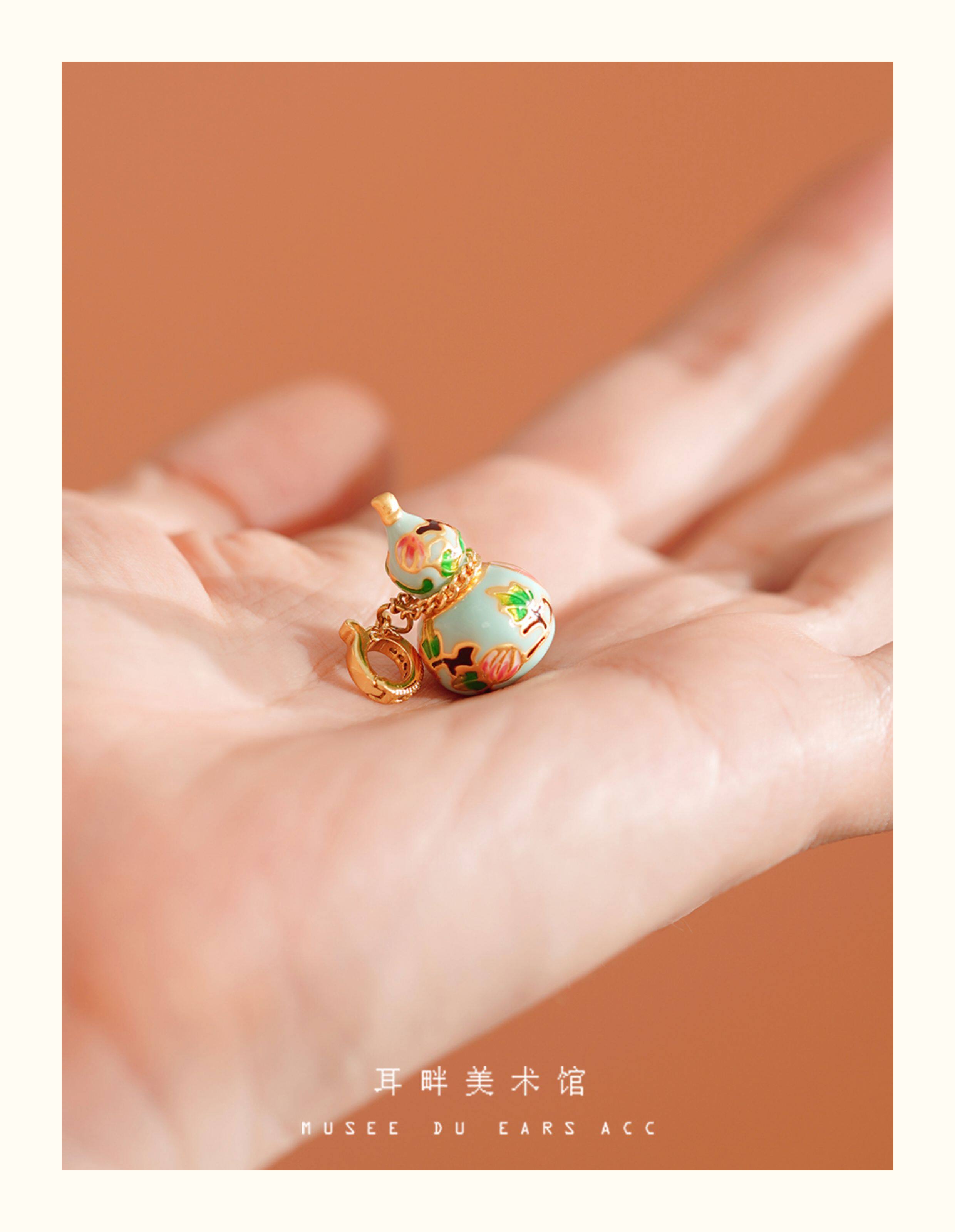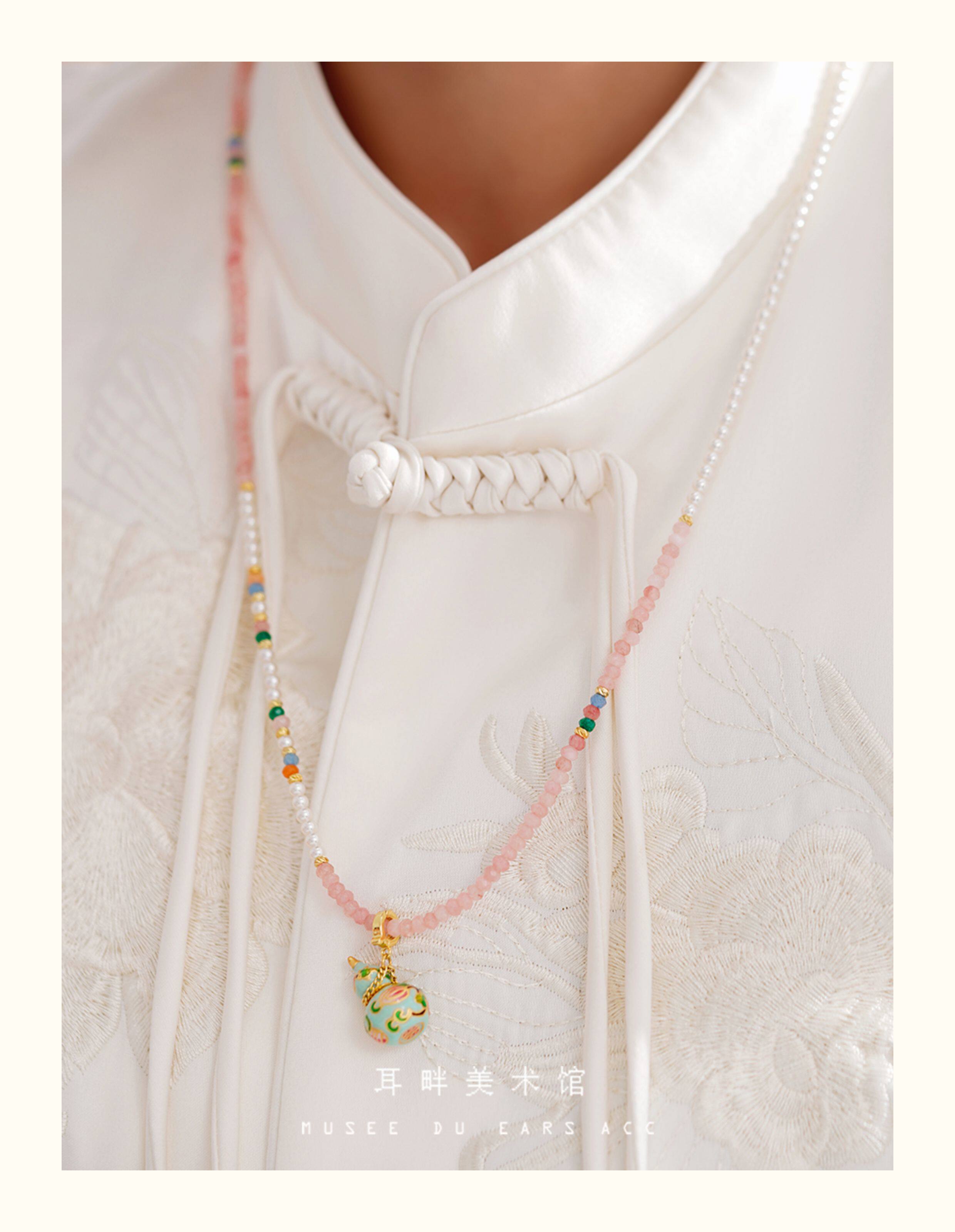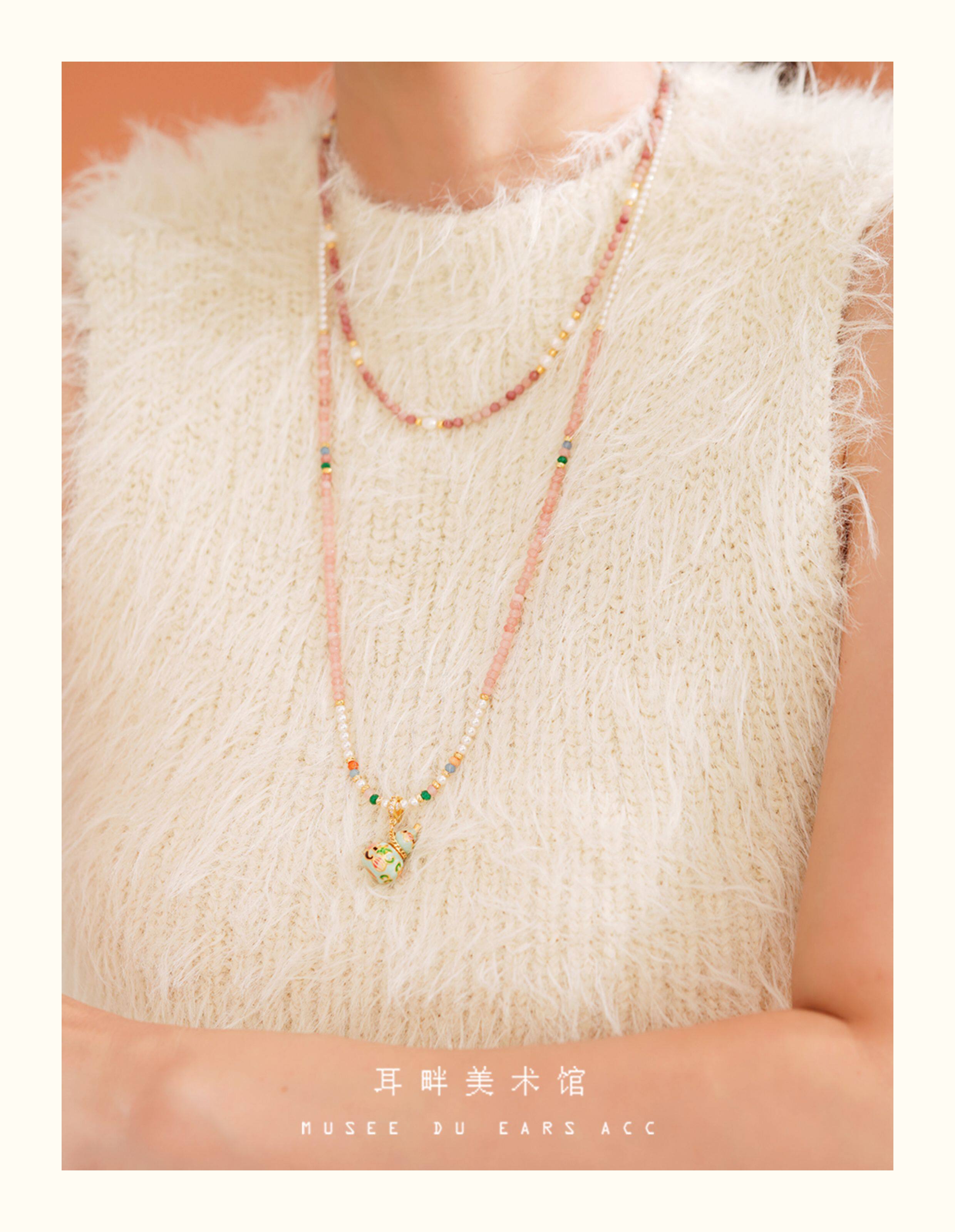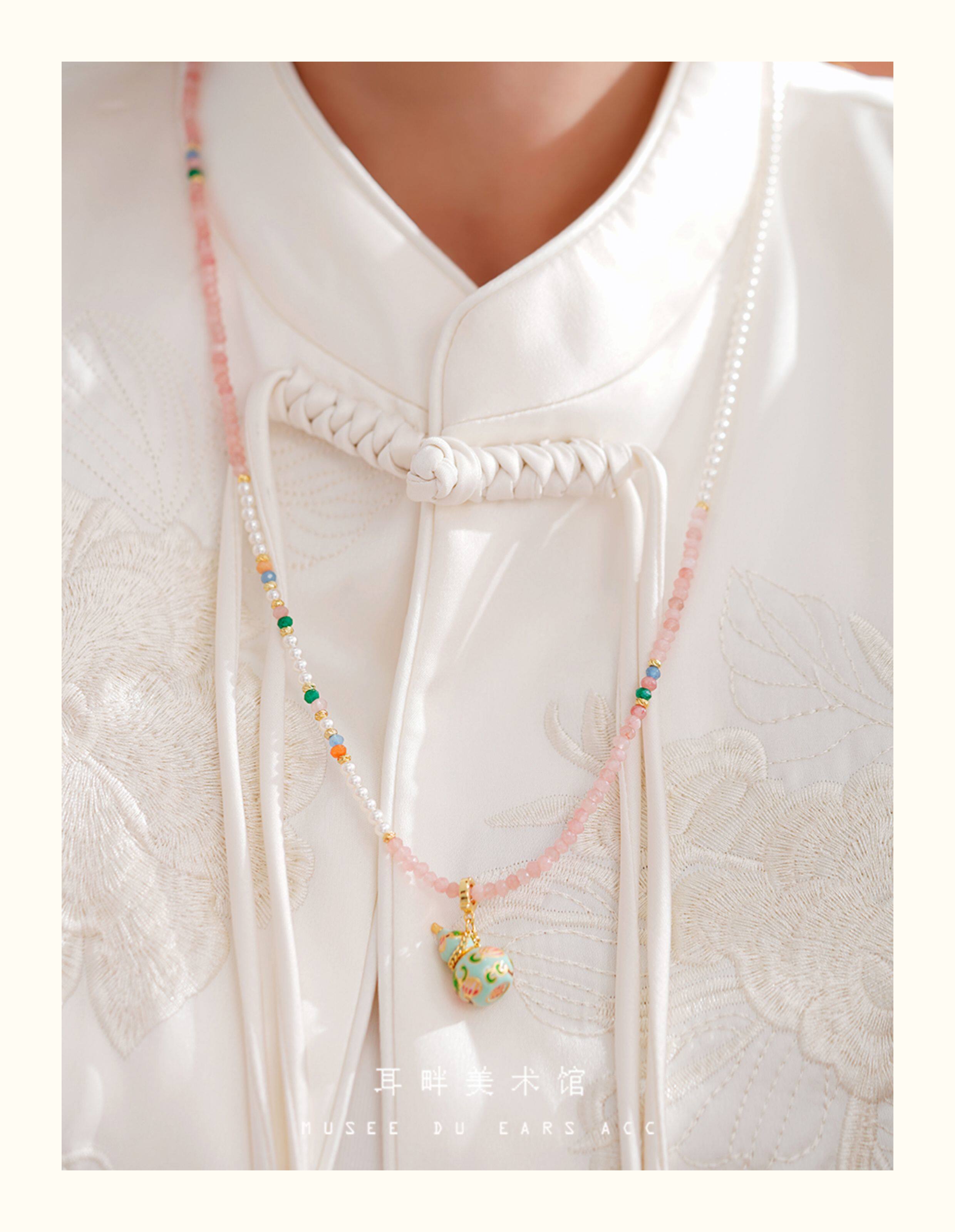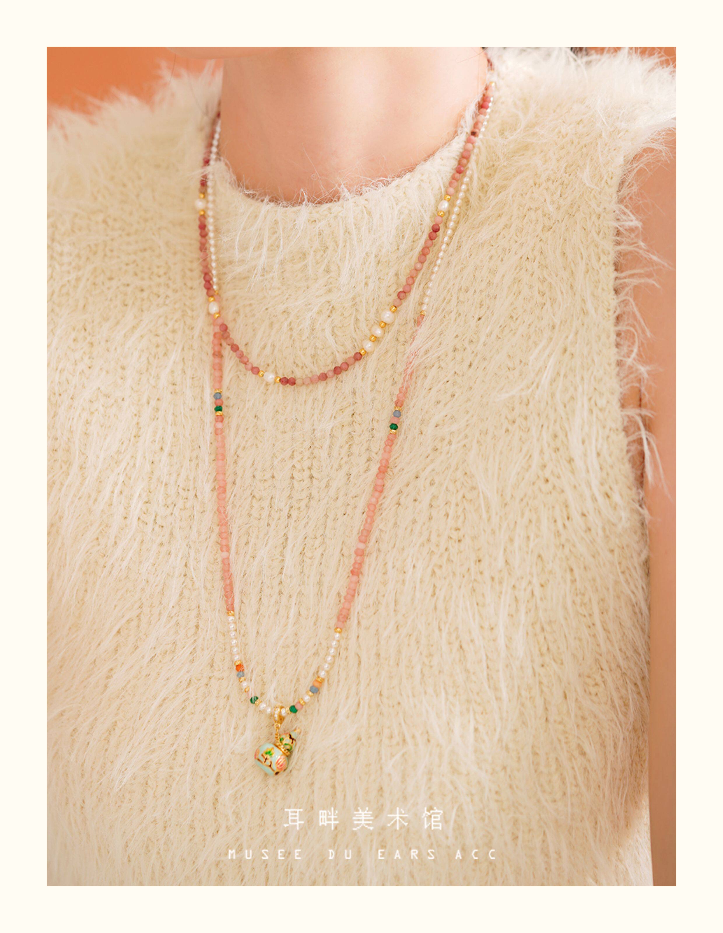 A琺瑯彩小葫蘆珍珠毛衣項鍊女長款鏈子新中式高級輕奢感配飾小衆