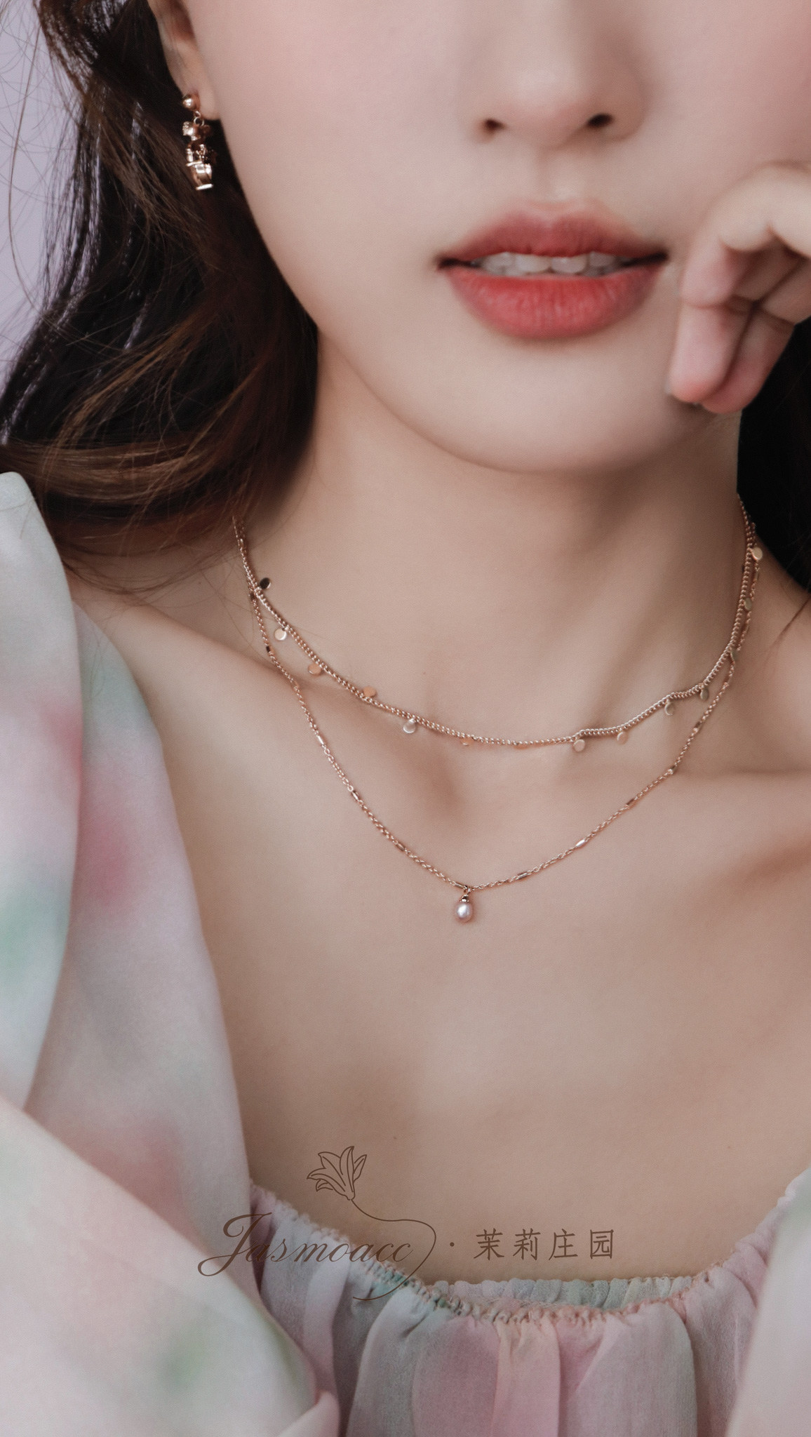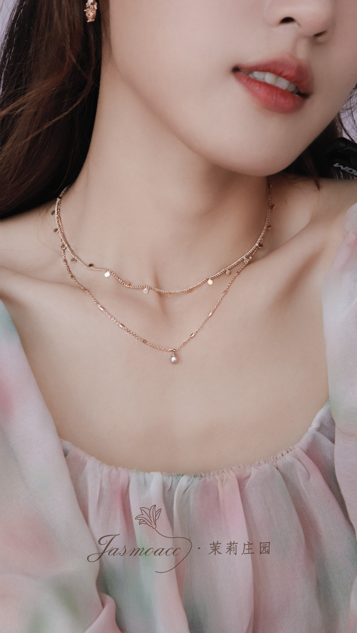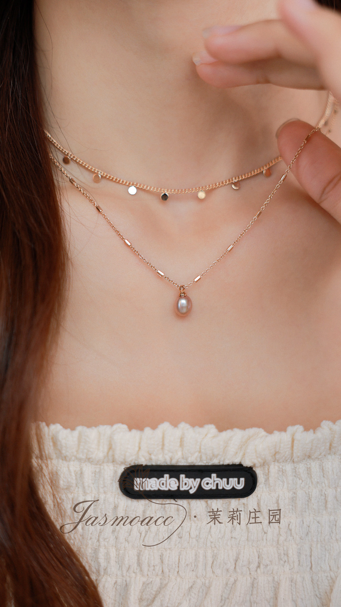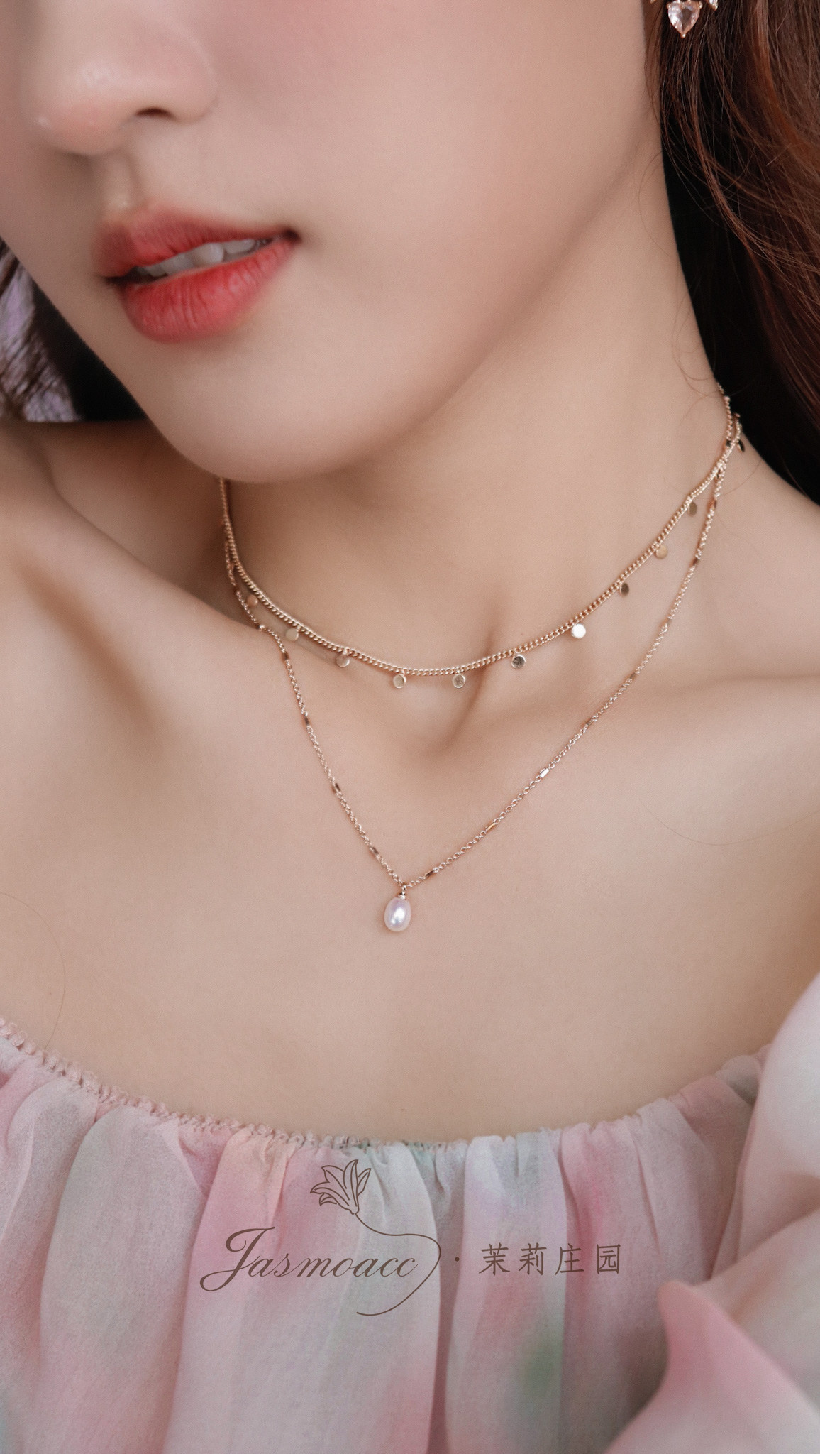 Jasmo原創小衆設計天然淡水珍珠百搭簡約精緻曡戴項鍊鎖骨鍊女