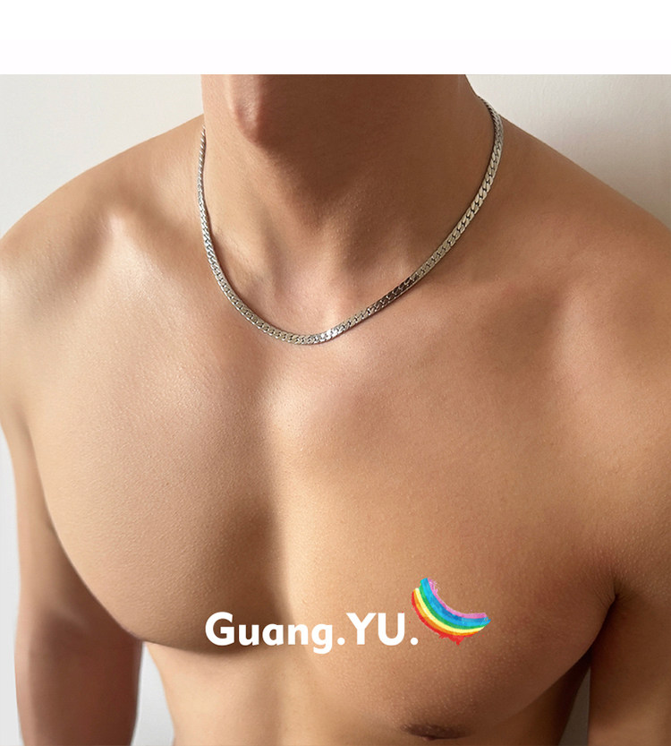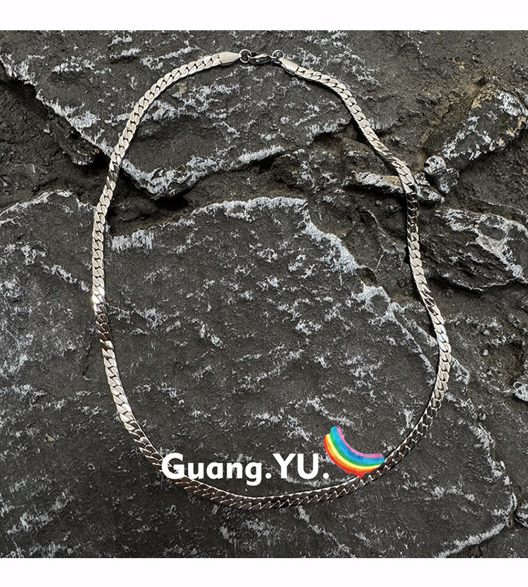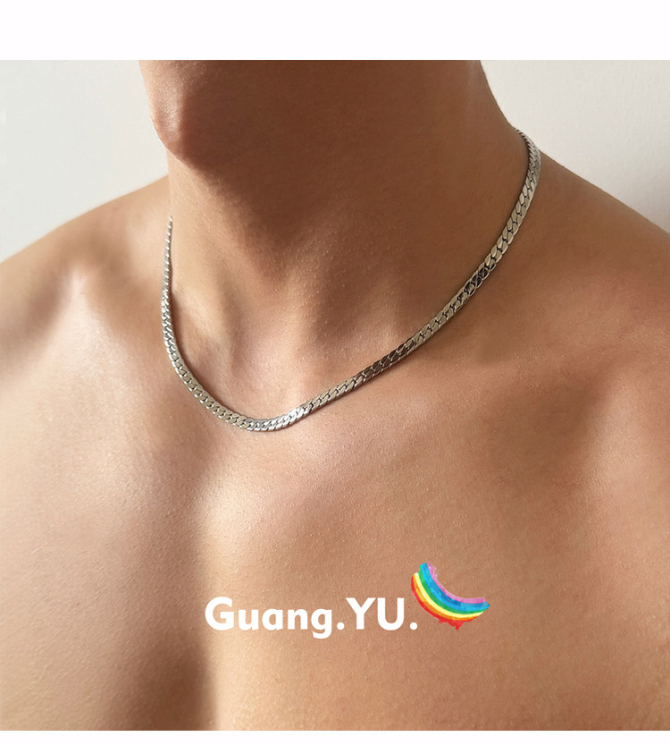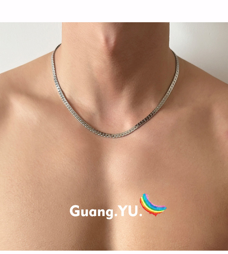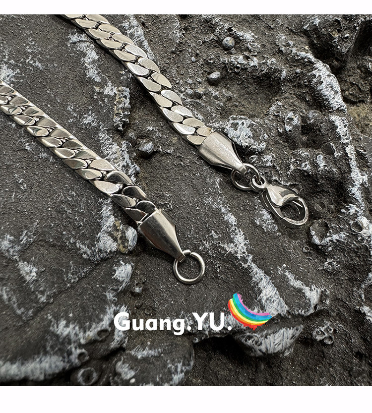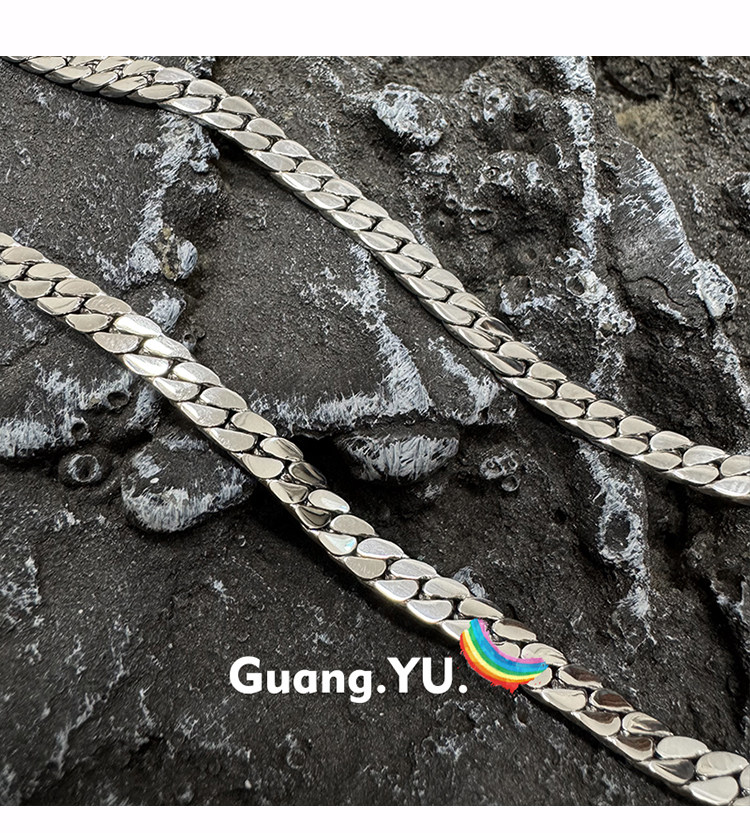 GuangYu四面方加密古巴鏈男鈦鋼項鍊嘻哈小衆簡約百搭素鏈不掉色