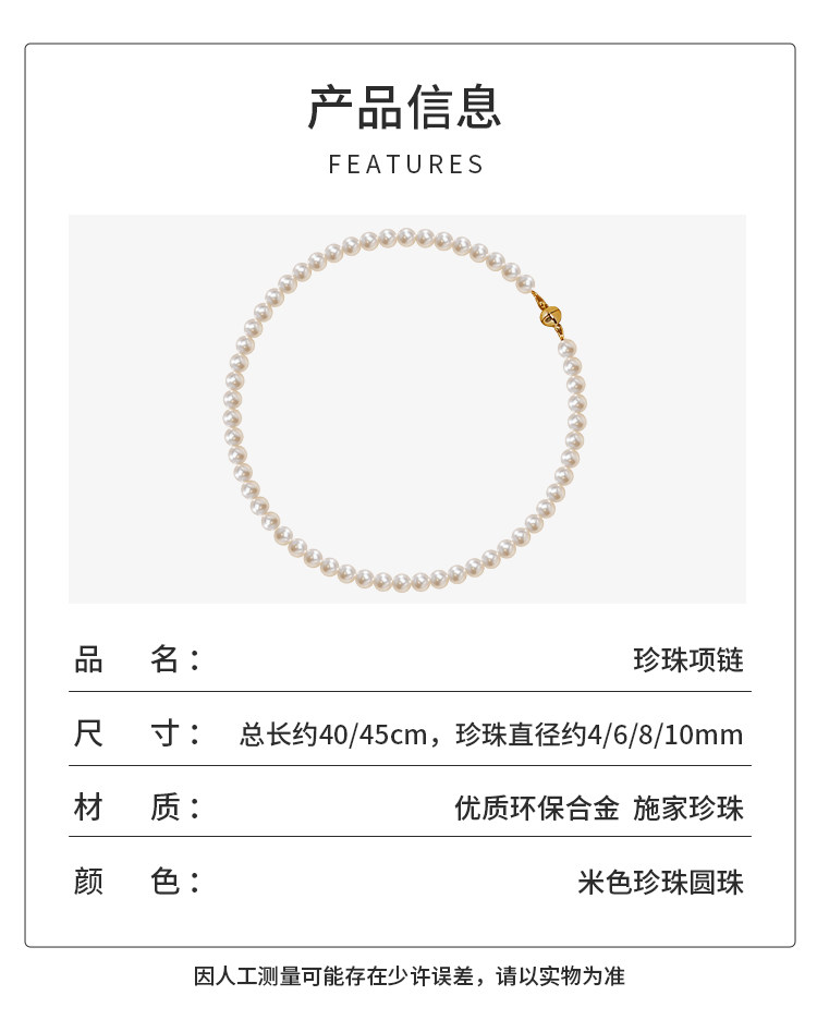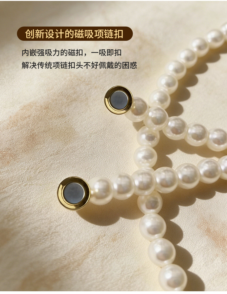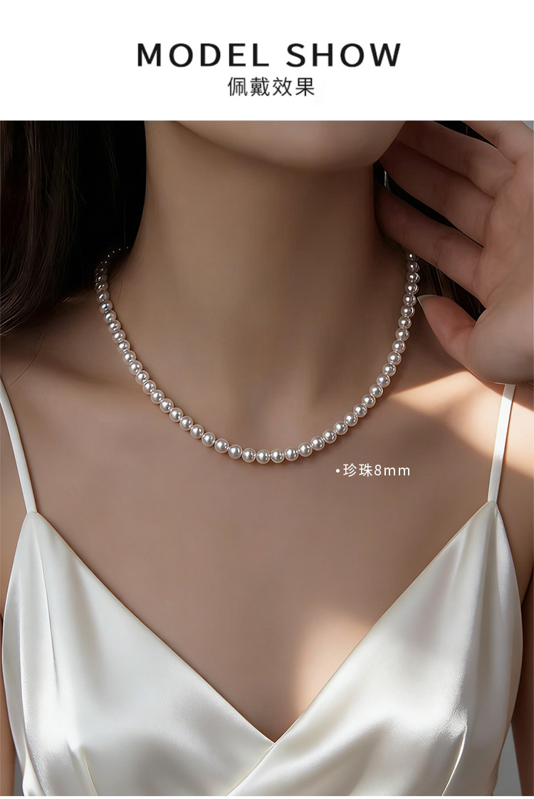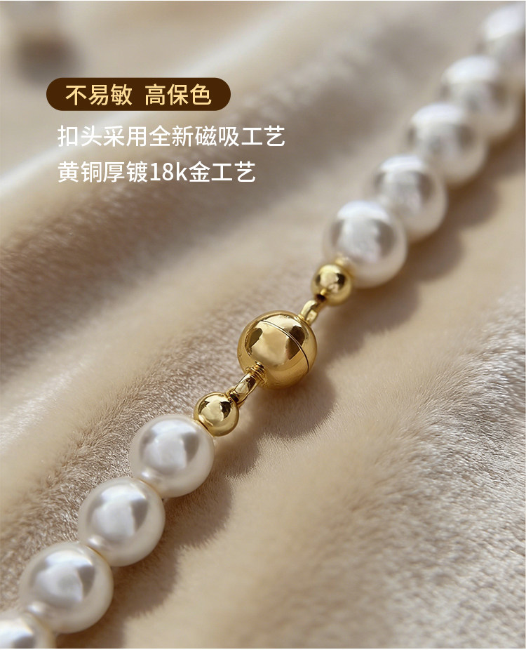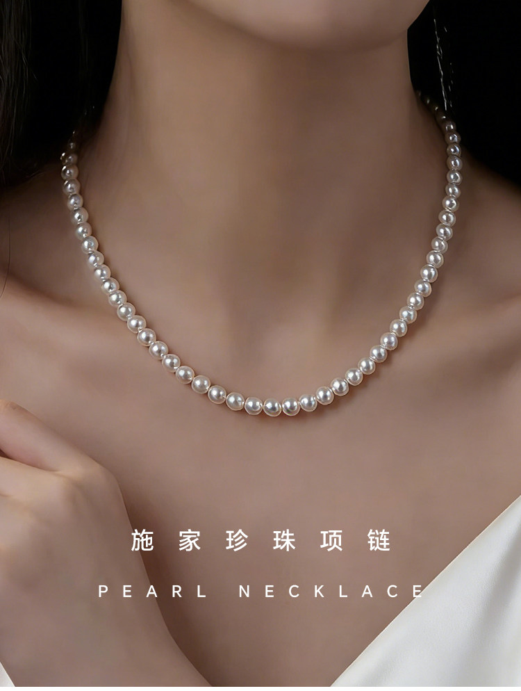 施家8mm小米珠珍珠項鍊頸鏈女新款爆款鎖骨鍊毛衣鏈輕奢磁吸配飾