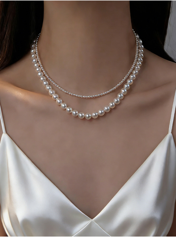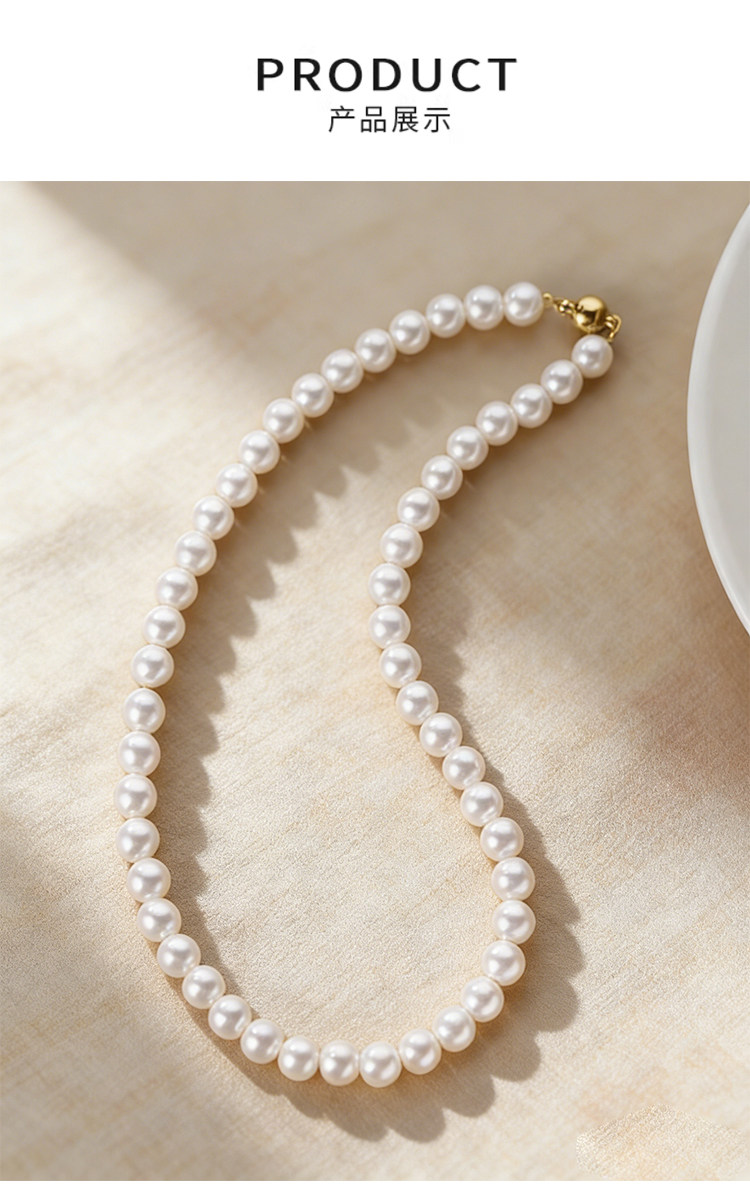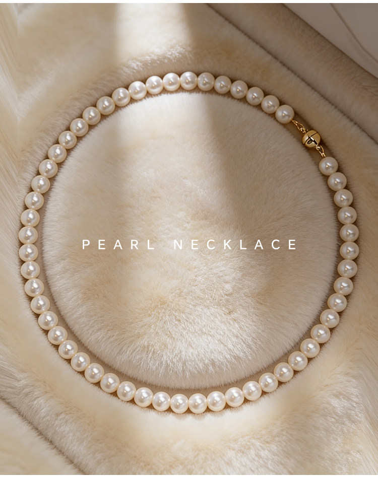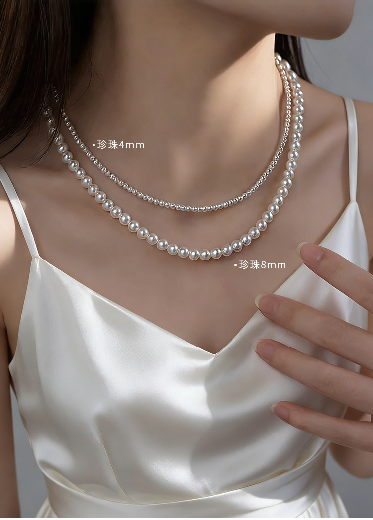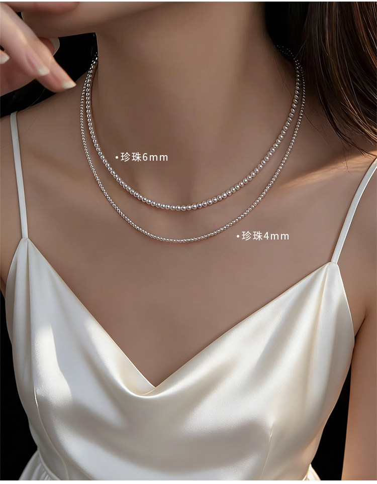 施家8mm小米珠珍珠項鍊頸鏈女新款爆款鎖骨鍊毛衣鏈輕奢磁吸配飾
