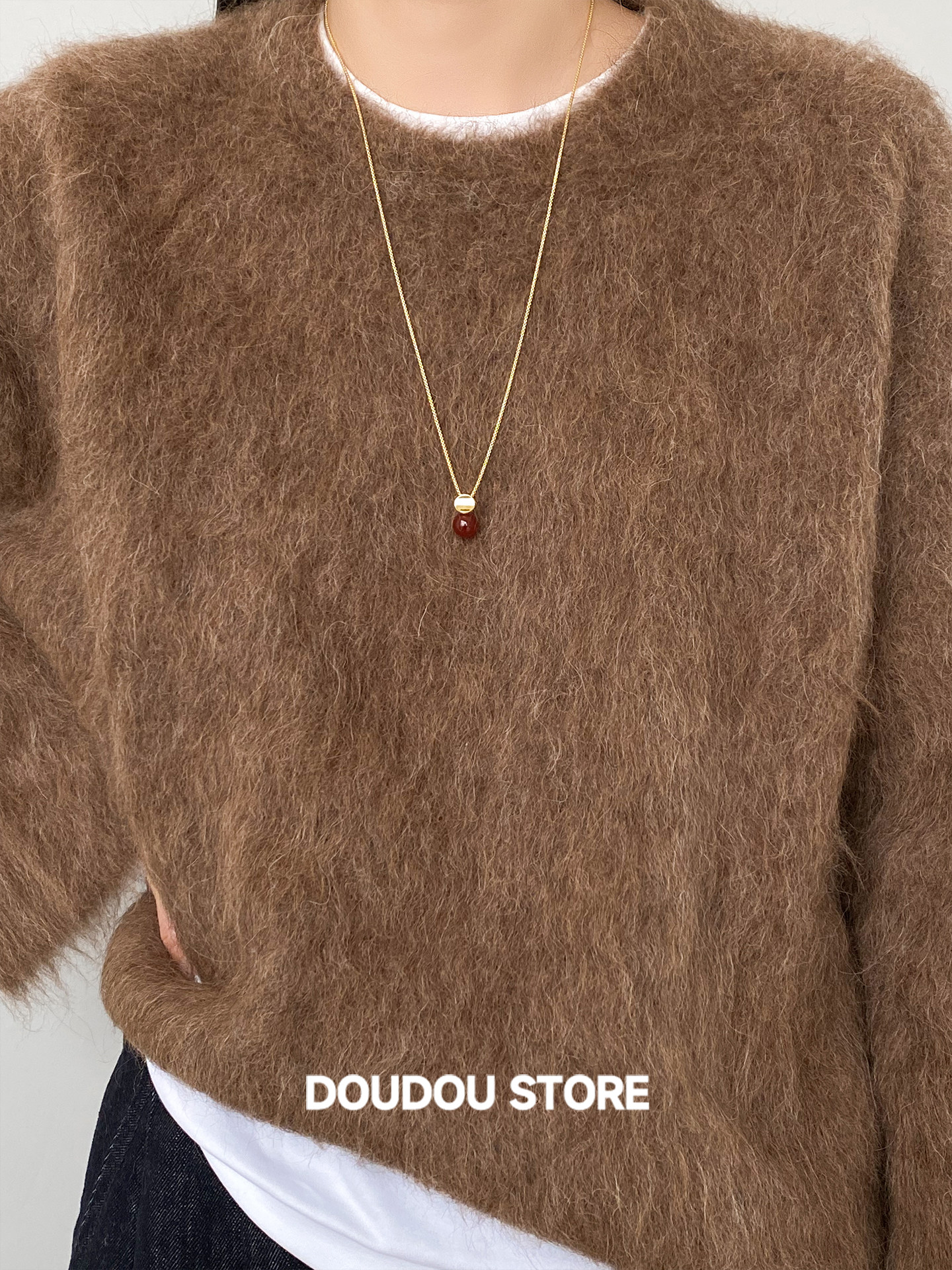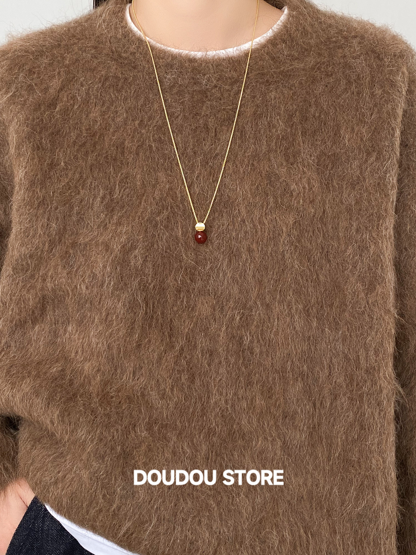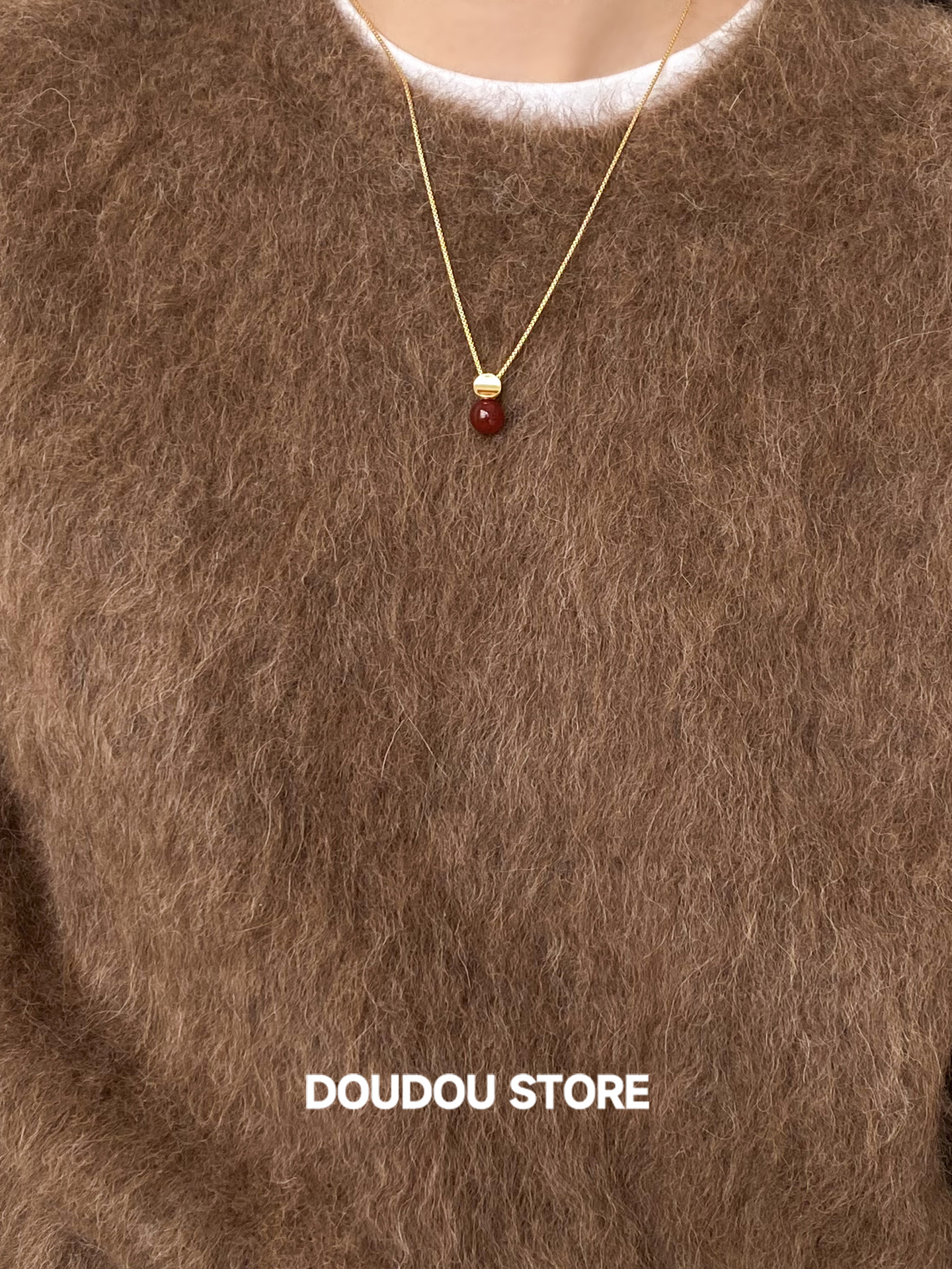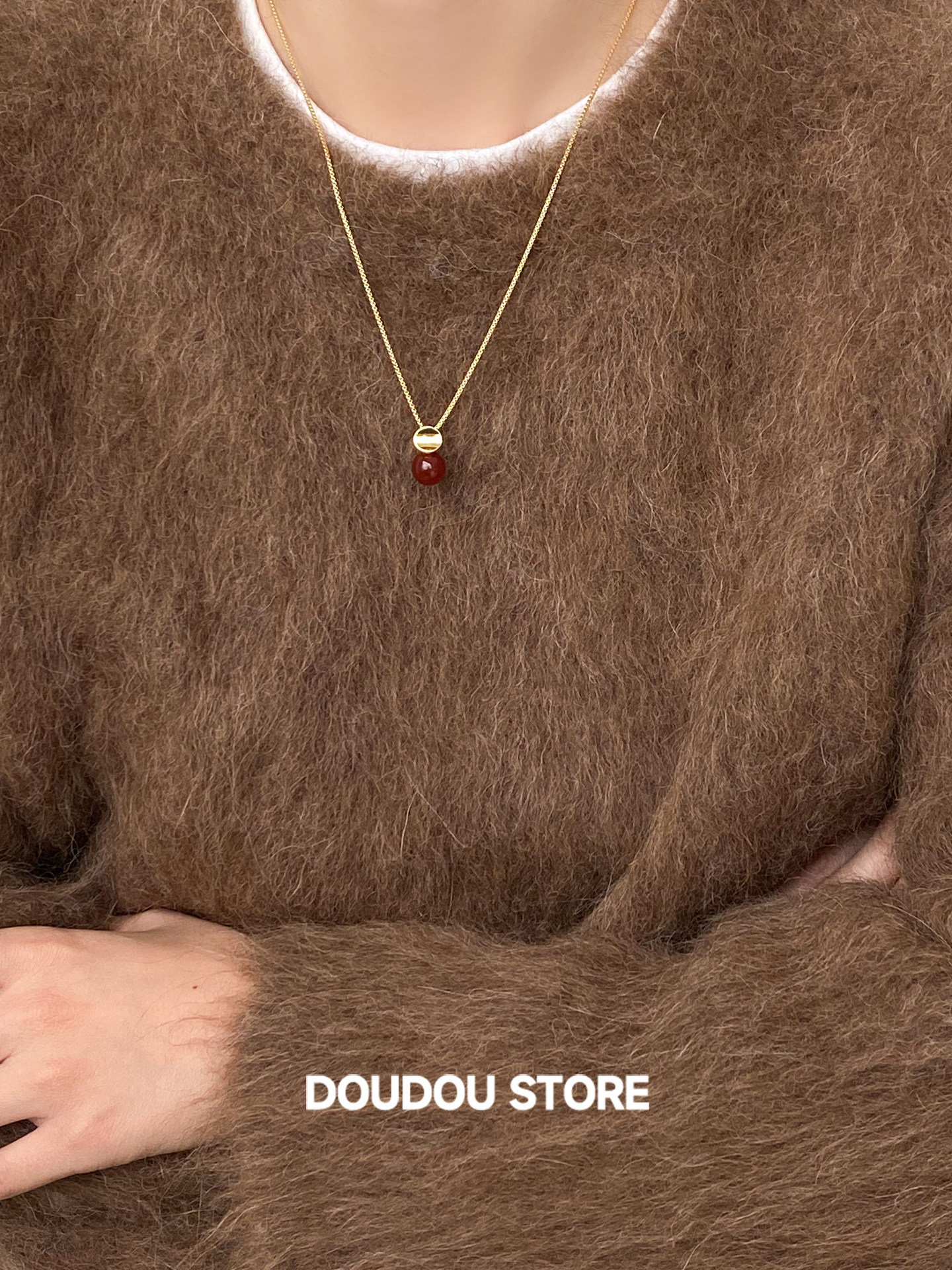 DOUDOUSTORE 高保色長版80cm新年天然紅瑪瑙幾何圓形項鍊毛衣鏈女