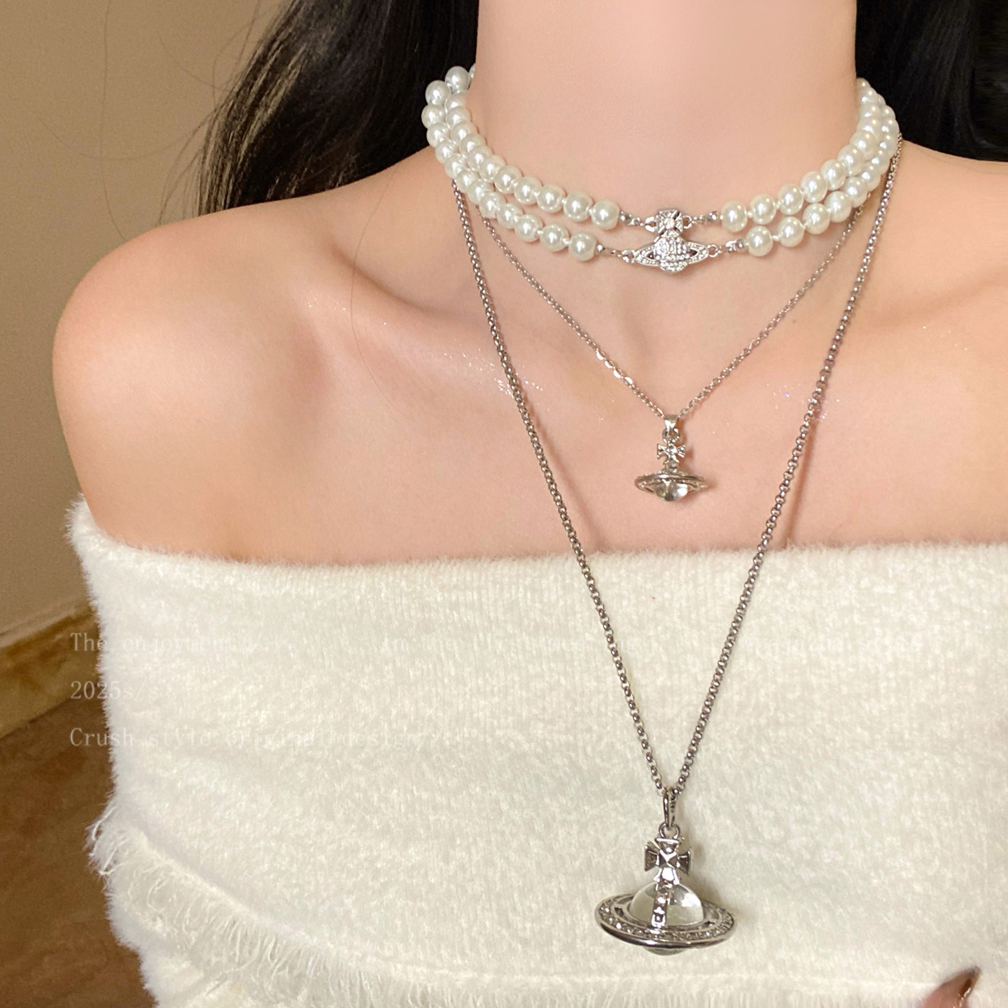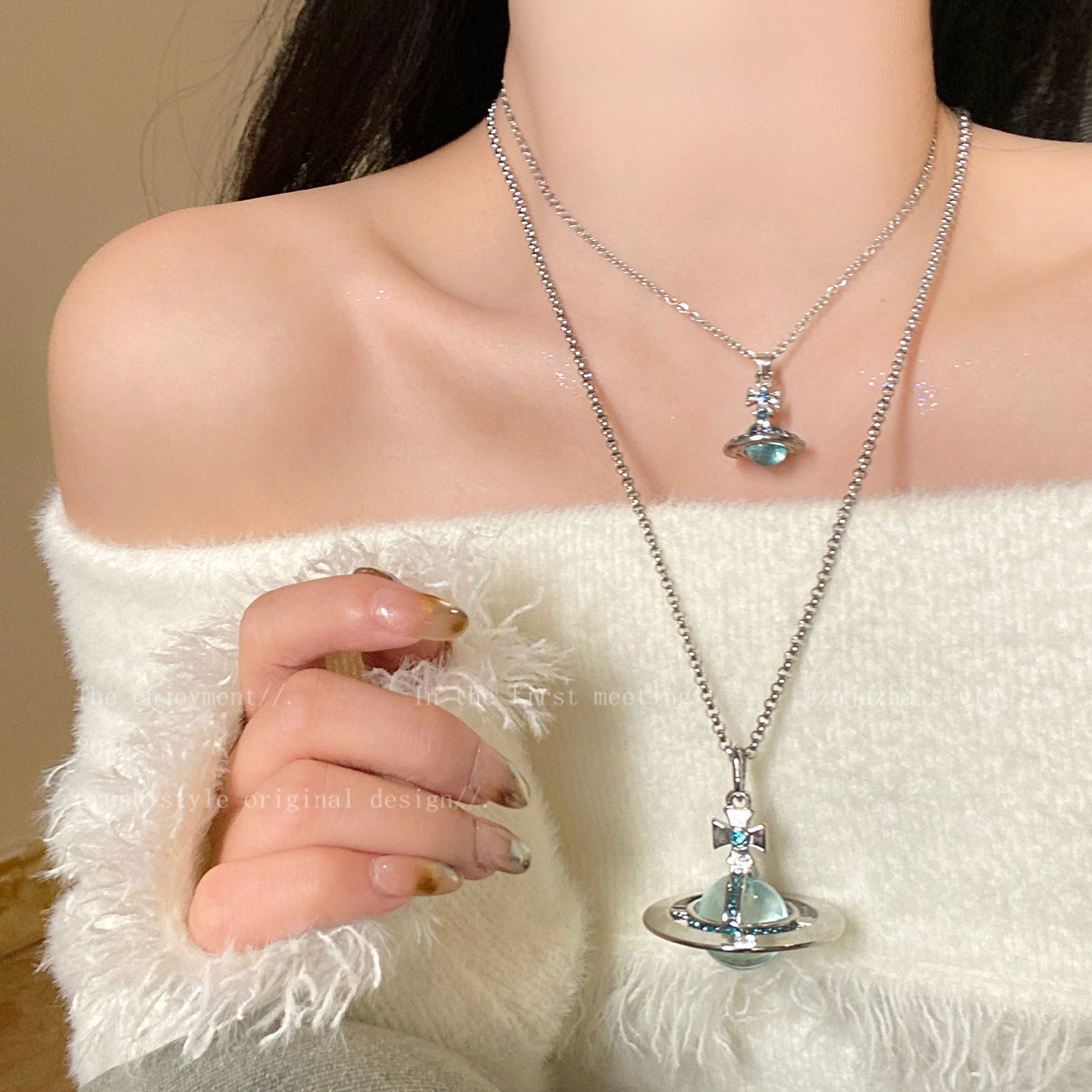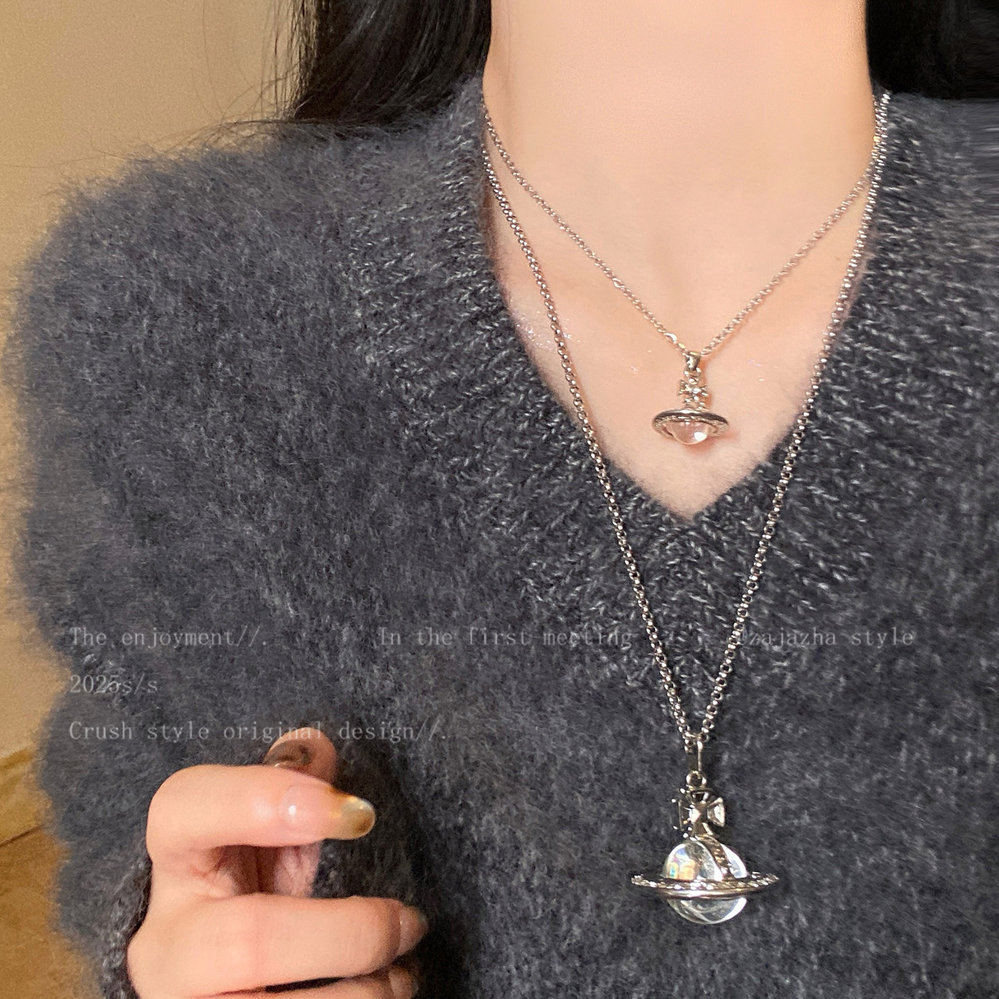 長款立體土星項鍊女2026新款輕奢小衆高級感鎖骨鍊時尚曡戴配飾品