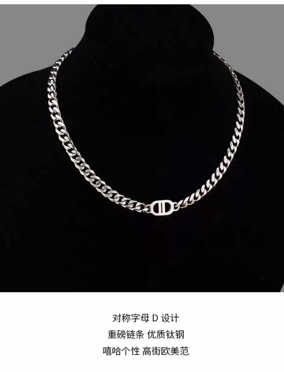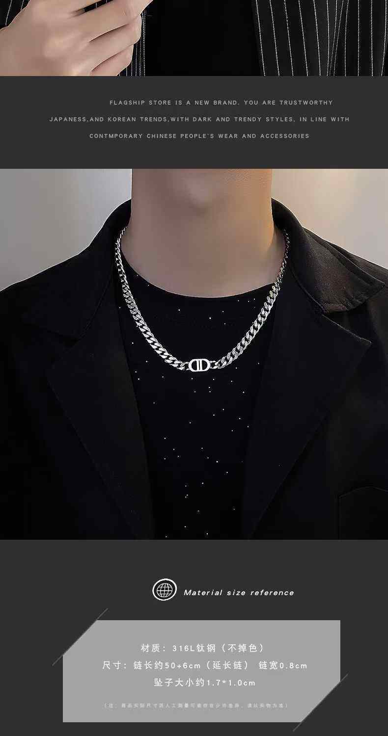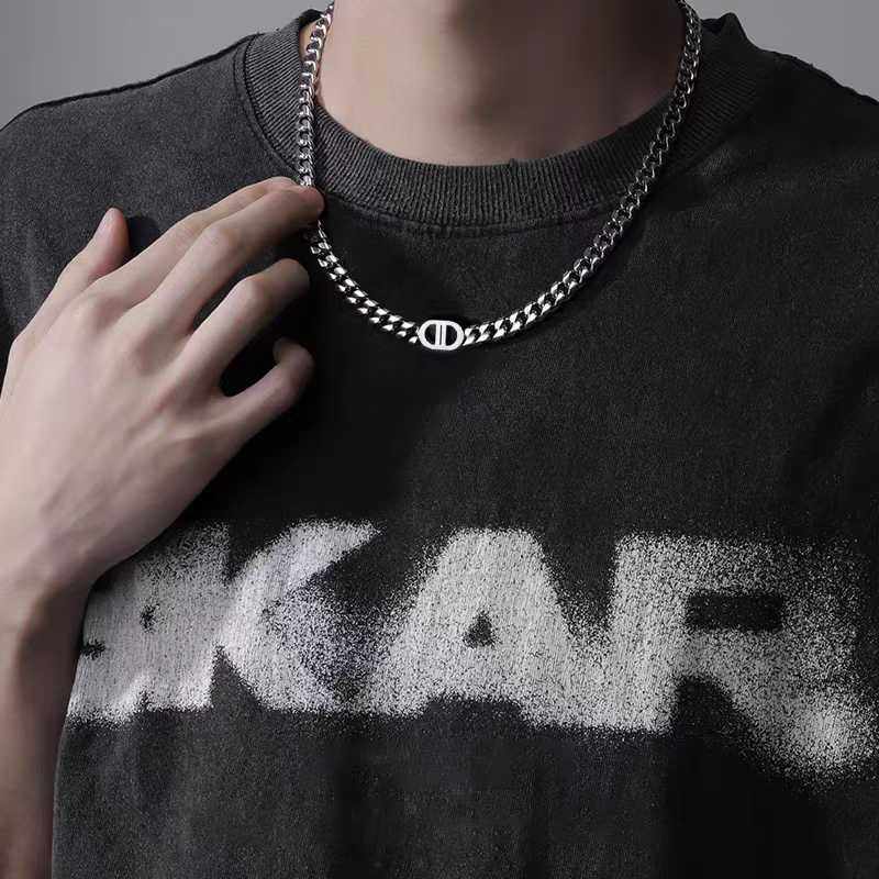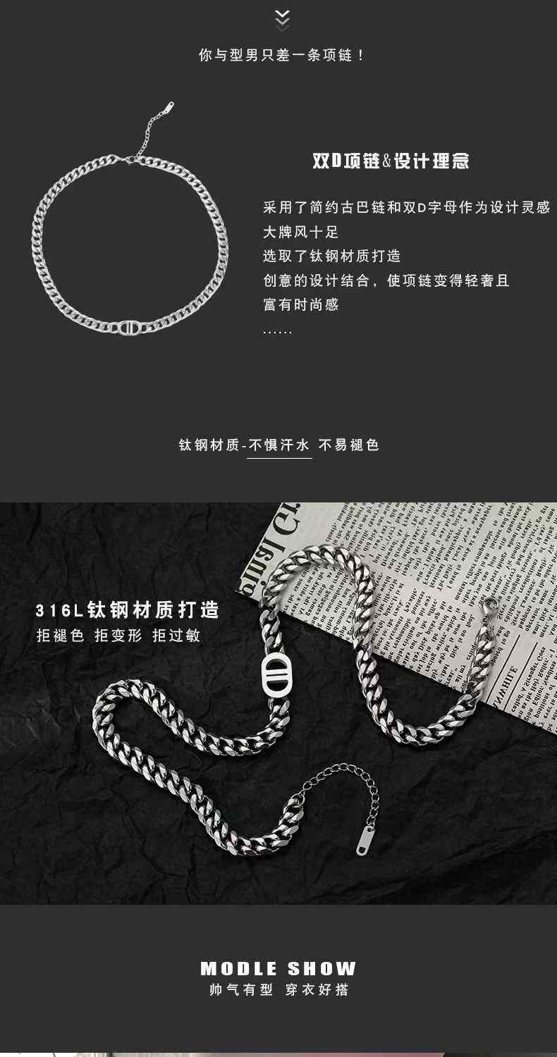 王嘉爾同款項鍊男高級雙D字母古巴項鍊鈦鋼不掉色潮豬鼻子項鍊男