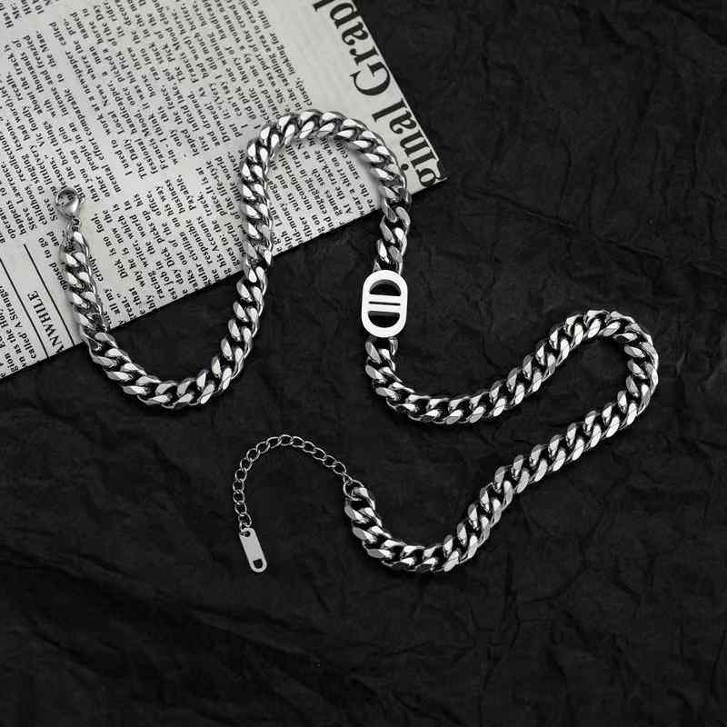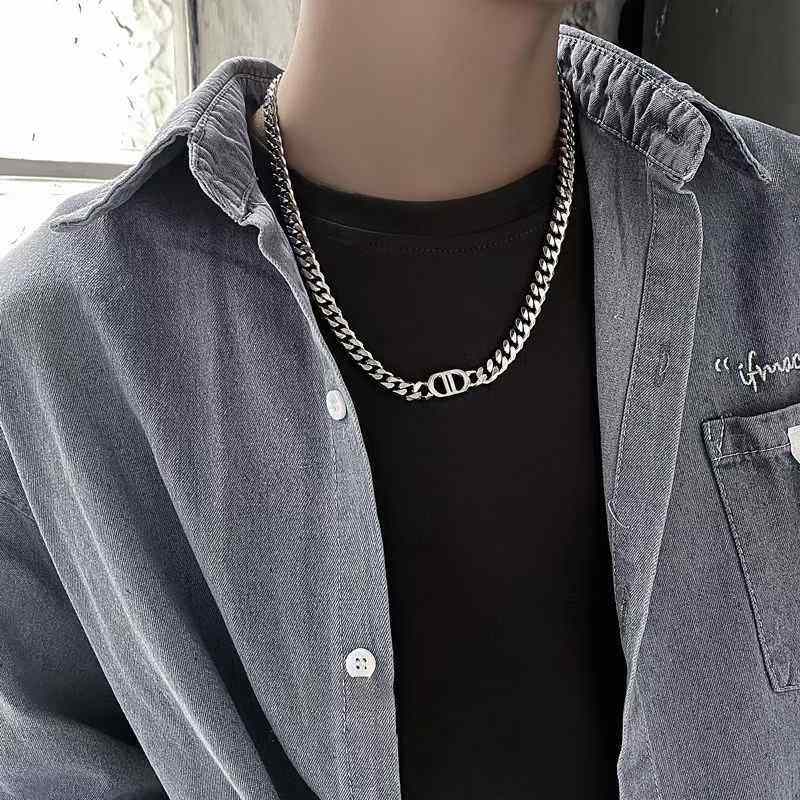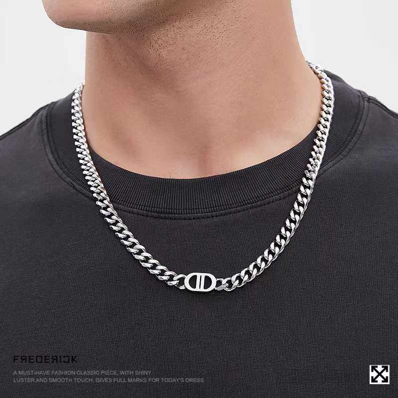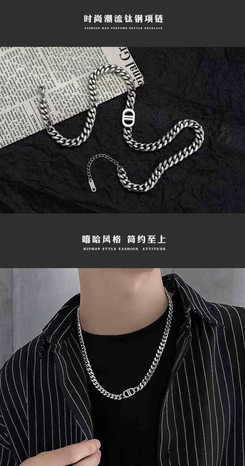 王嘉爾同款項鍊男高級雙D字母古巴項鍊鈦鋼不掉色潮豬鼻子項鍊男