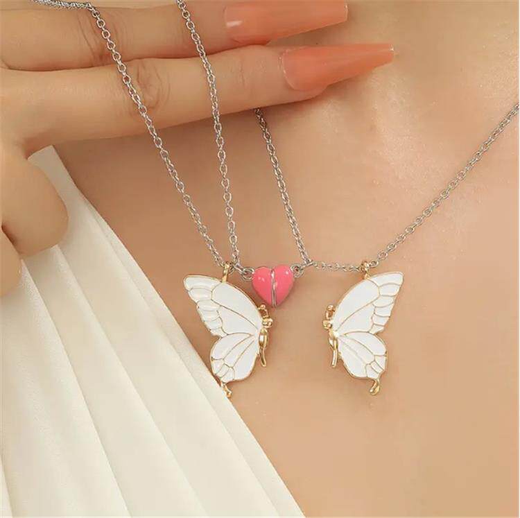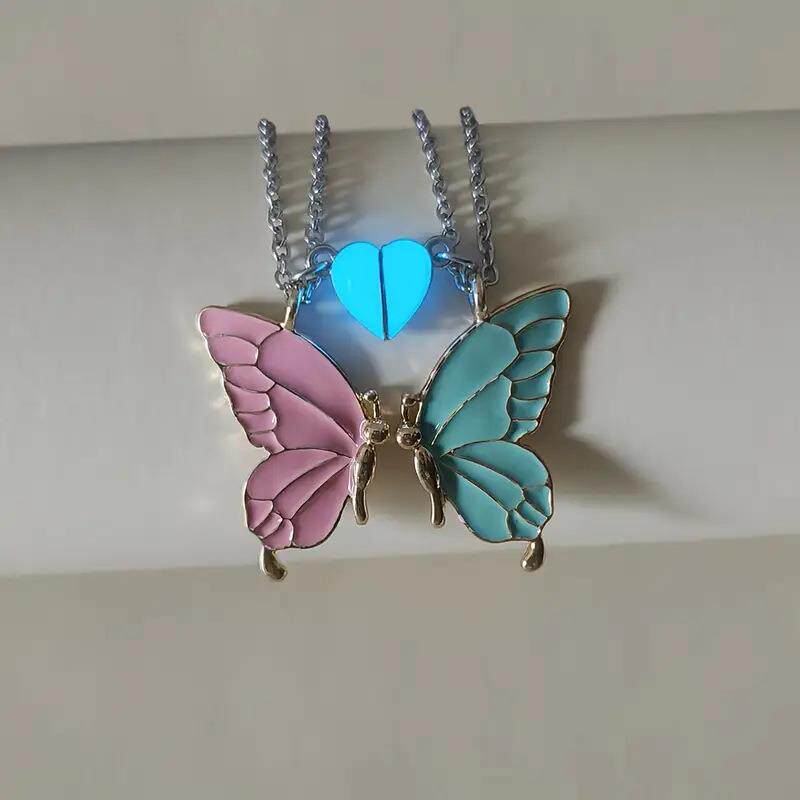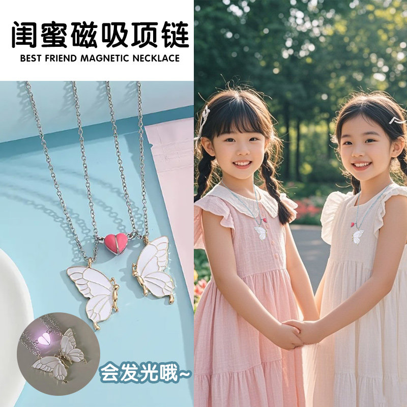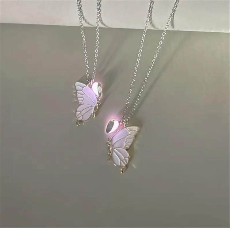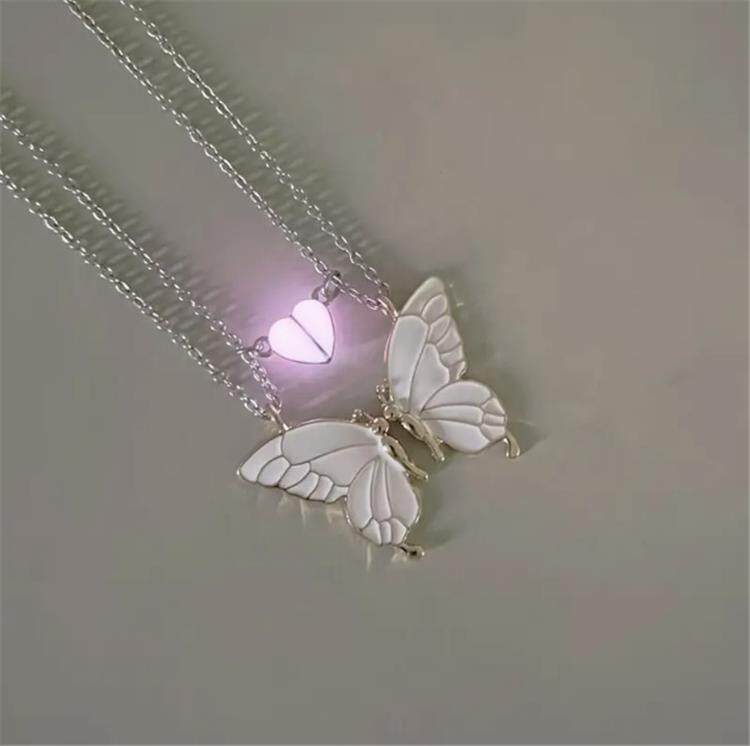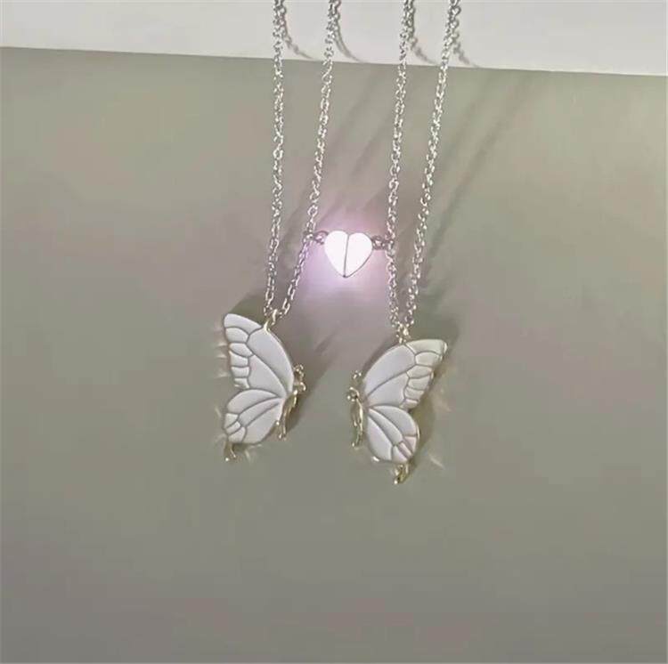 發光愛心蝴蝶吊墜相吸項鍊超仙學生兒童女閨蜜二人款一人一半磁吸