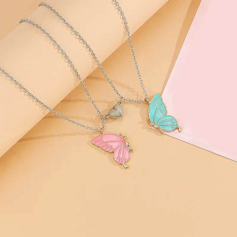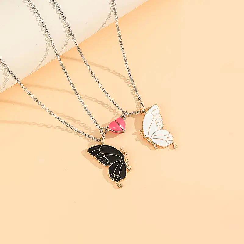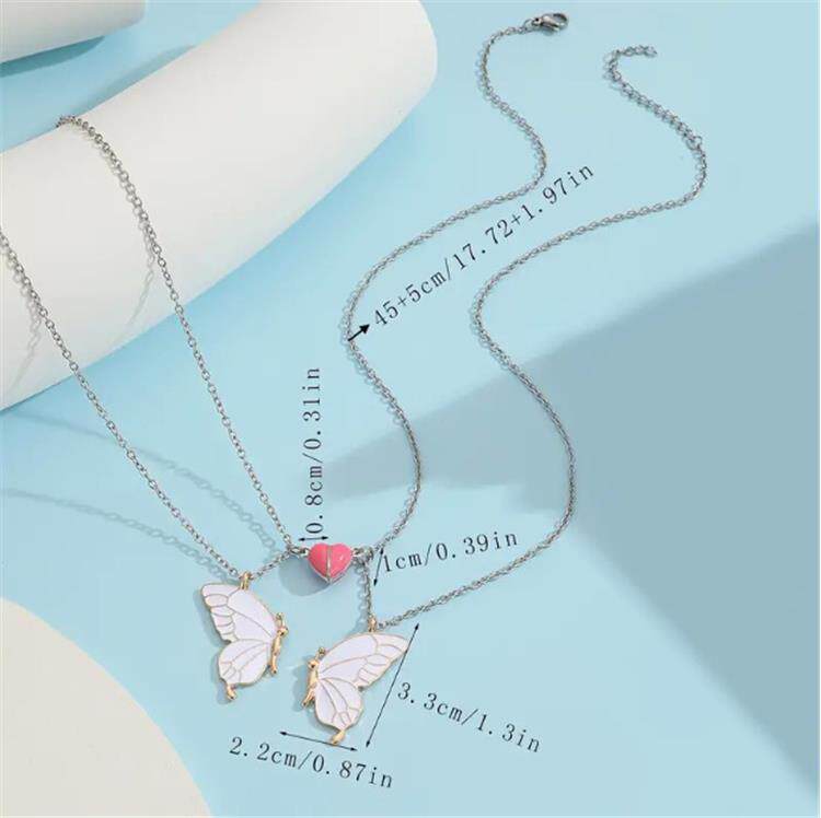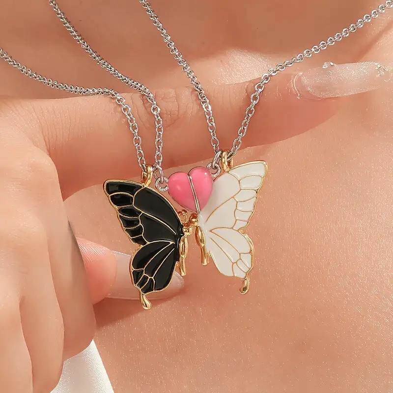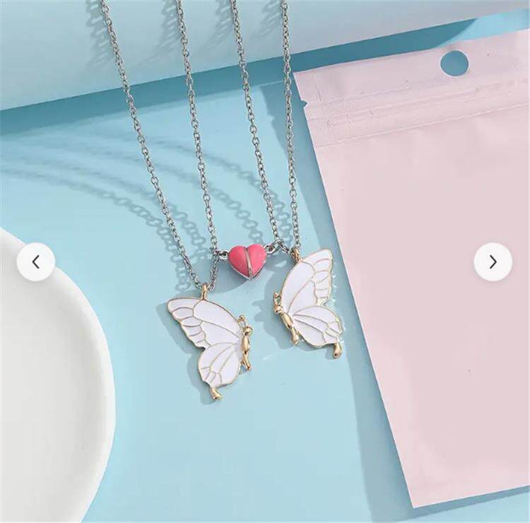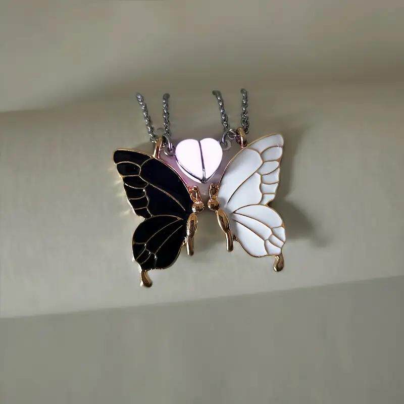 發光愛心蝴蝶吊墜相吸項鍊超仙學生兒童女閨蜜二人款一人一半磁吸