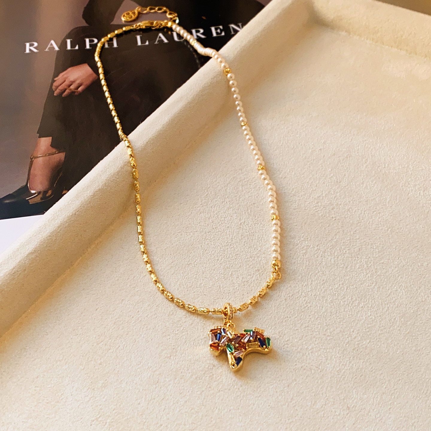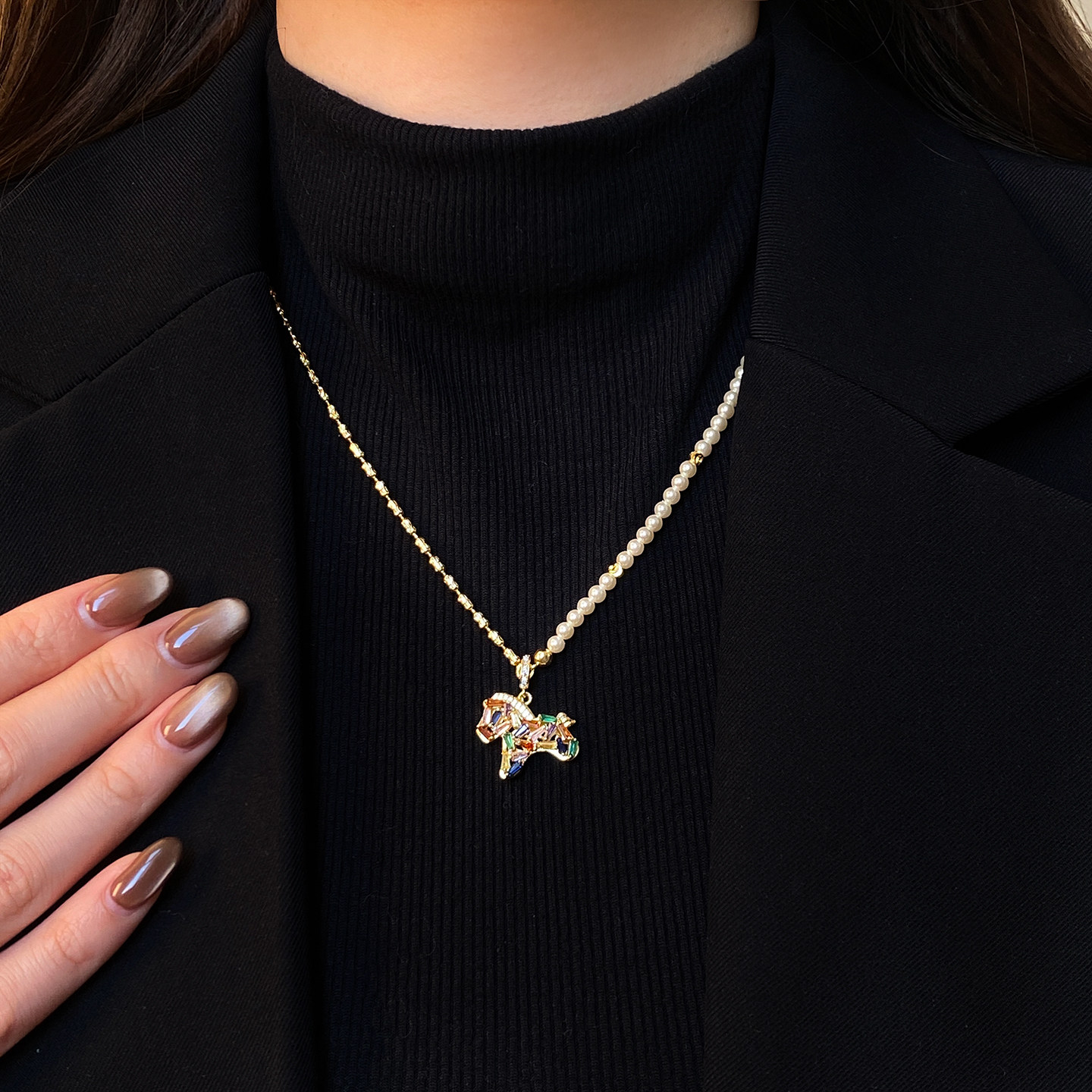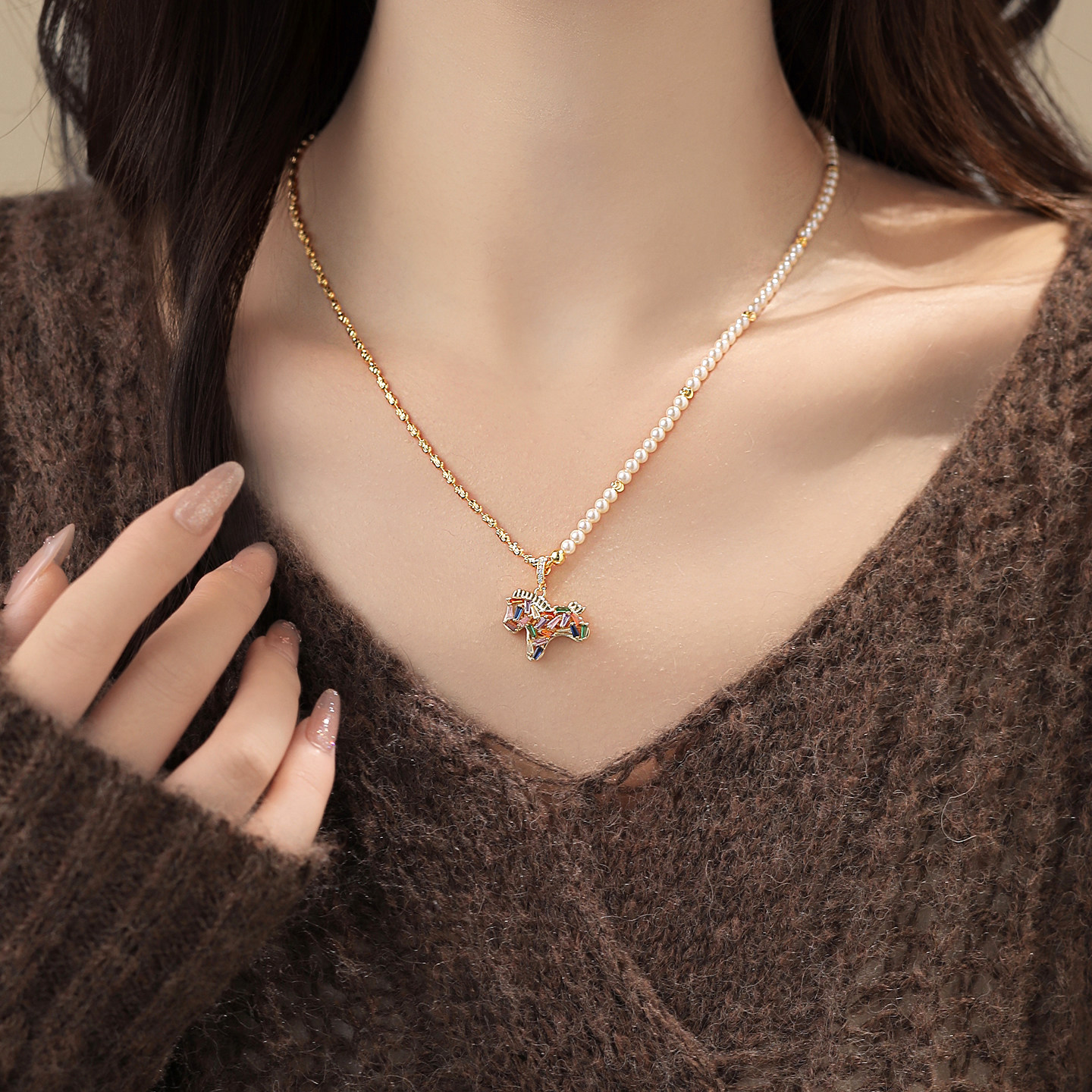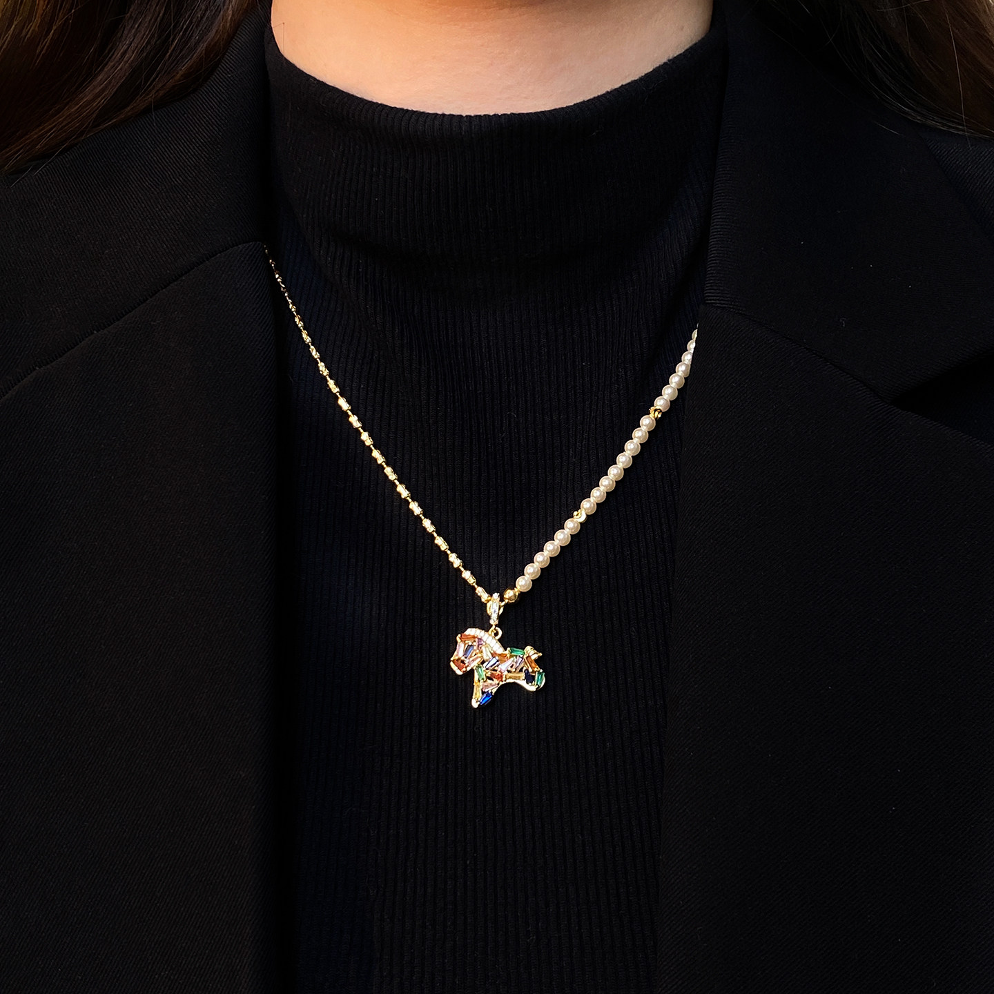 馬年彩色小馬吊墜珍珠項鍊女輕奢高級感小衆毛衣鏈琺瑯本命年配飾
