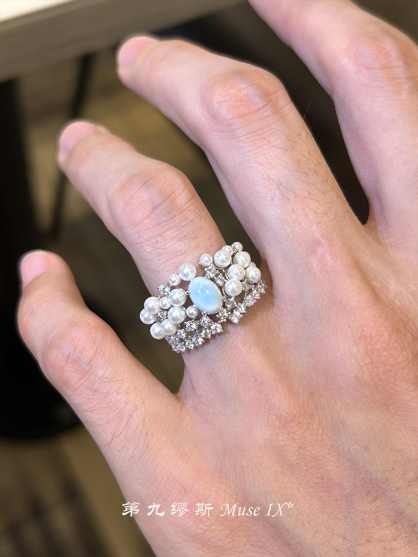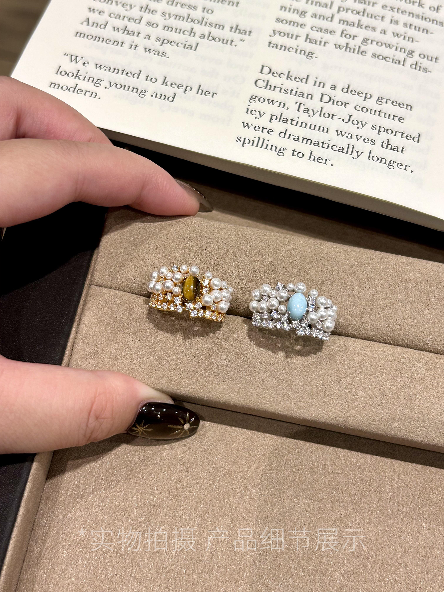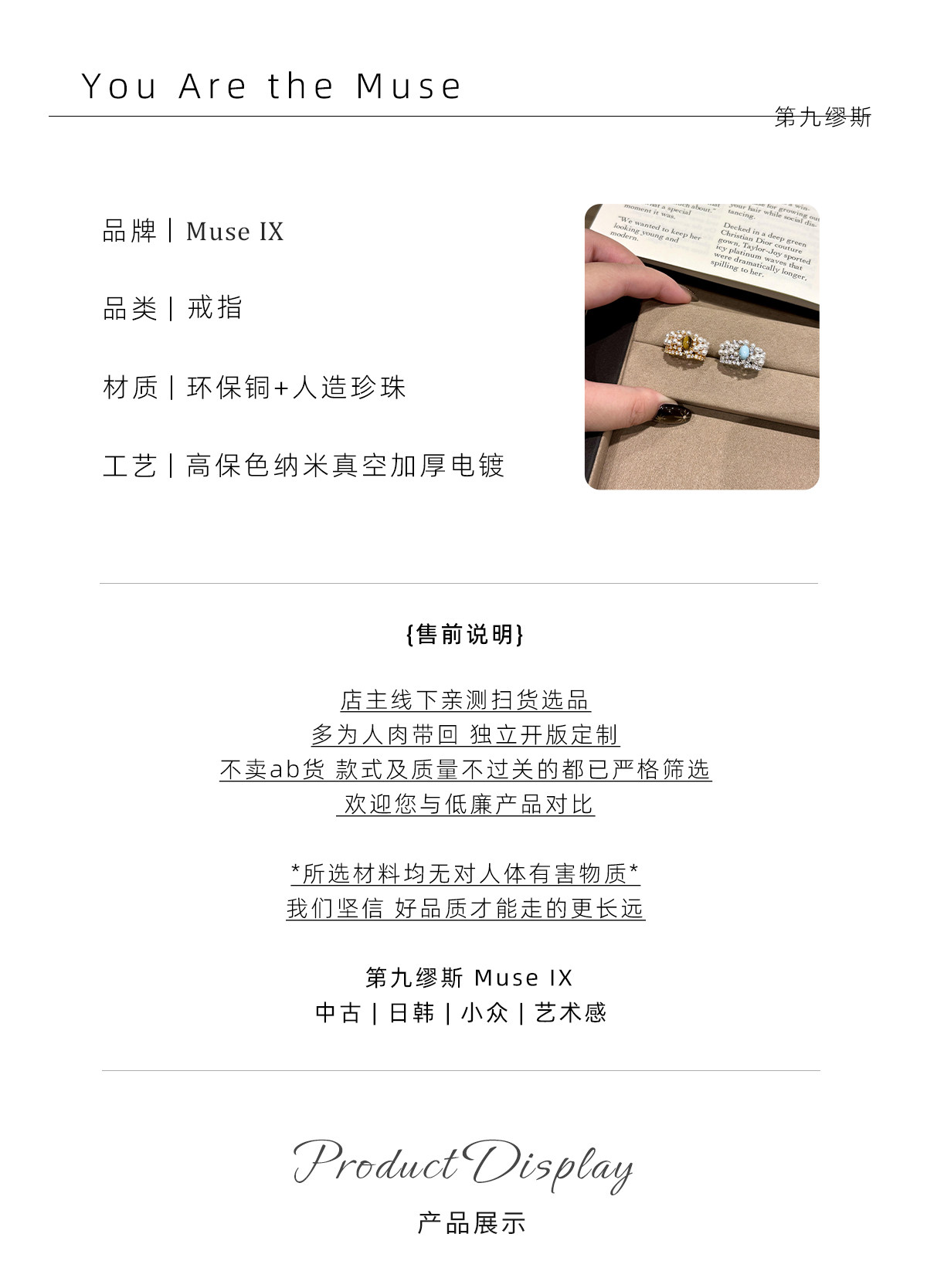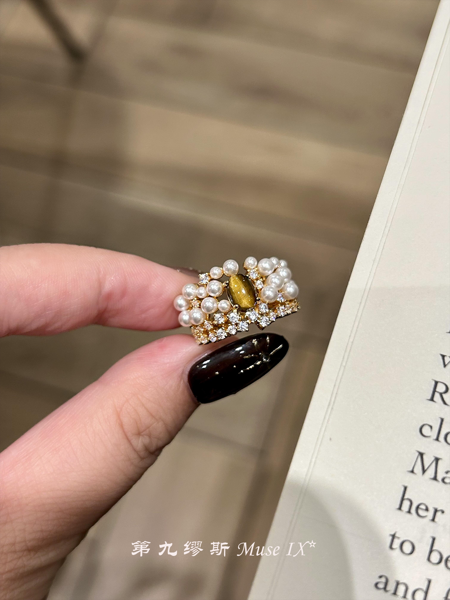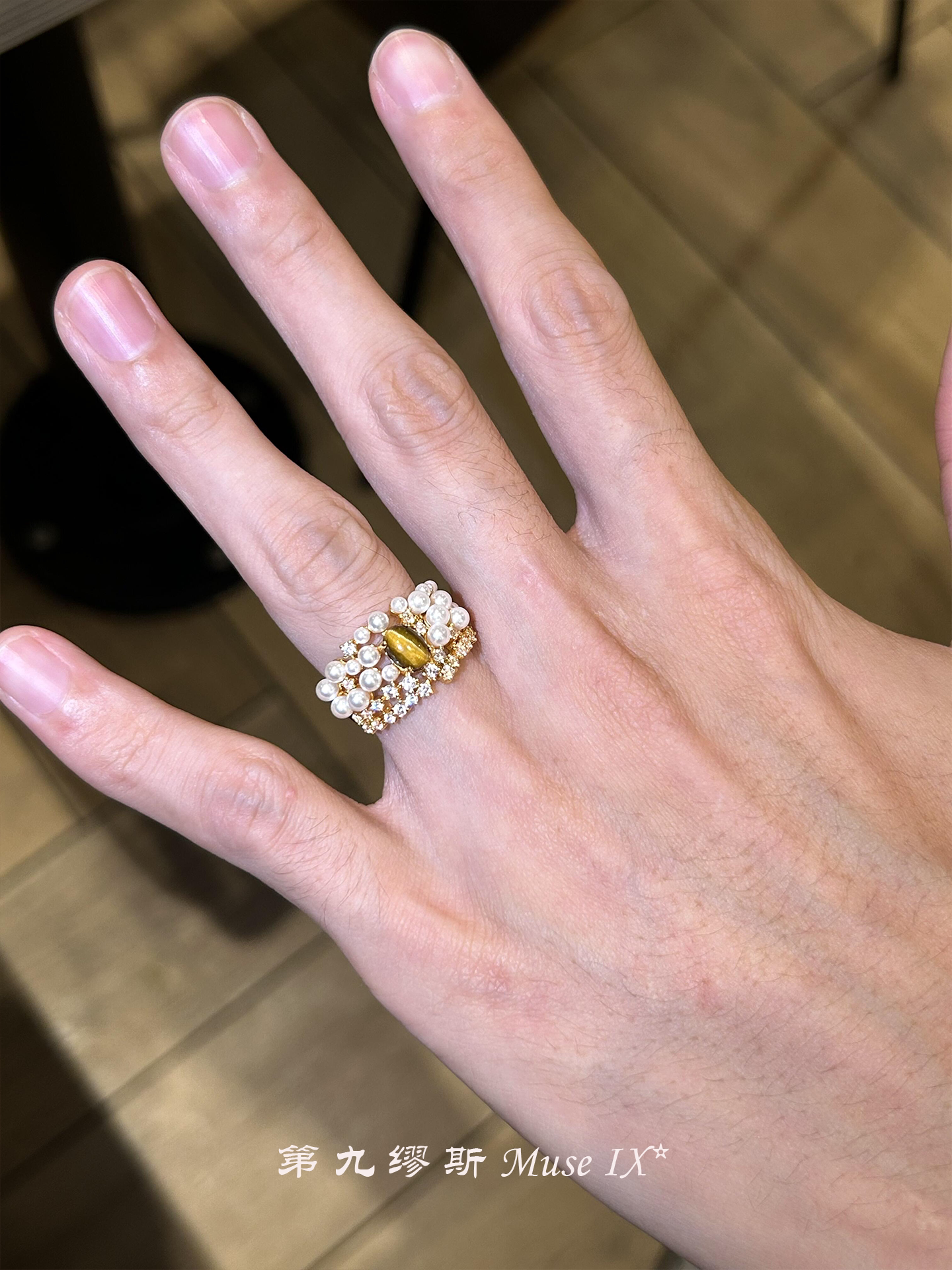 【第九繆斯】中古虎眼石珍珠閃鑽戒指老錢風輕奢高級感小衆食指戒