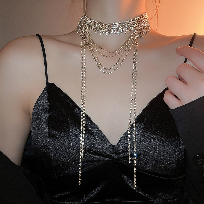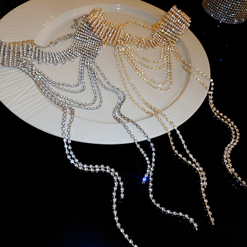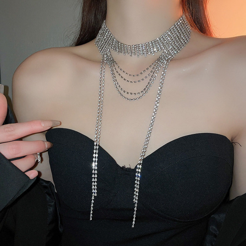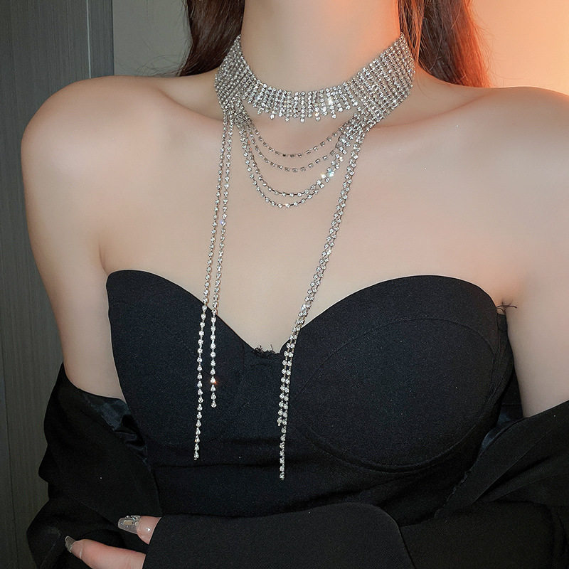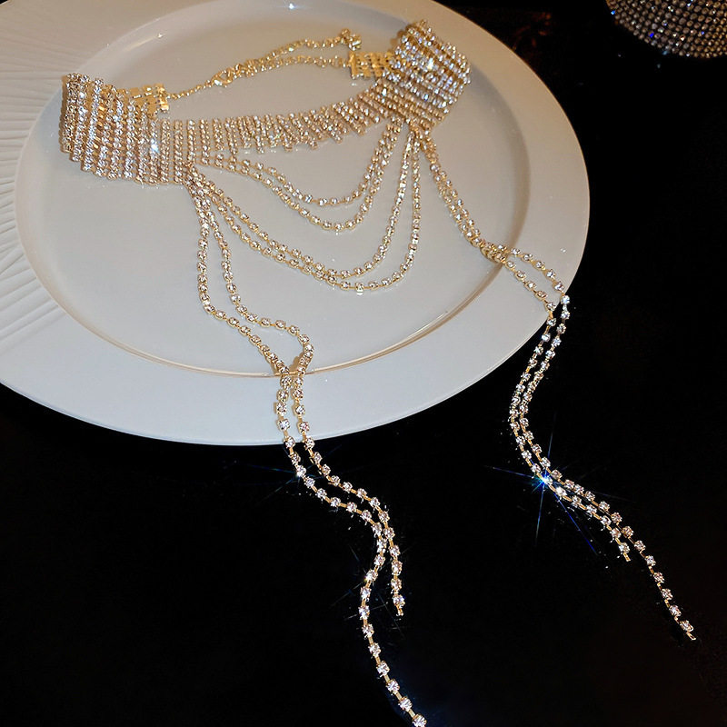 歐美誇張閃鑽流蘇項鍊小衆輕奢高級感氣質頸鏈個性冷淡風項飾