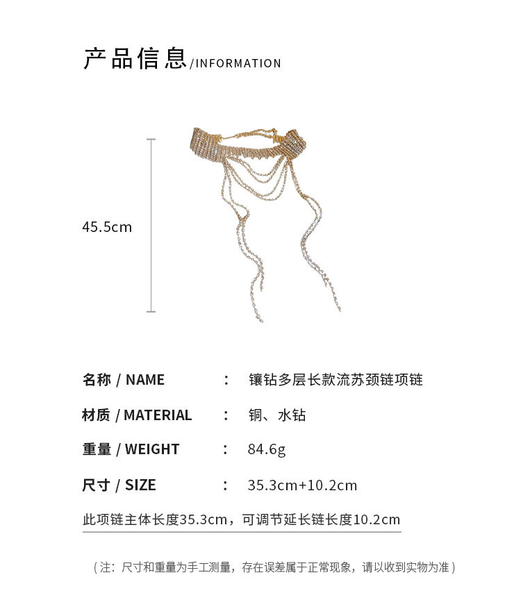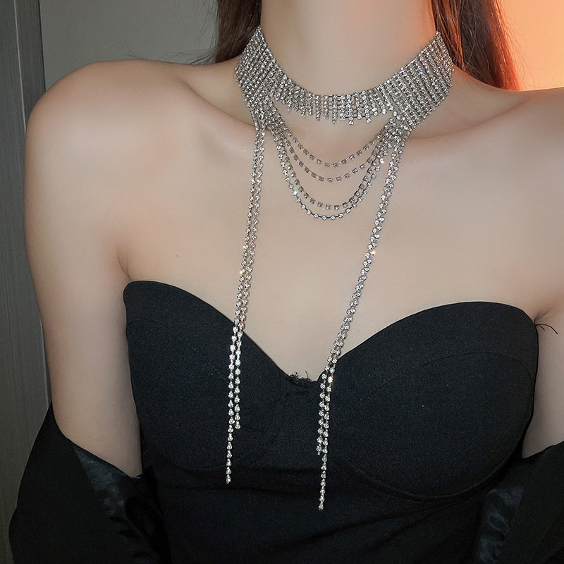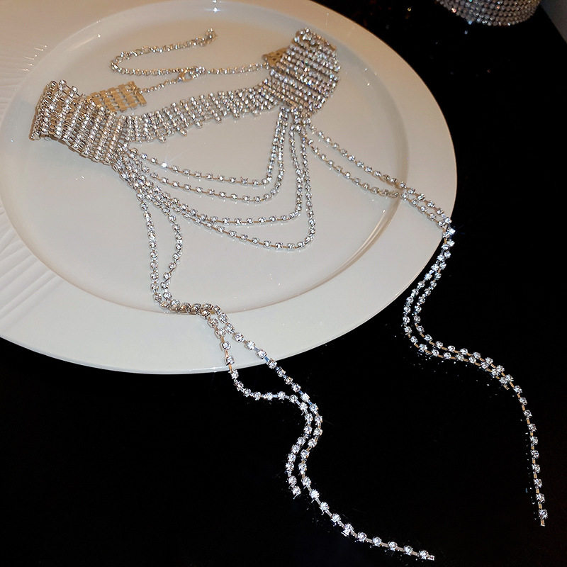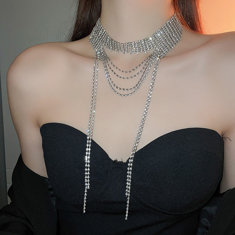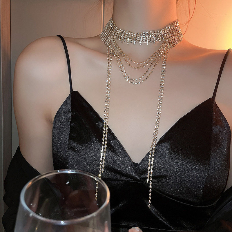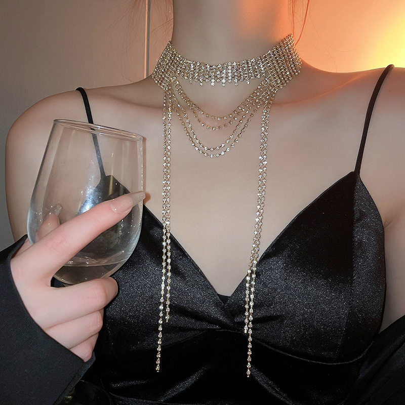 歐美誇張閃鑽流蘇項鍊小衆輕奢高級感氣質頸鏈個性冷淡風項飾