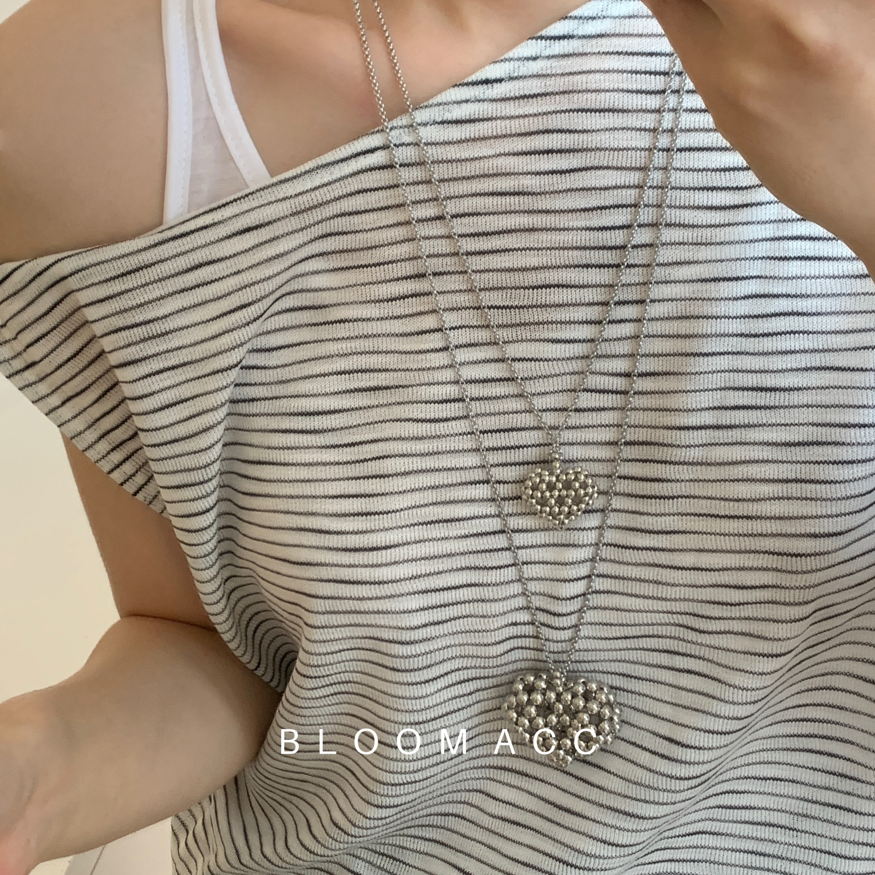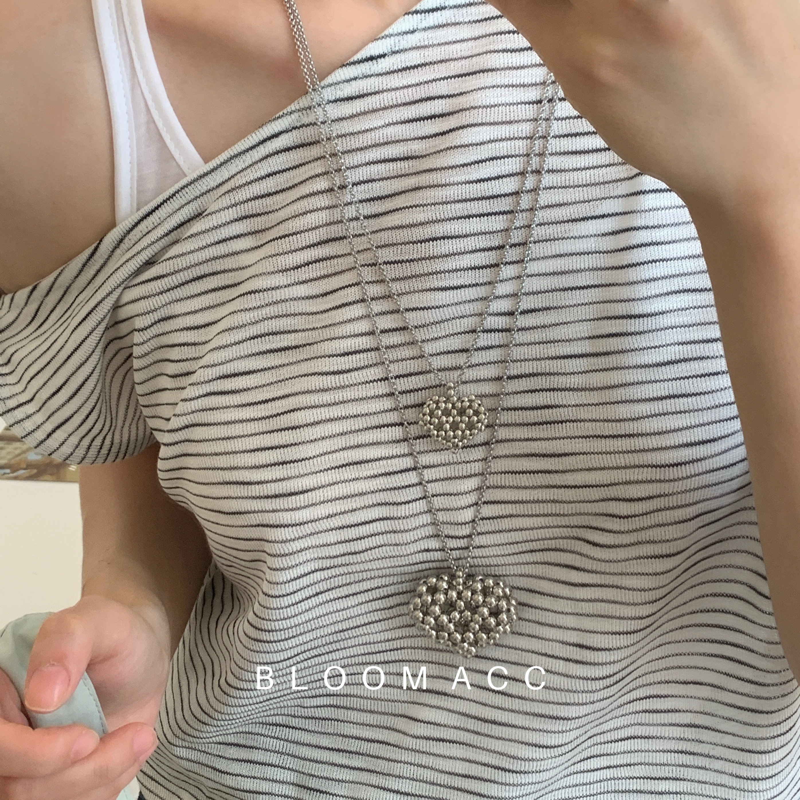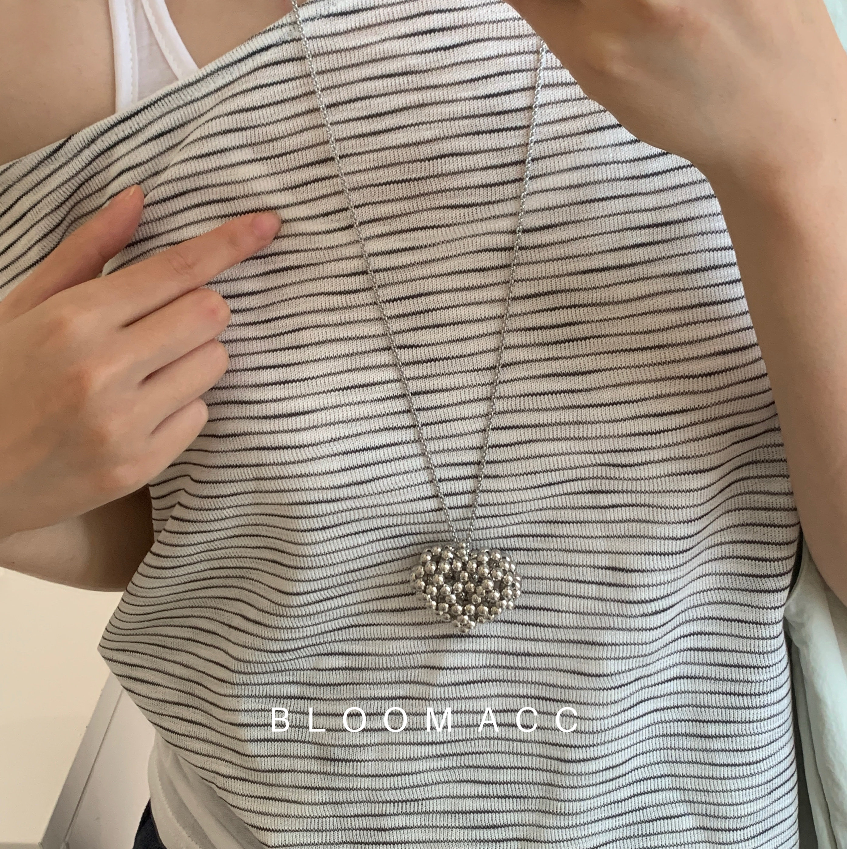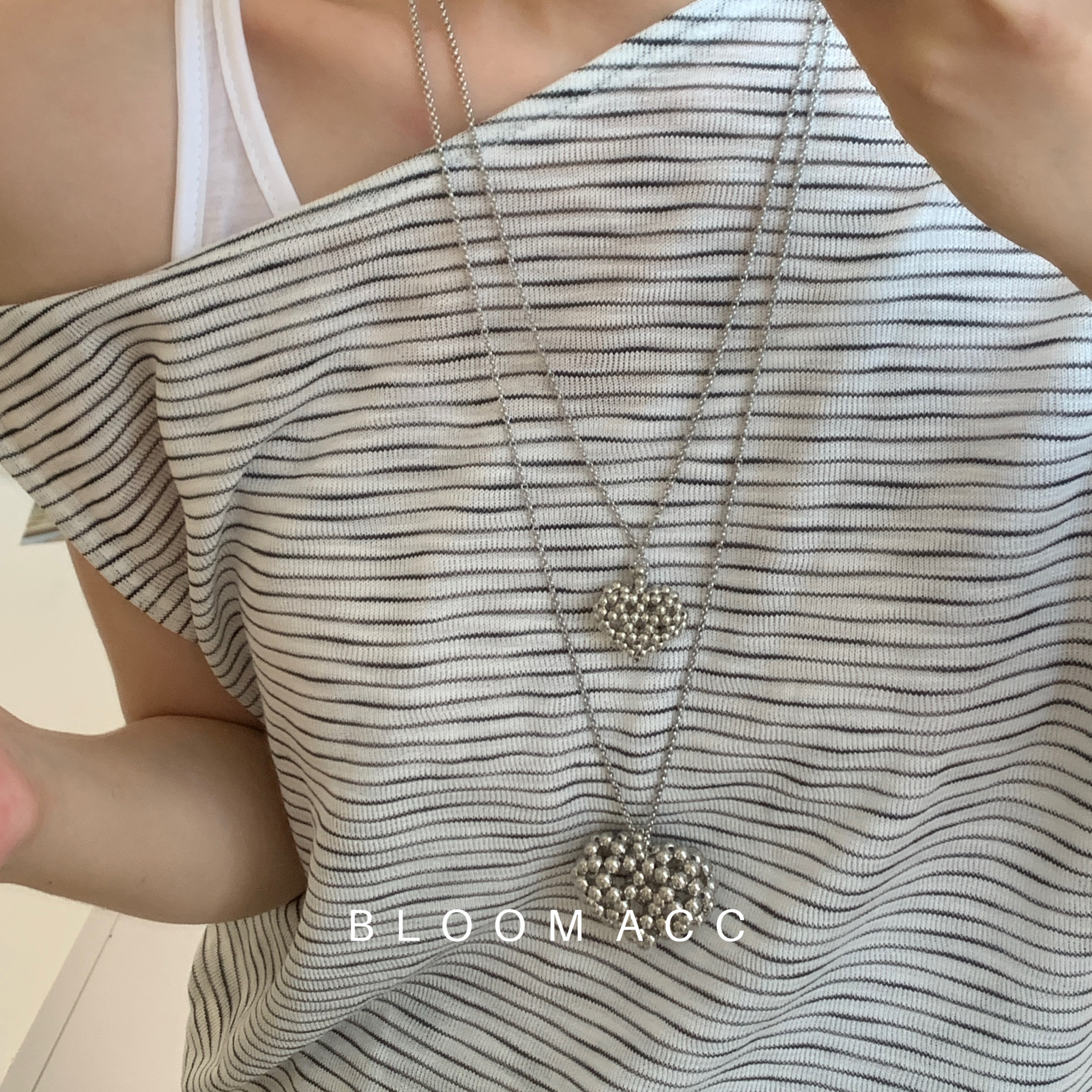韓國ins博主簡約百搭銀色串珠立體愛心吊墜毛衣鏈項鍊長款衛衣鏈