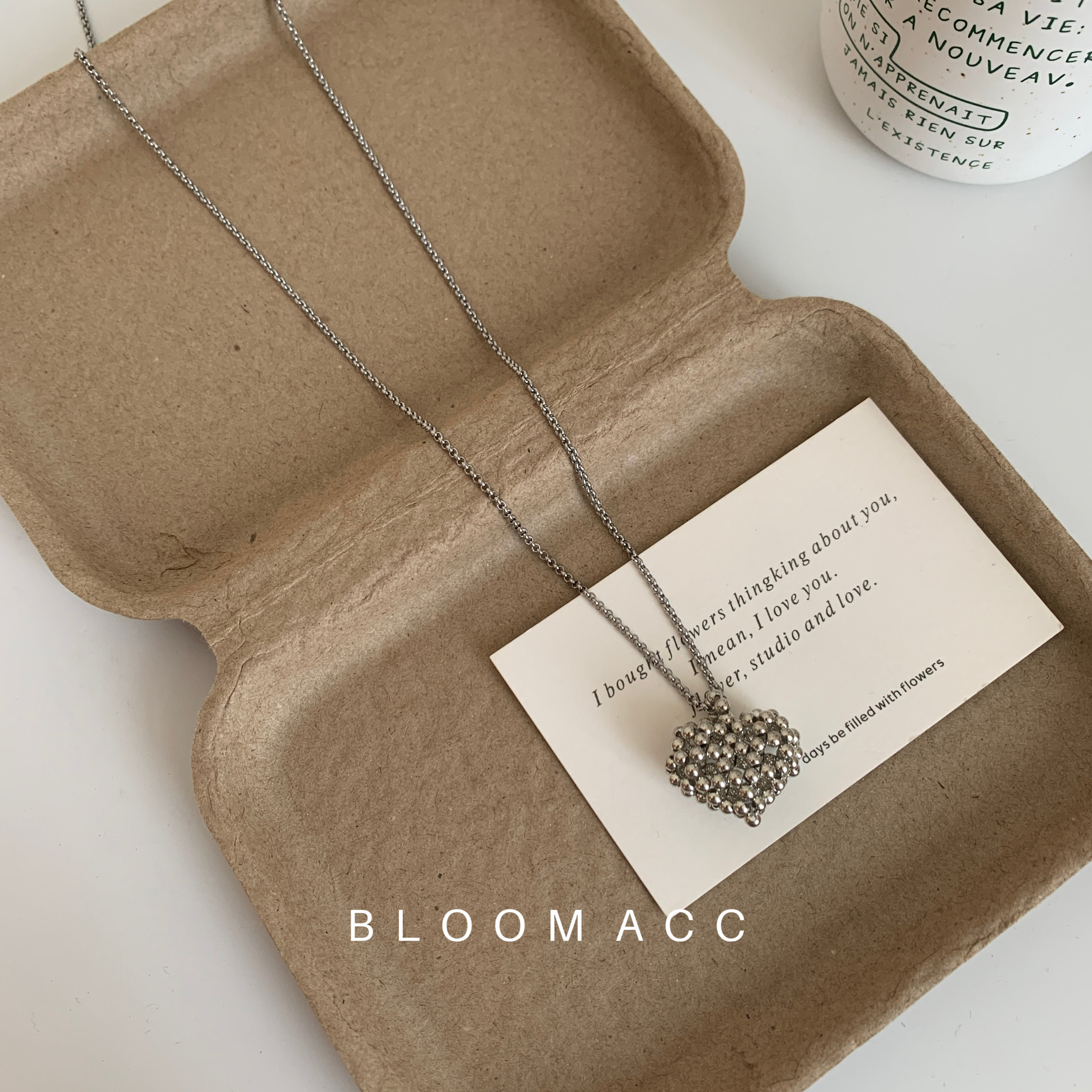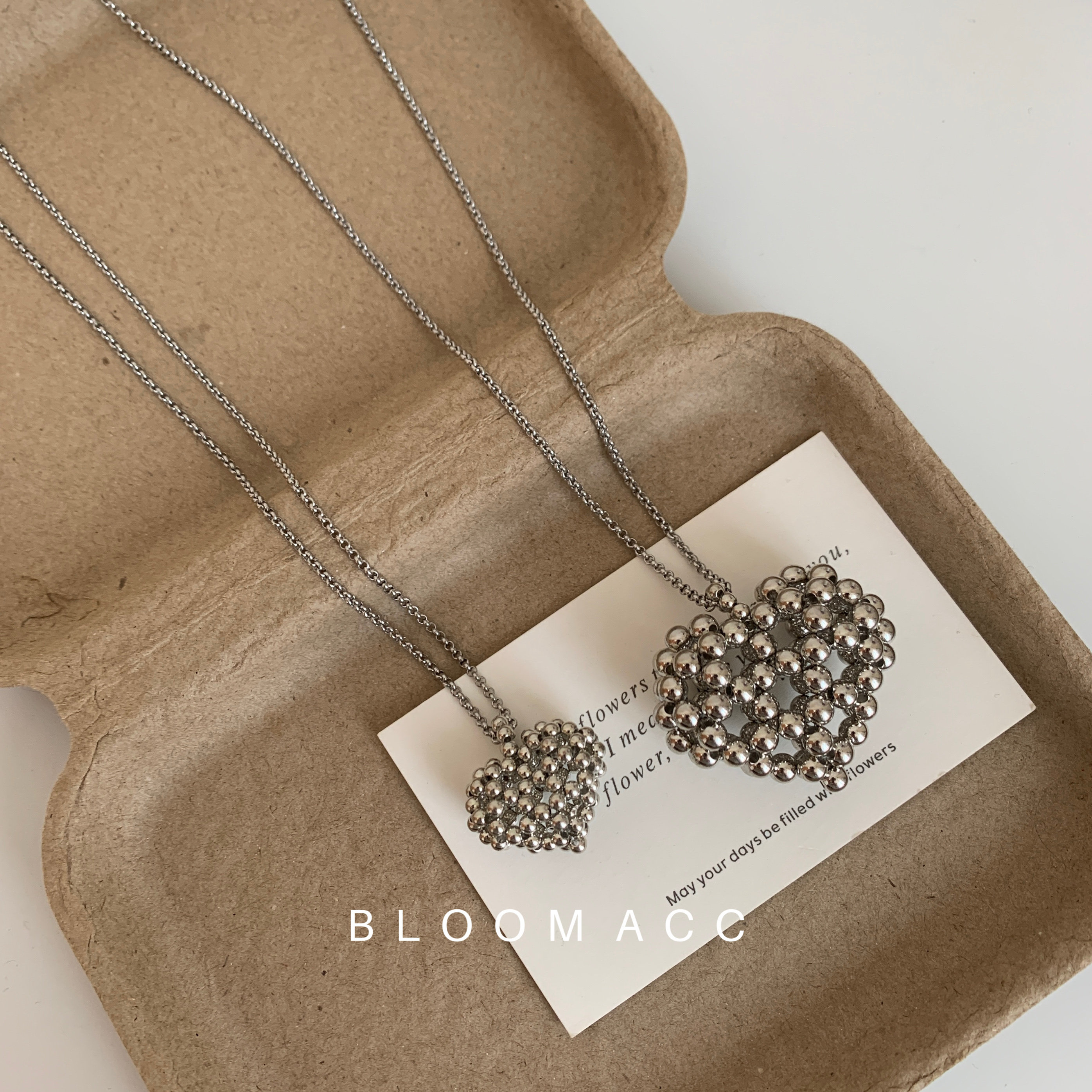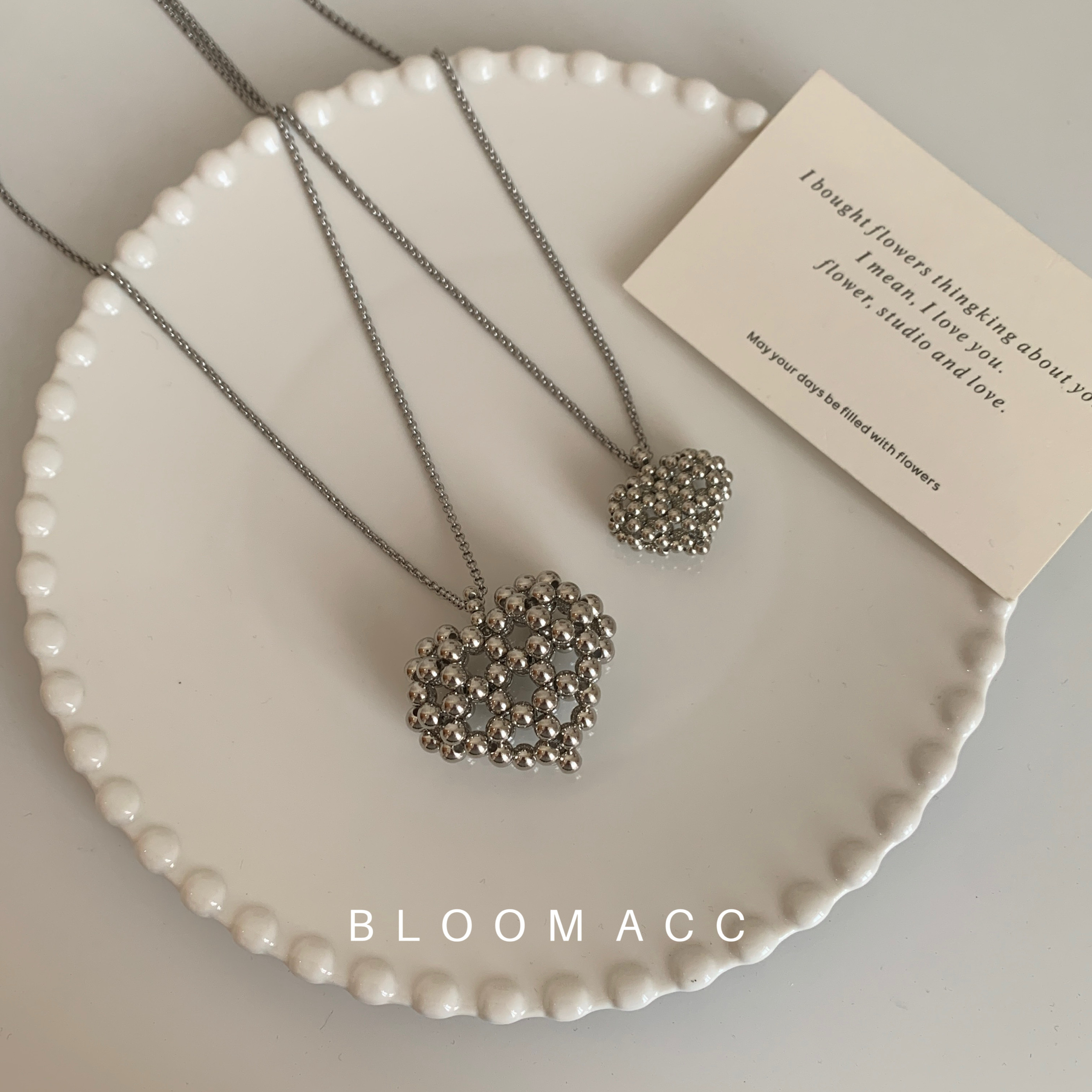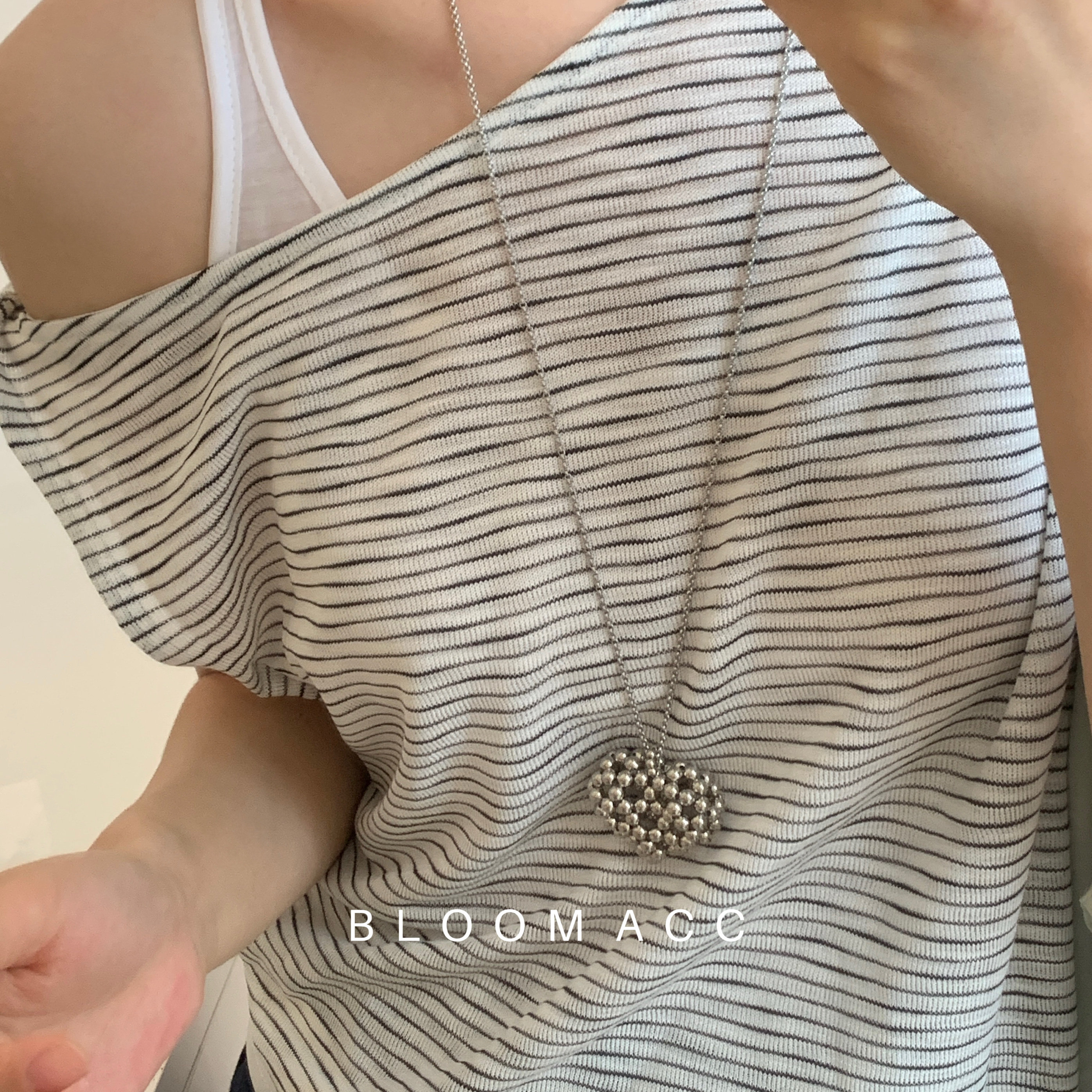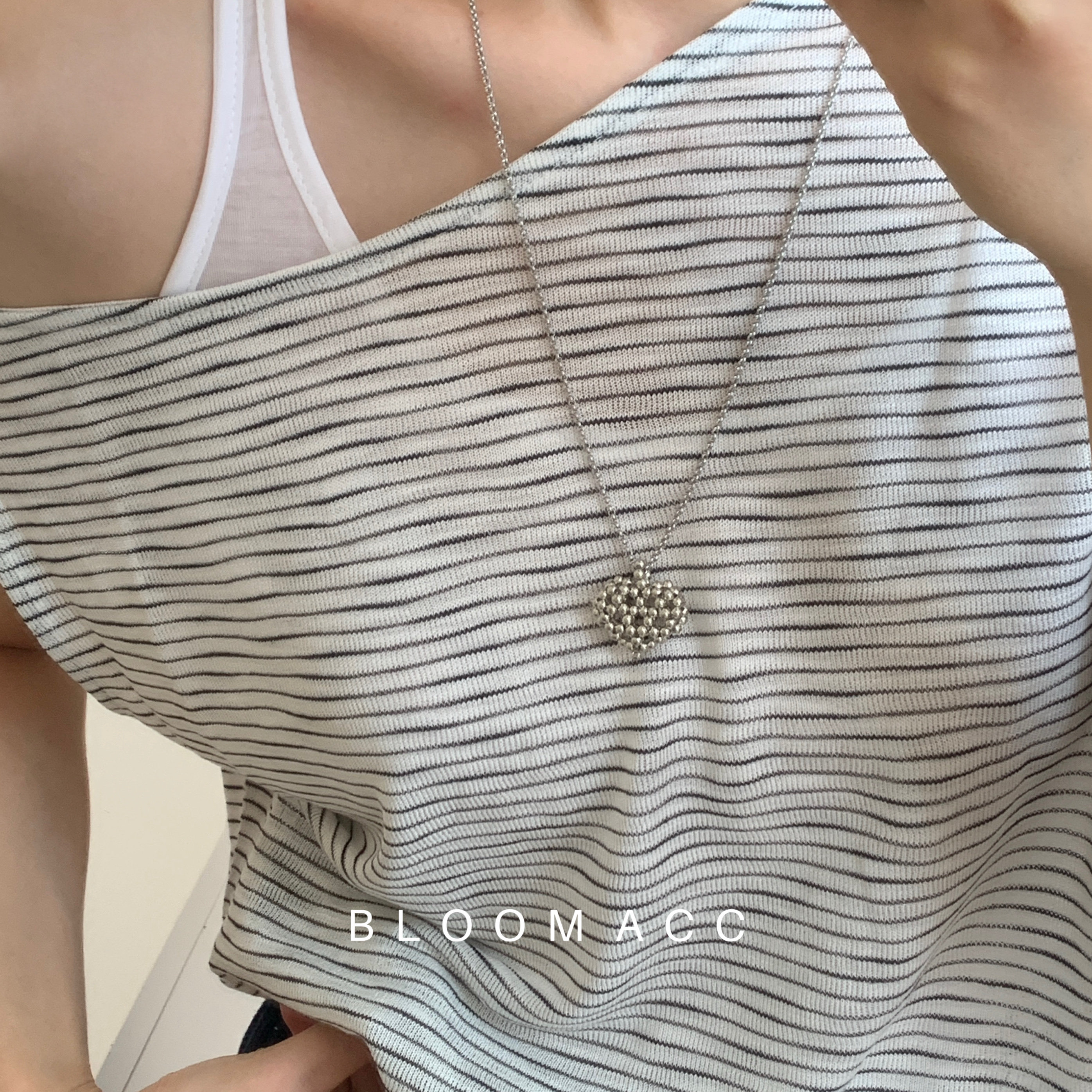 韓國ins博主簡約百搭銀色串珠立體愛心吊墜毛衣鏈項鍊長款衛衣鏈