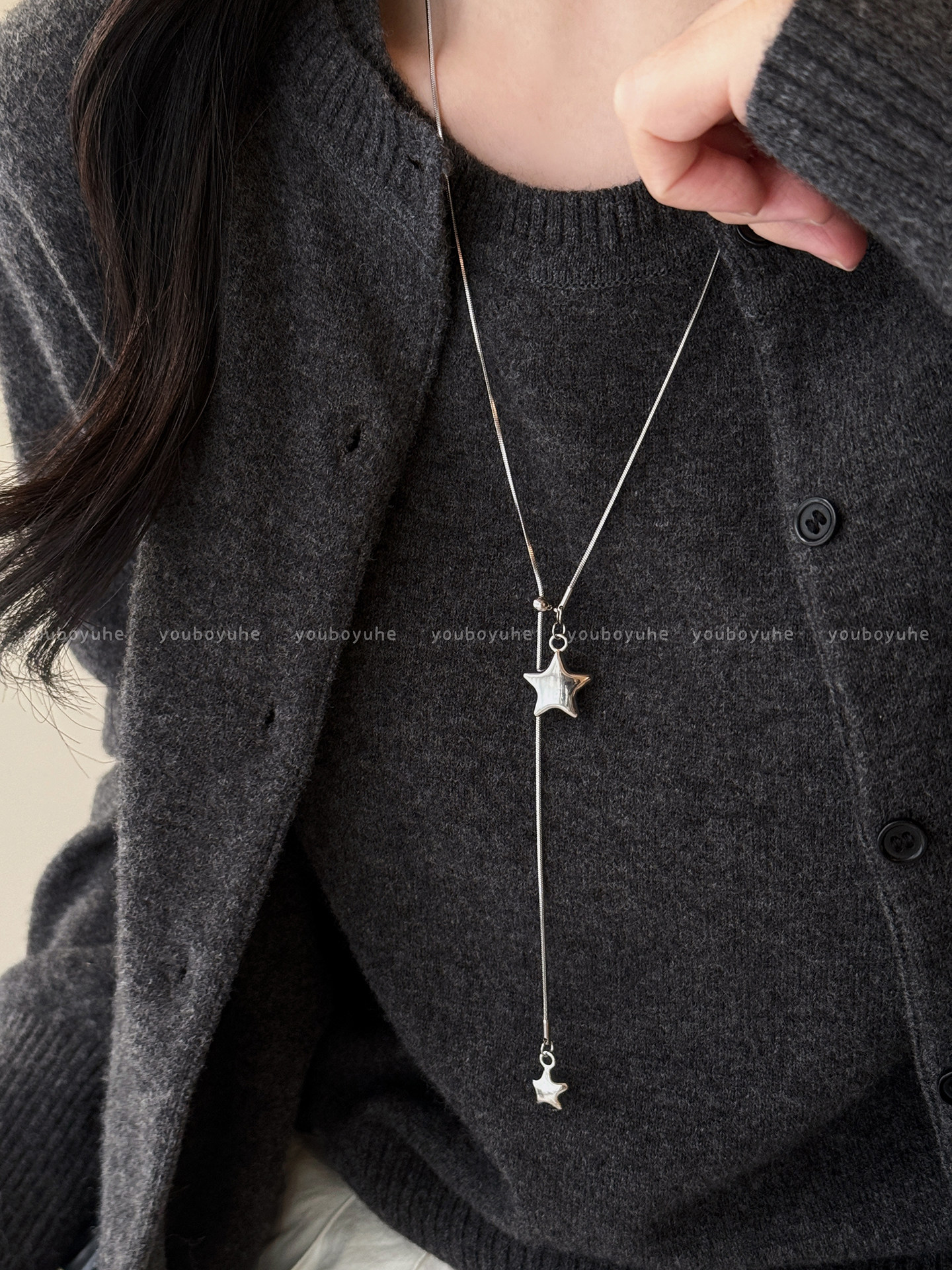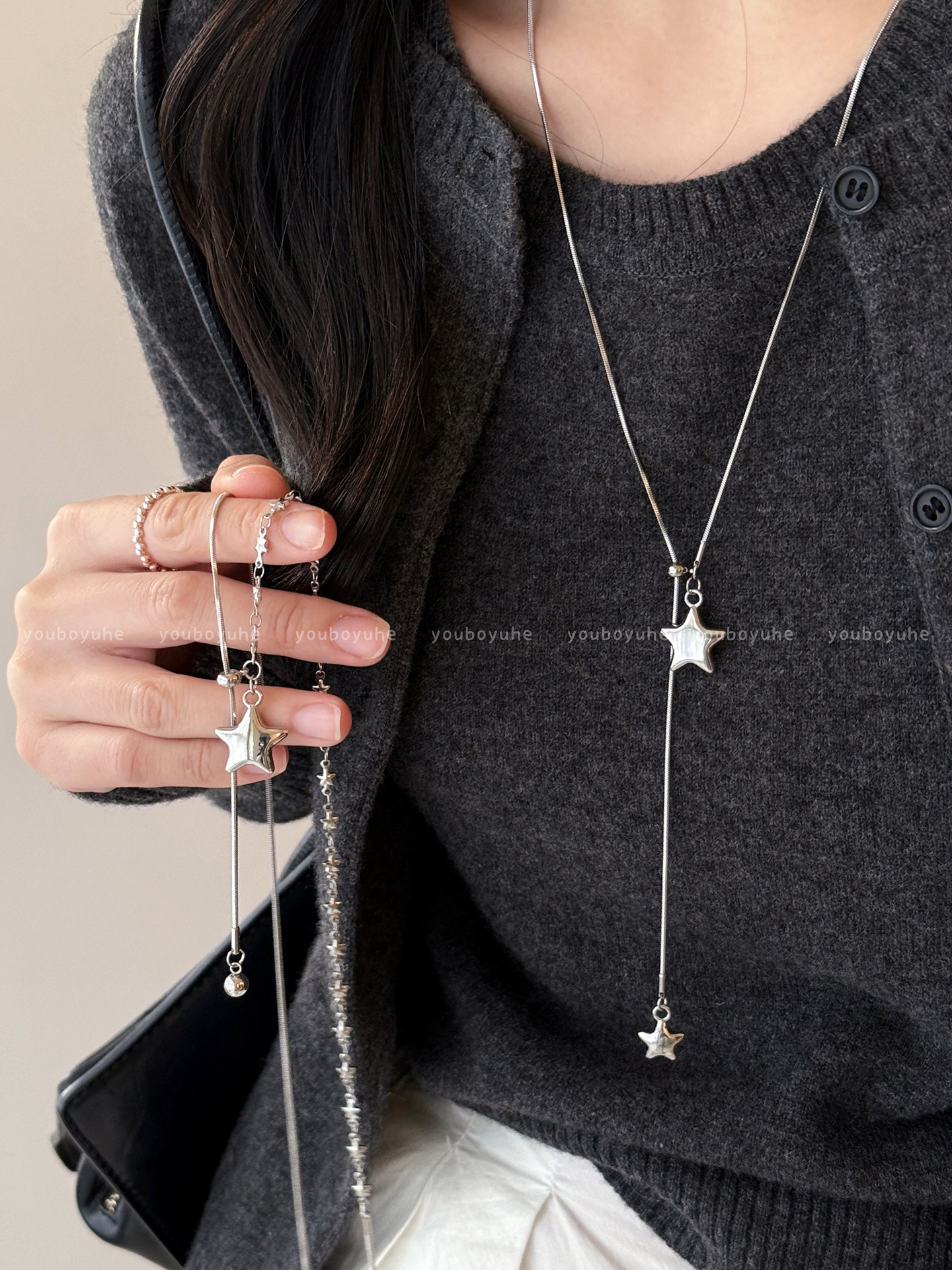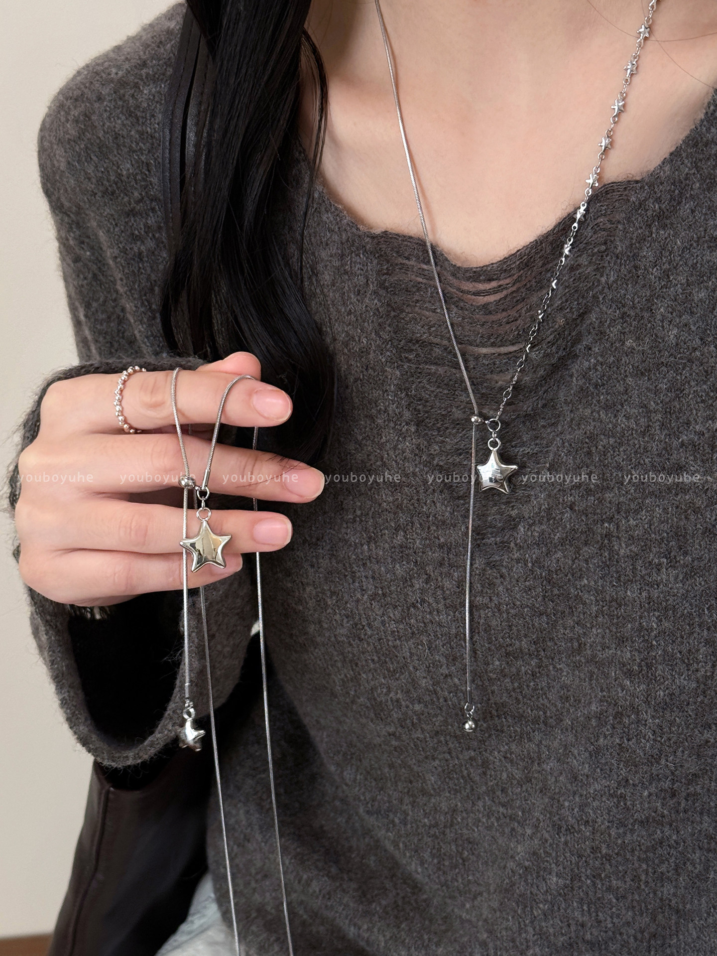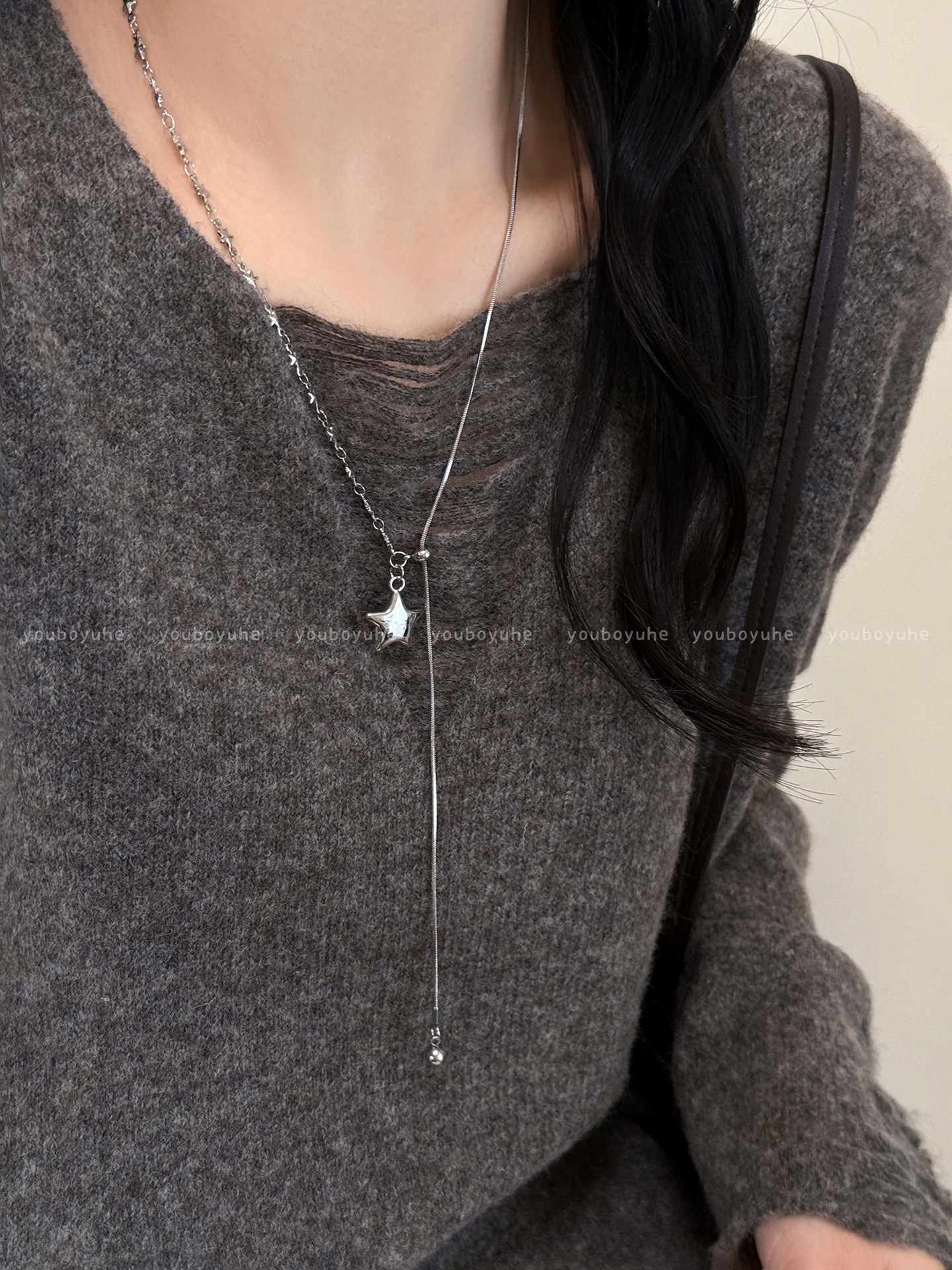 星河赴約~韓系銀色星星項鍊女小衆長款鈦鋼毛衣鏈高級感秋冬配飾