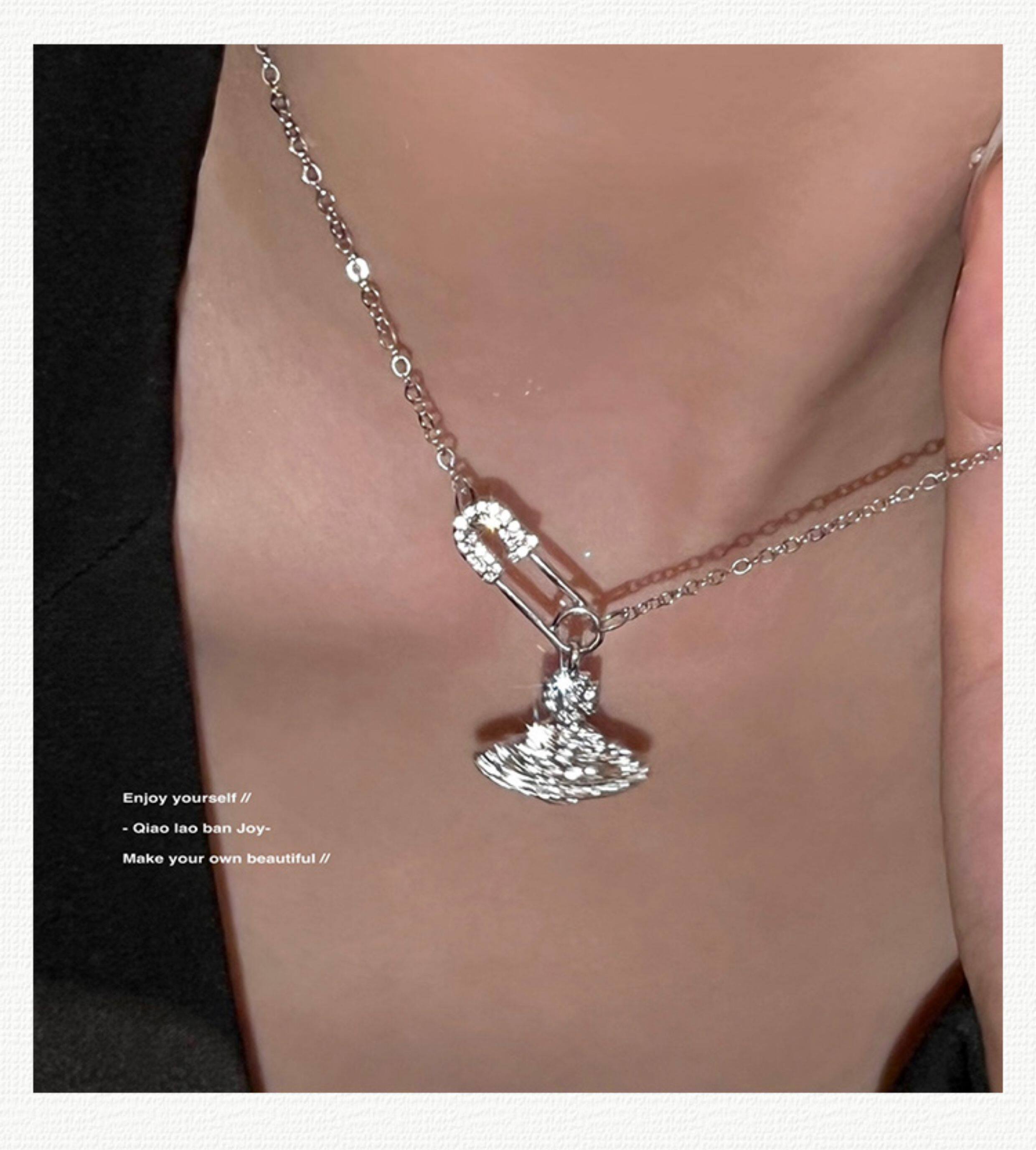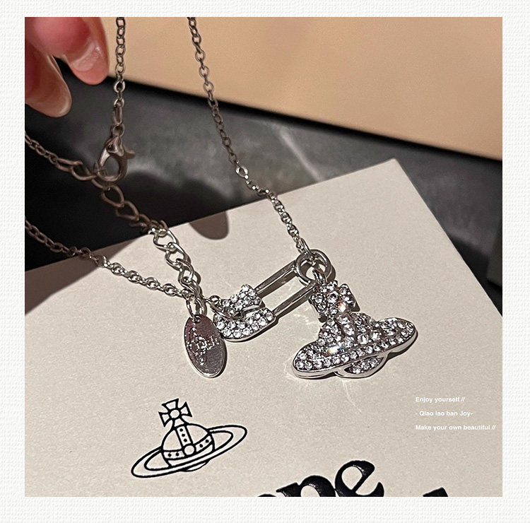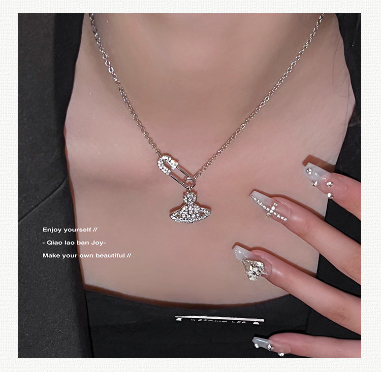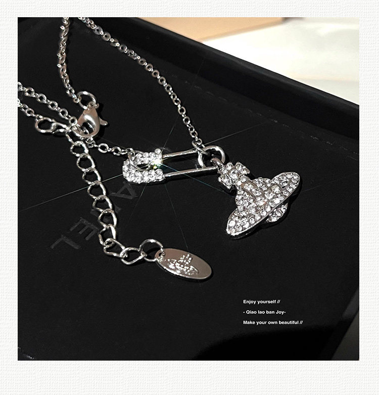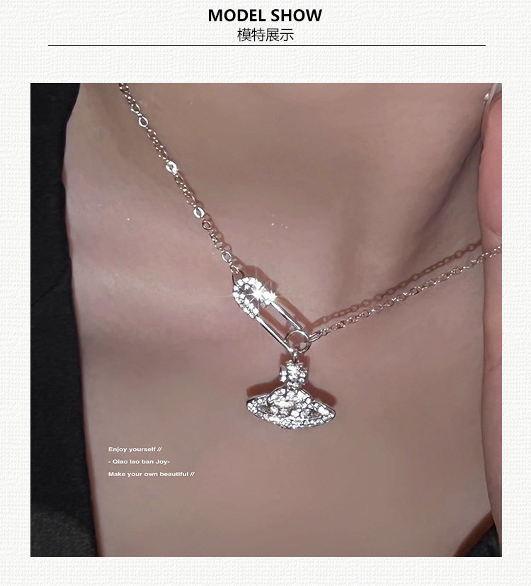 【喬老板Joy】土星別針項鍊銀色鎖骨西太後閃鑽甜酷小衆設計感潮