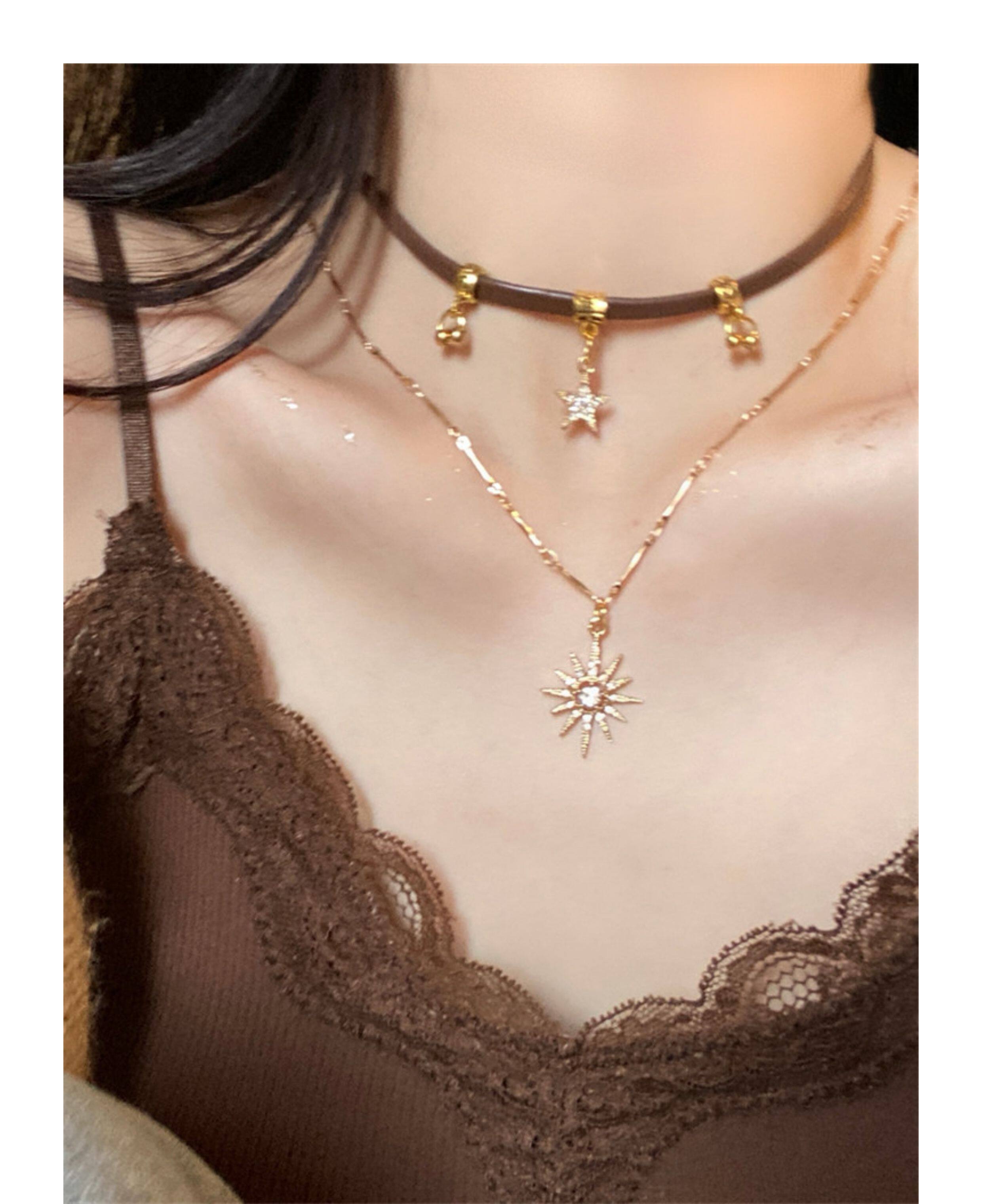 FANTAI美拉德太陽星星項鍊女復古甜酷辣妹個性小衆高級choker配飾