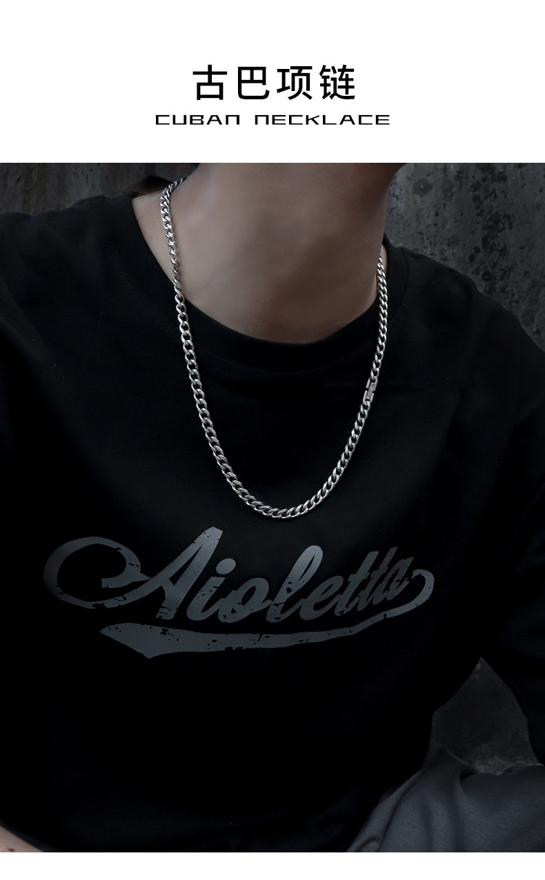 古巴鏈不掉色項鍊男潮嘻哈女男生鎖骨鍊男士潮牌百搭鈦鋼鏈子配飾